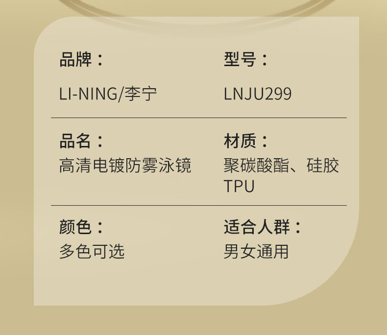 Li-ning (LI-NING) swimming goggles myopia high-definition anti-fog waterproof swimming goggles for men and women professional adult swimming goggles swimming equipment Aurora white (comfortable fit/with earplugs nose bridge) 600