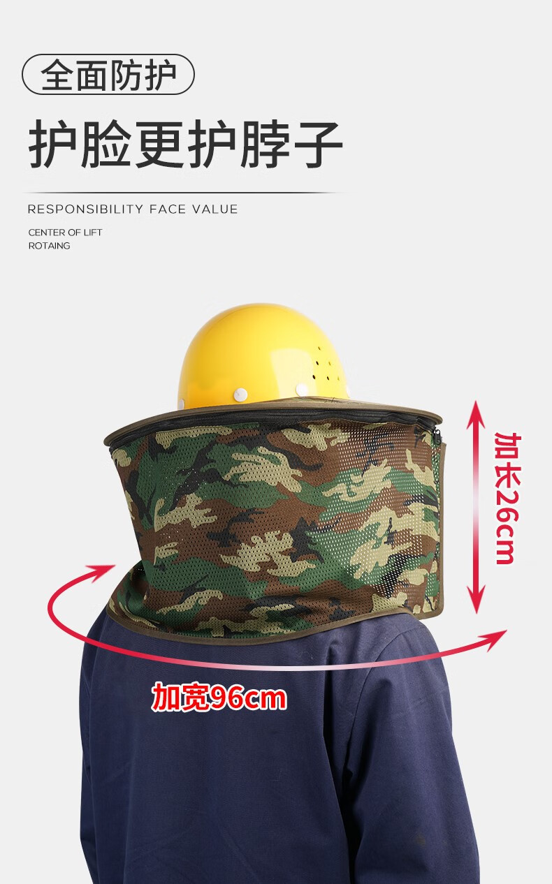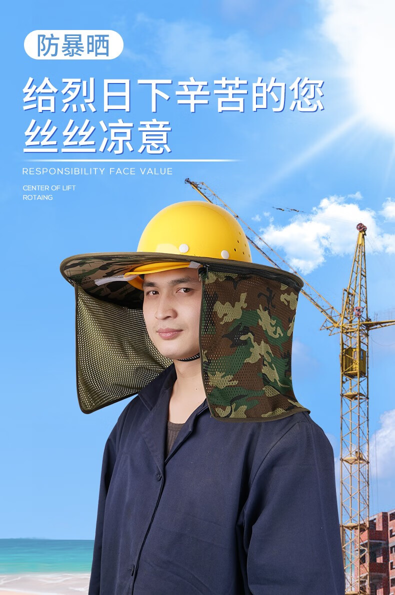 Wine style senior widened and enlarged safety helmet sun visor brim construction site sun hat construction sun hat sun protection hat men's summer widened camouflage mesh curtain without zipper