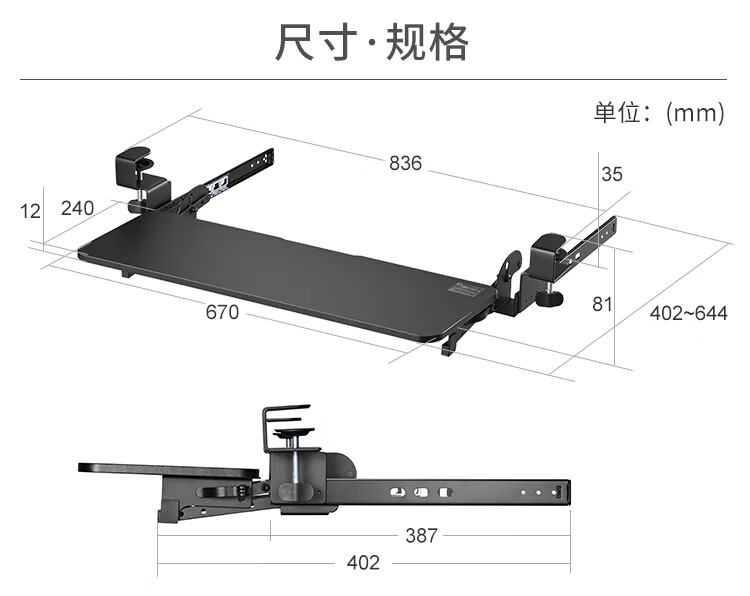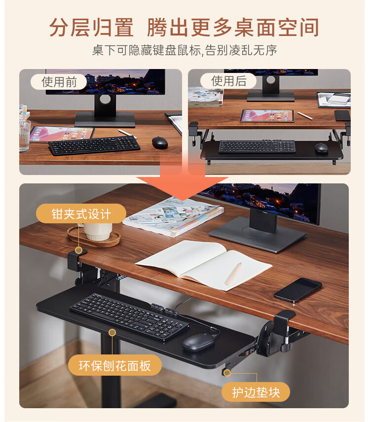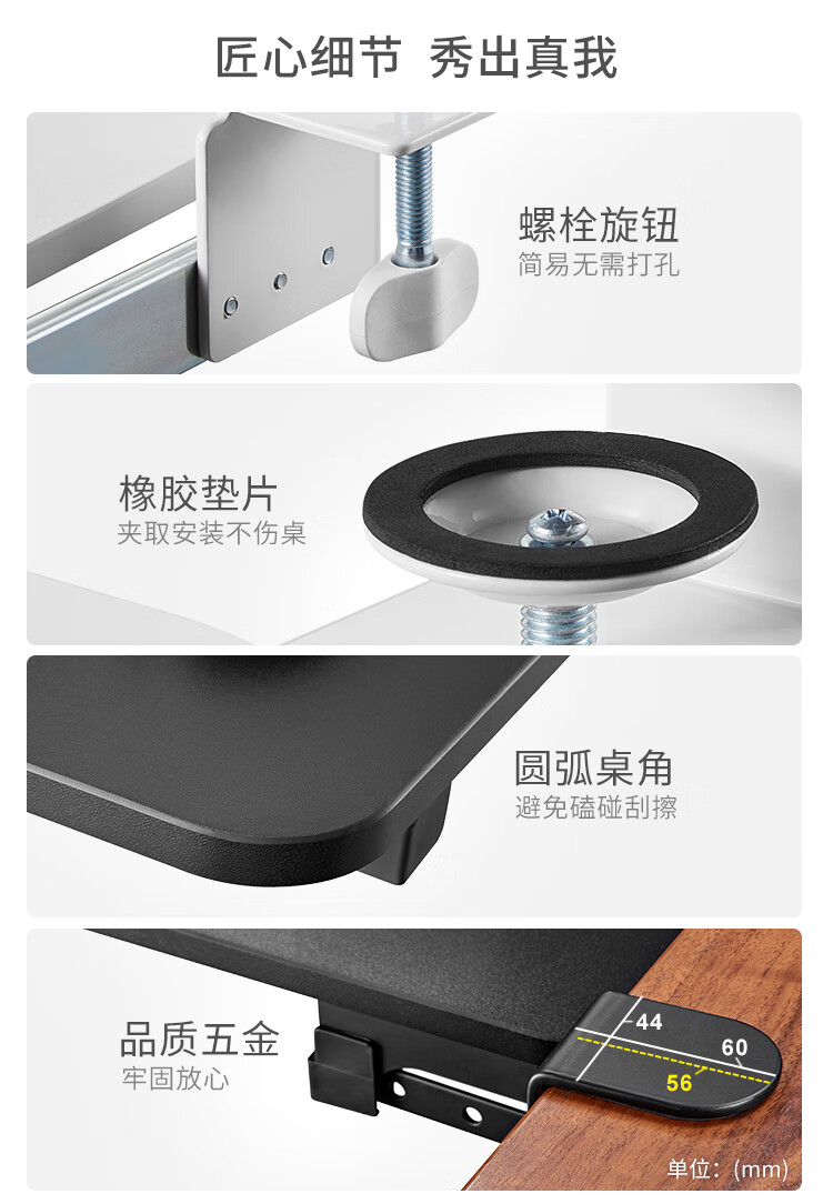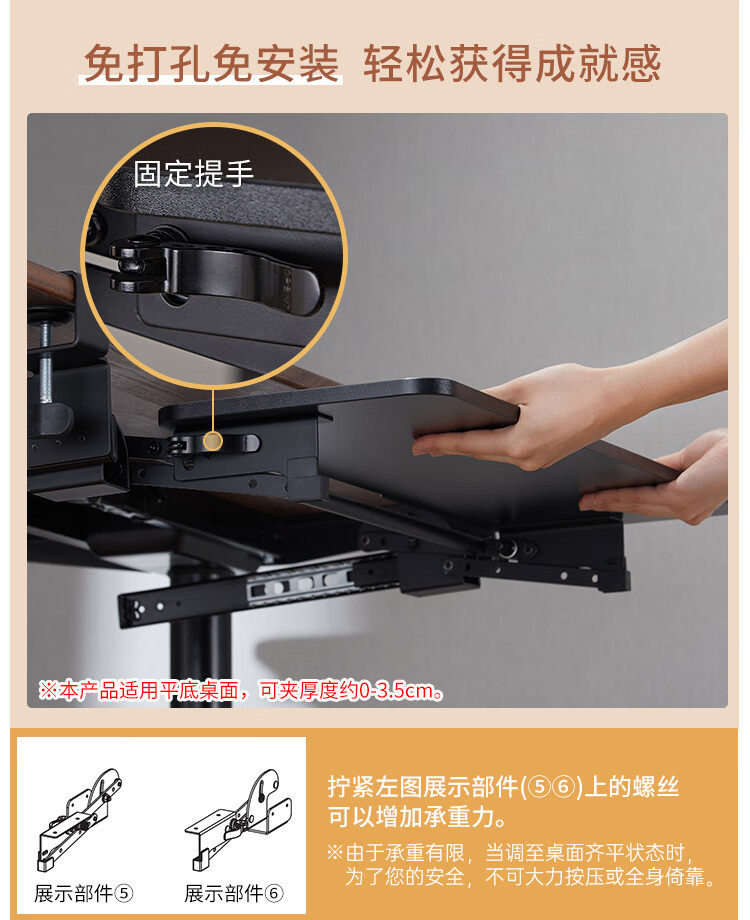 Shanye Keyboard Holder Keyboard Rack Drawer Computer Desk Extension Board Under Desk Keyboard Holder Hand Holder Extension Board No Punching White - No Installation - Desk Board Thickness 35MM