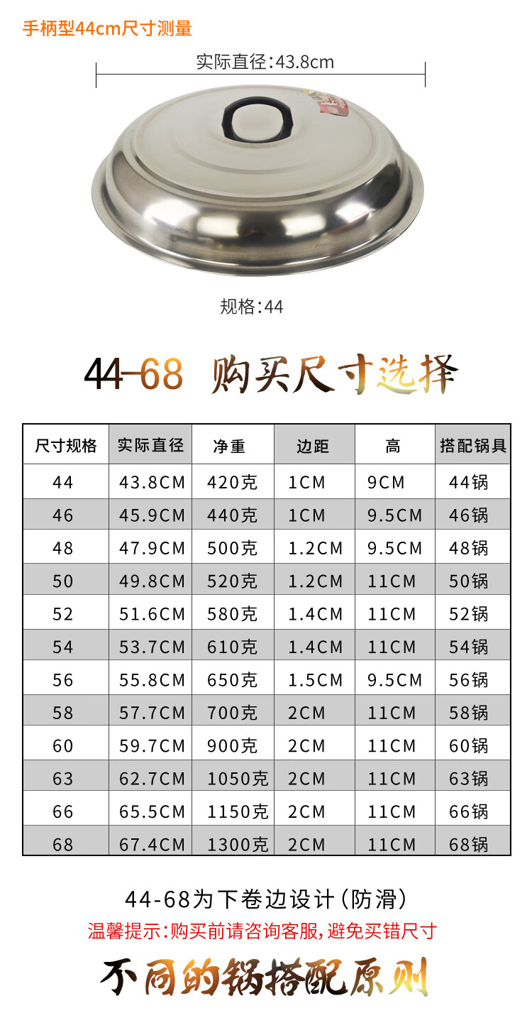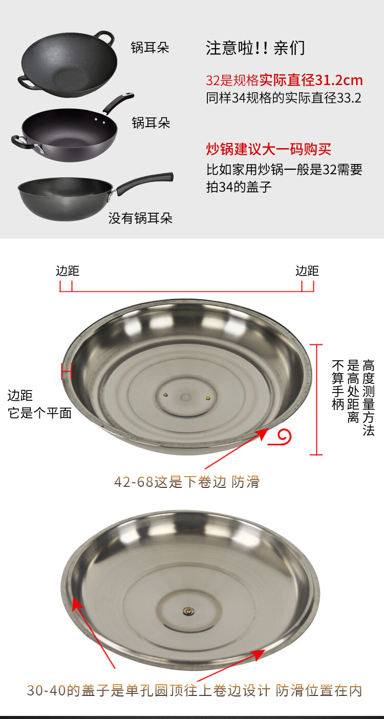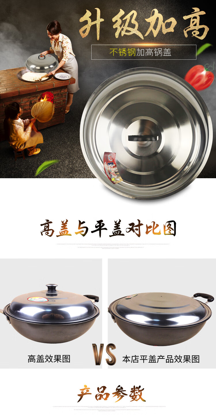 ULKNN wok lid steamer large iron pot lid stainless steel heightened pot lid old-fashioned high arch tripod lid round 38 40 42 diameter 48cm