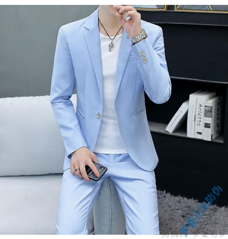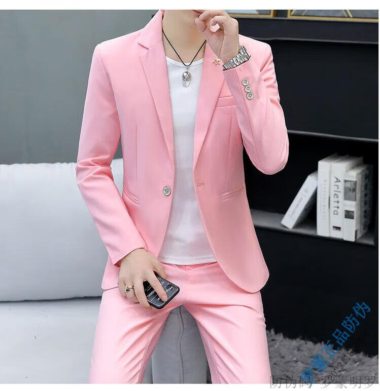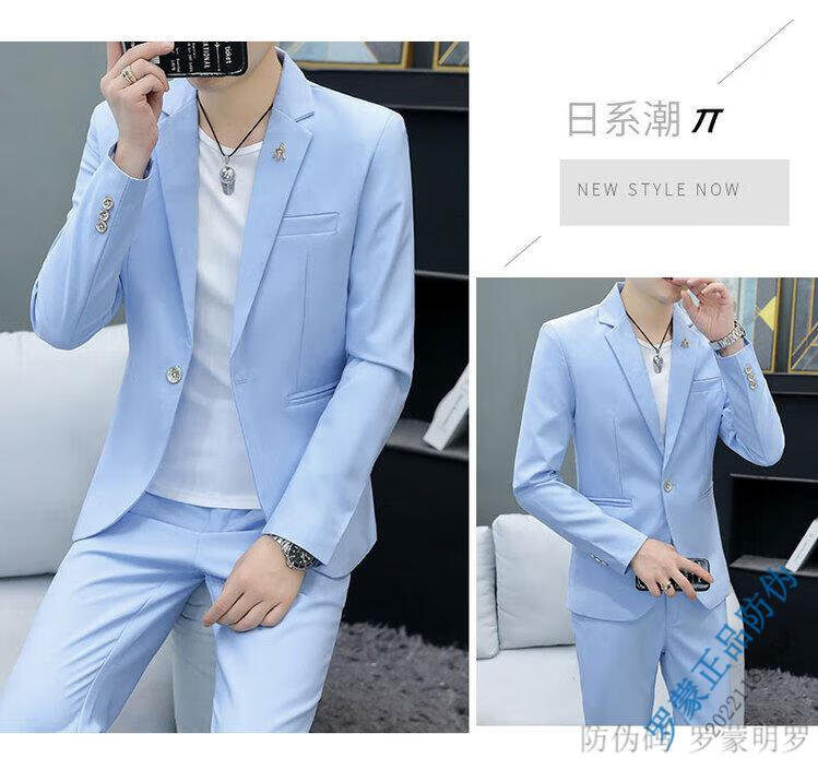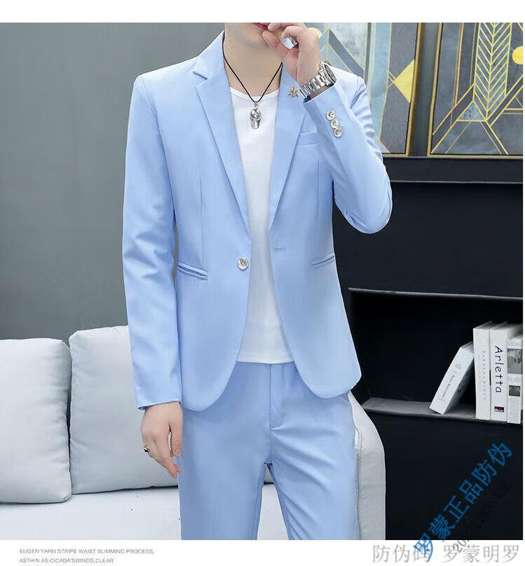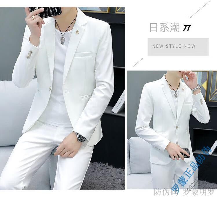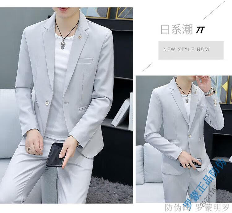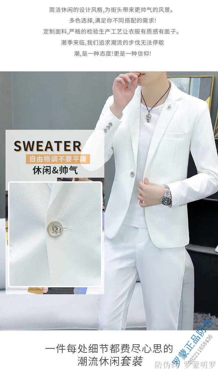 ROMON Korean style casual spring and autumn suit men's slim business formal suit groom handsome British casual small suit men black (three-piece suit - top + pants + T-shirt) L 105-120Jin Jin equals 0.5 kg