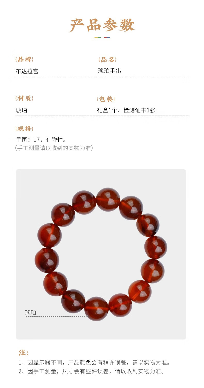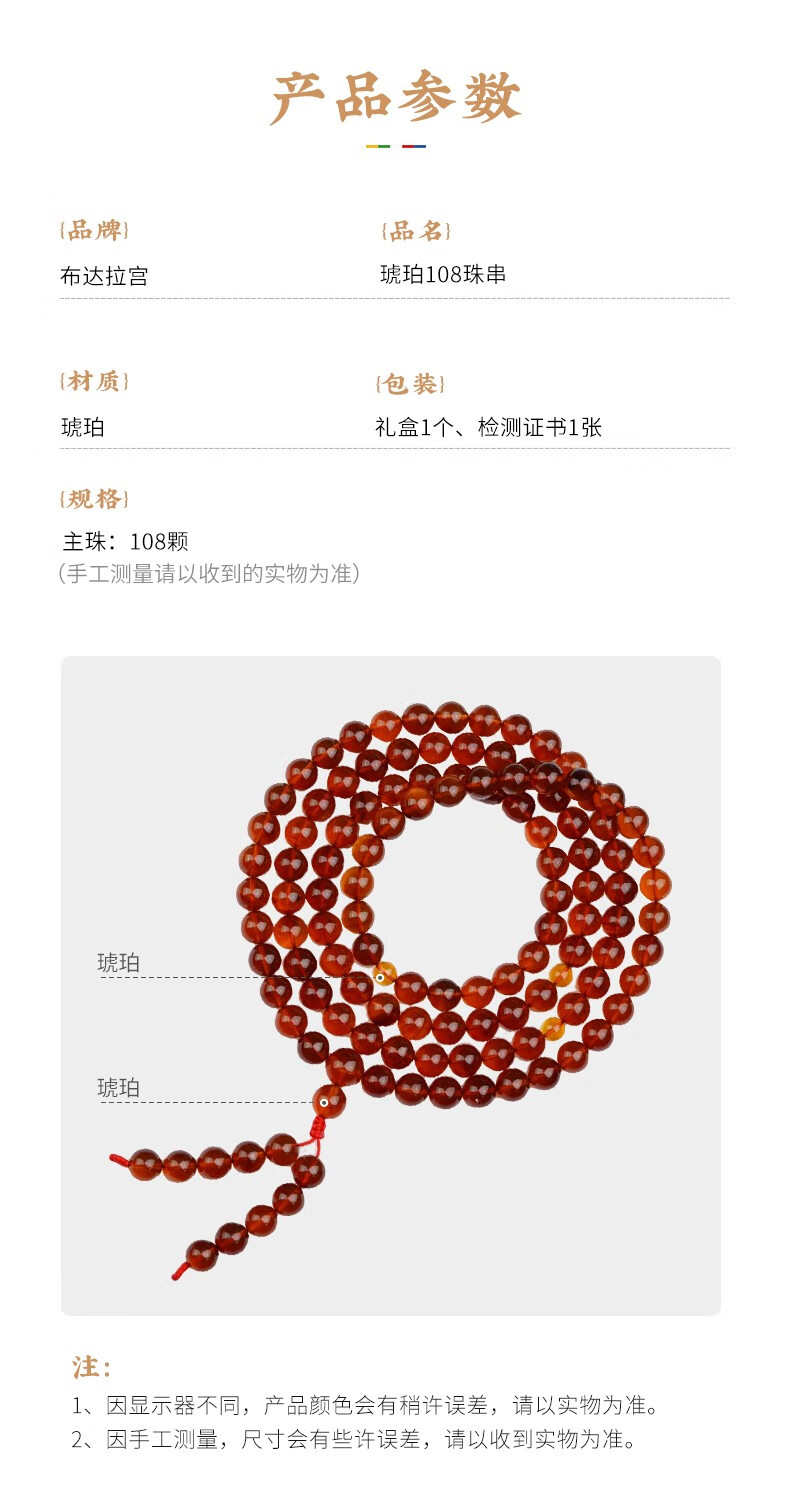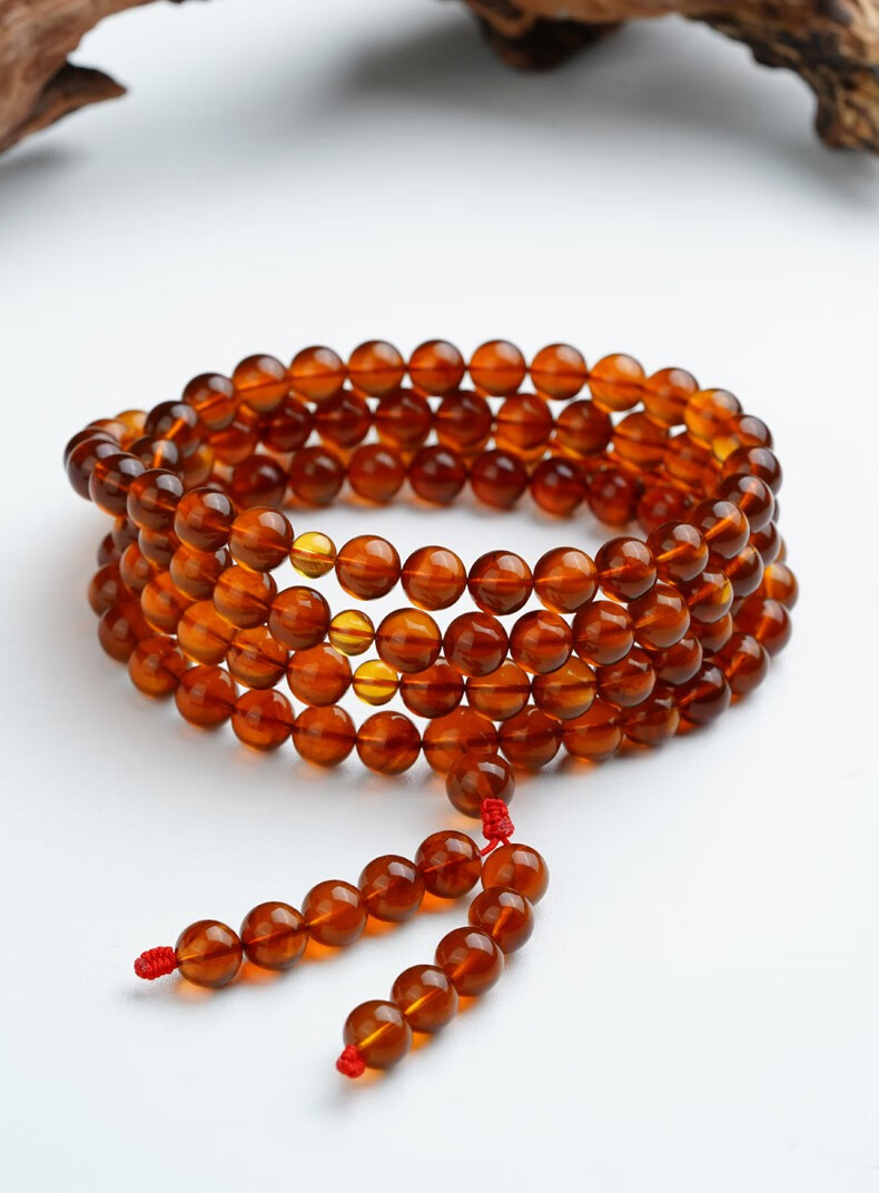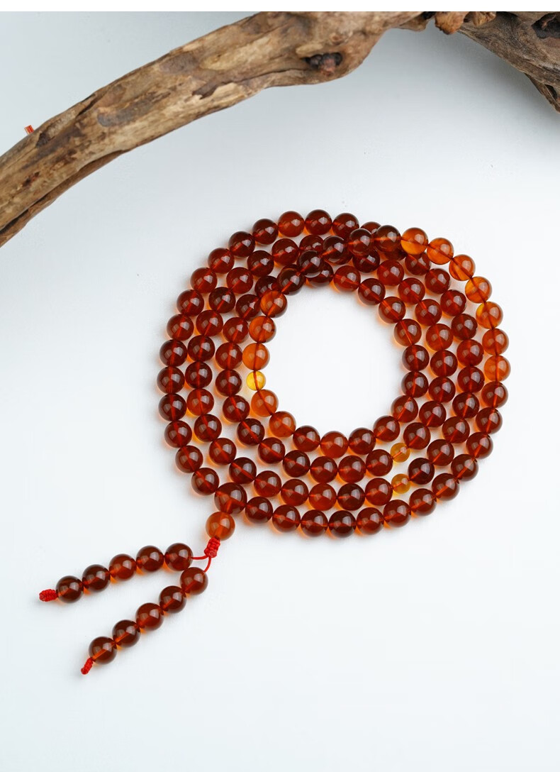 Potala Palace Amber Bracelet for Men and Women 108 Blood Amber Beeswax Beads Plate Play Bead Bracelet Birthday Gift for Boyfriend Amber 8mm+108 Beads