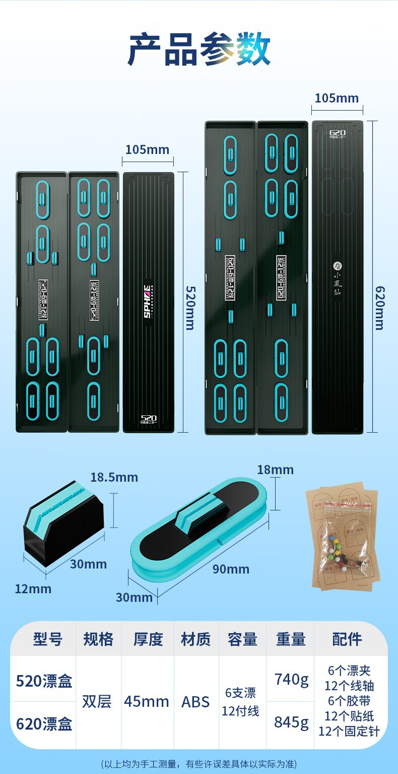 Xiaofengxian multifunctional two-in-one intelligent adjustment-free bleaching box anti-fall ABS fast matching large capacity lightweight drifting magnetic suction ABS multifunctional drifting box 520MM can store 6 bleaching lines and 12 lines
