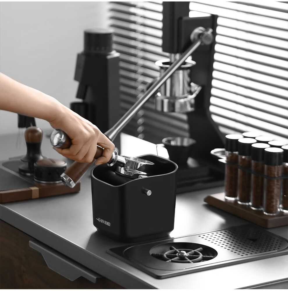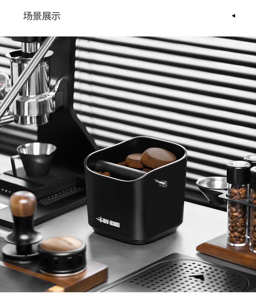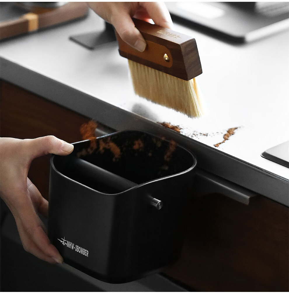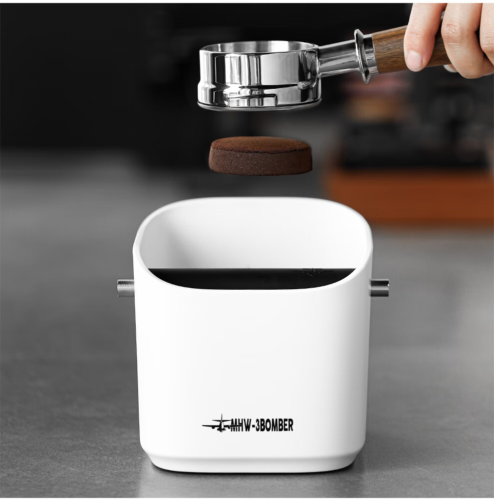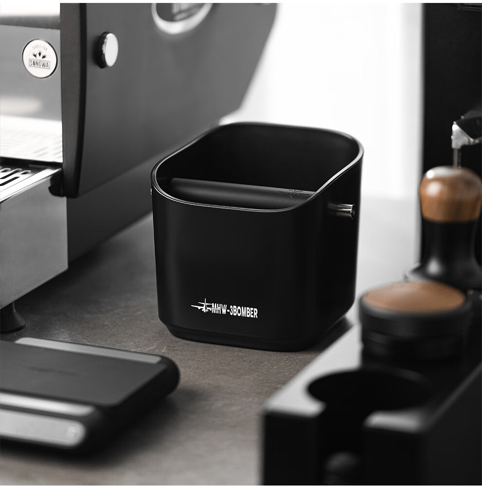 MHW-3BOMBER bomber coffee grounds bucket, home bar desktop trash can, espresso machine waste powder residue knocking bucket residue box, anti-powder residue splashing small square residue bucket-dazzling black