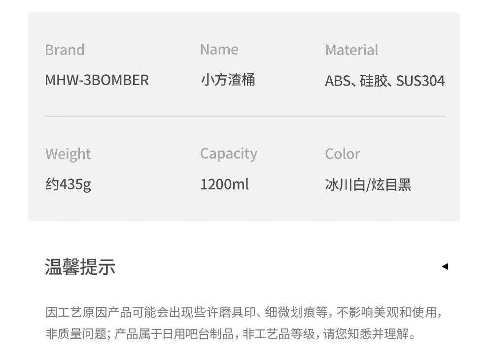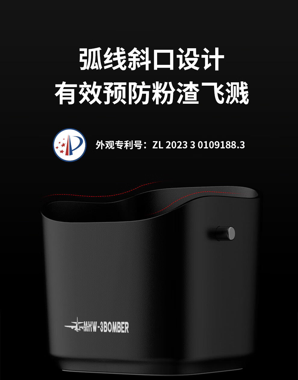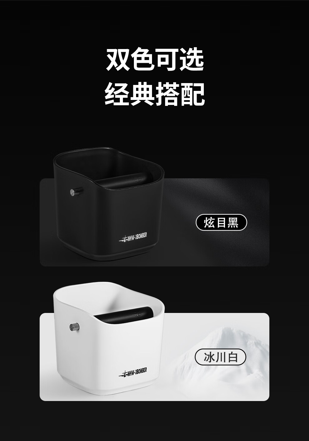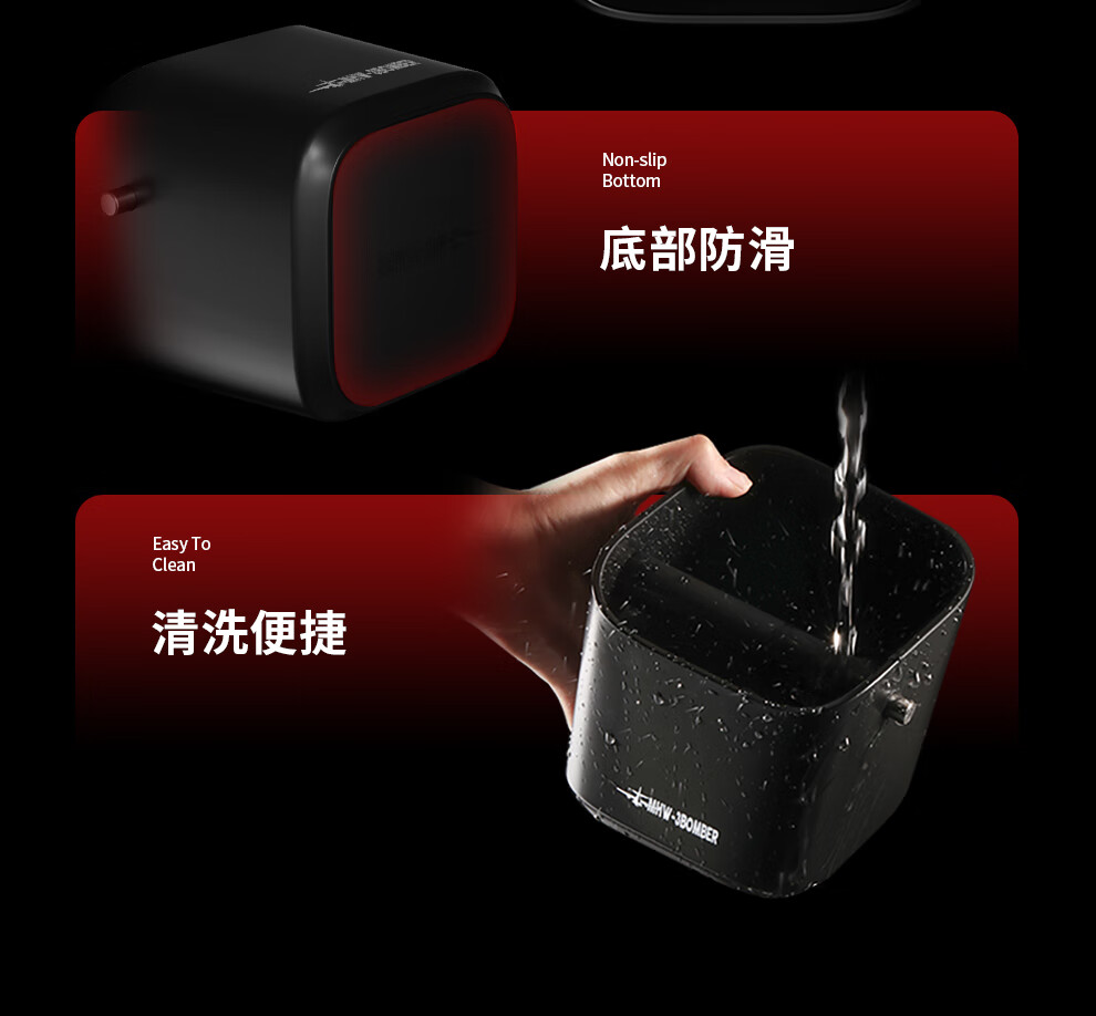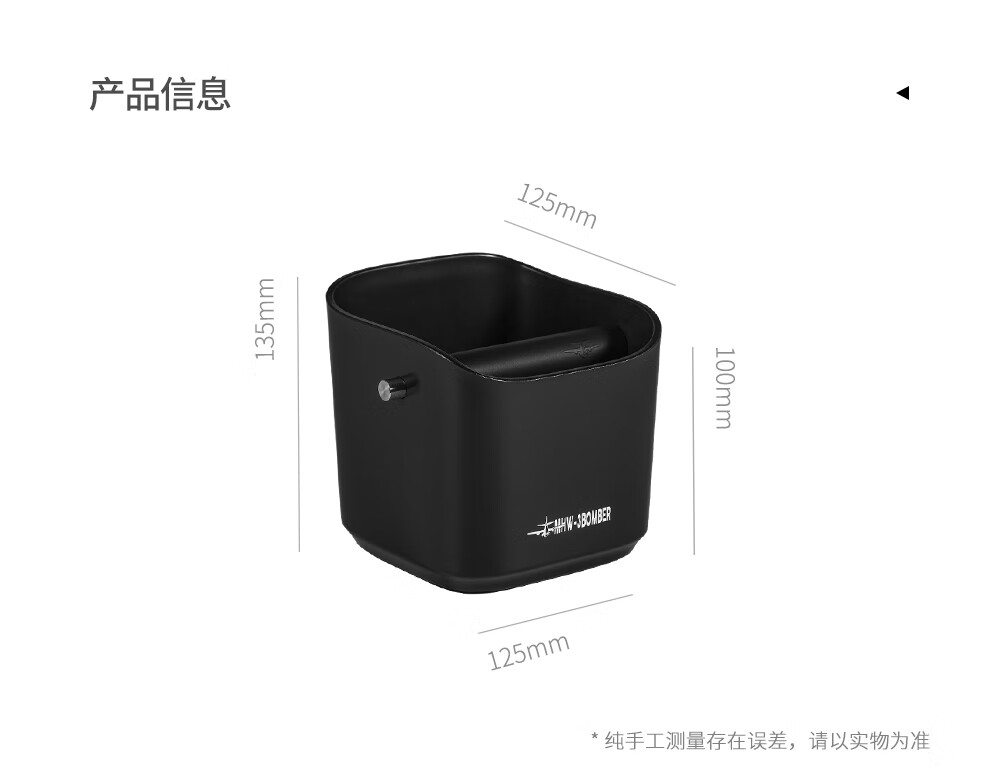 MHW-3BOMBER bomber coffee grounds bucket, home bar desktop trash can, espresso machine waste powder residue knocking bucket residue box, anti-powder residue splashing small square residue bucket-dazzling black