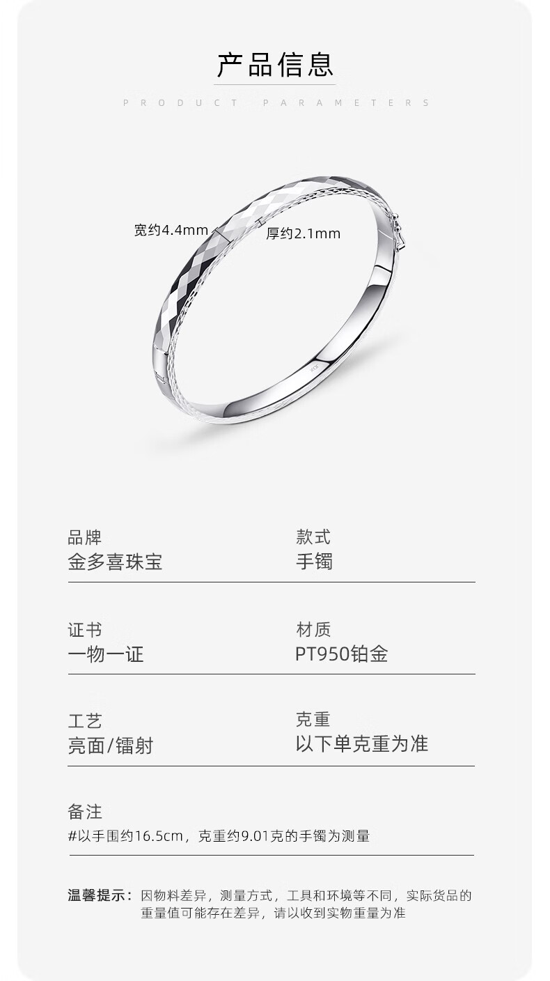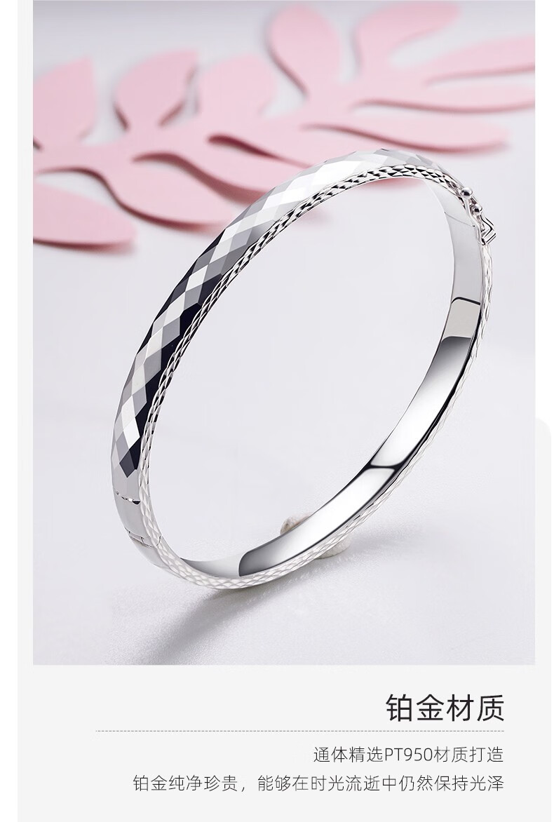 Jin Duoxi (COLDDOX) platinum bracelet for women pt950 platinum bracelet semi-solid gold heart oval open concubine bracelet plain ring bracelet about 13.58 grams inner diameter 55mm width about 4.0mm