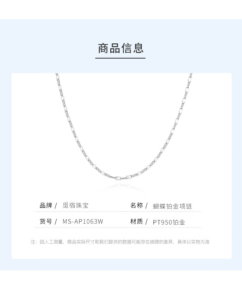 Misu platinum baby's breath necklace for women pt950 platinum plain chain fashionable clavicle chain with pendant birthday gift weight 3.0-3.1g length 41 cm long 1.6 mm thick