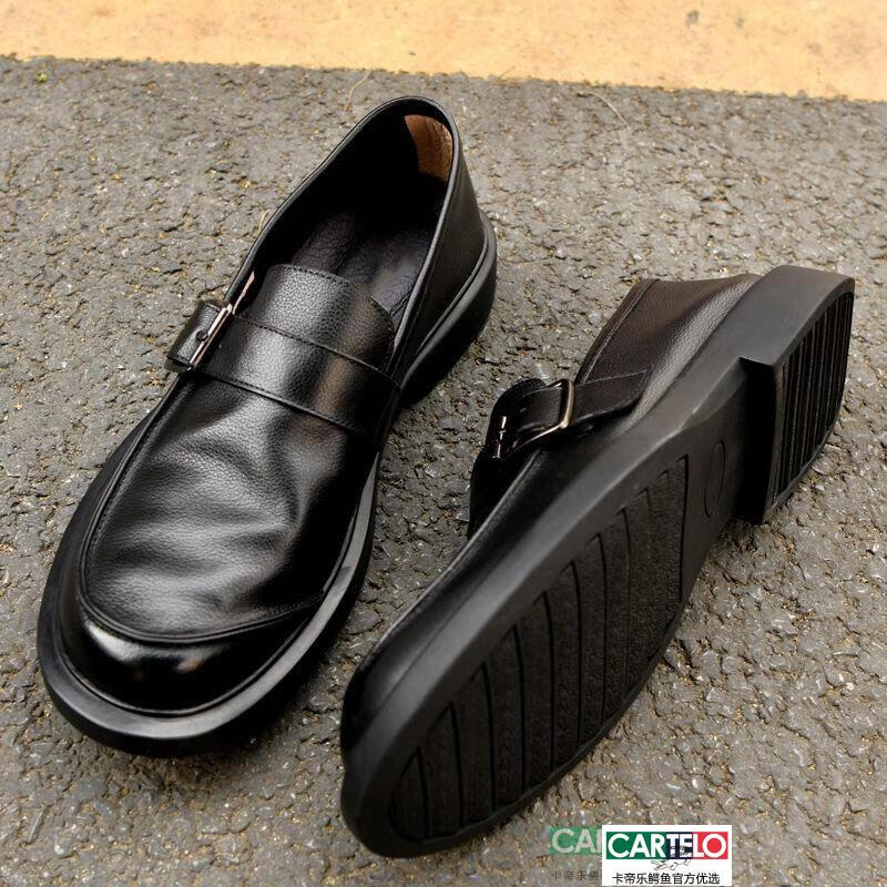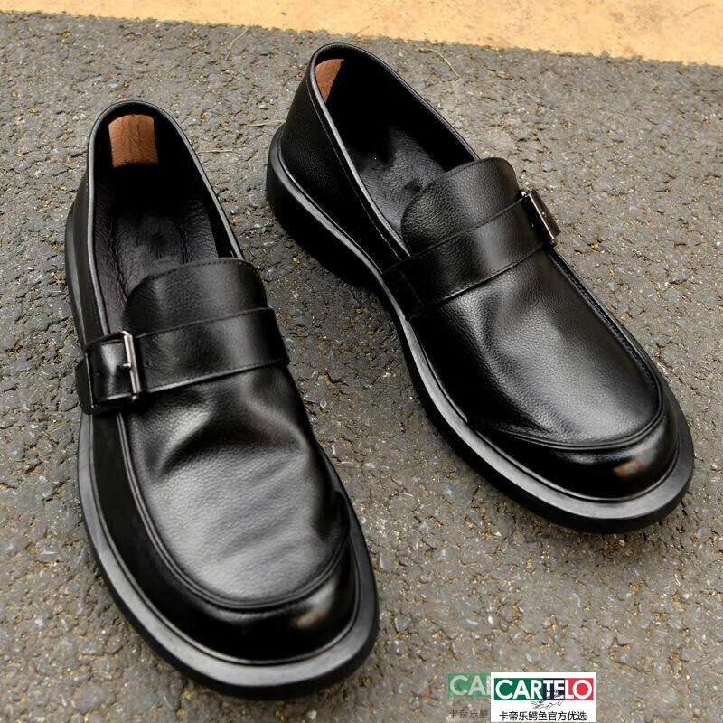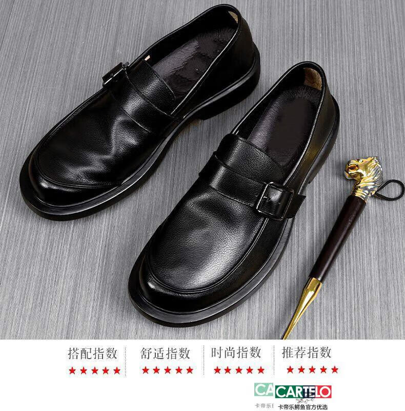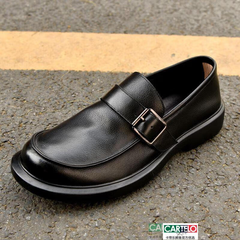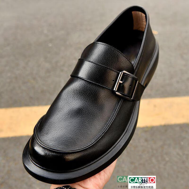 CARTELO spring and autumn breathable men's shoes soft leather business casual leather shoes genuine leather single layer cowhide round toe loose slip-on shoes black four seasons 40