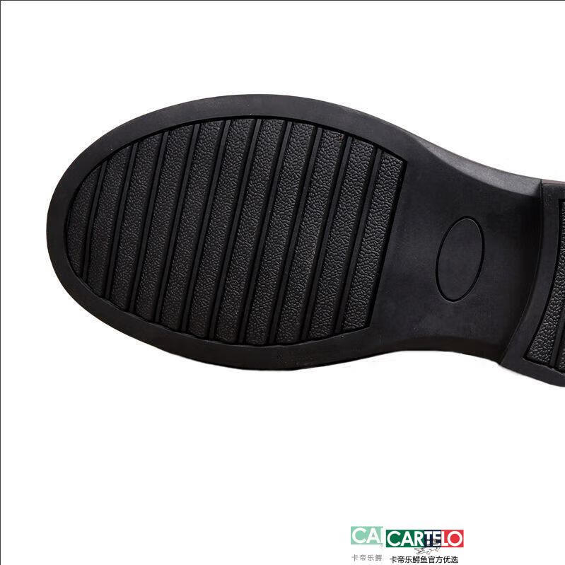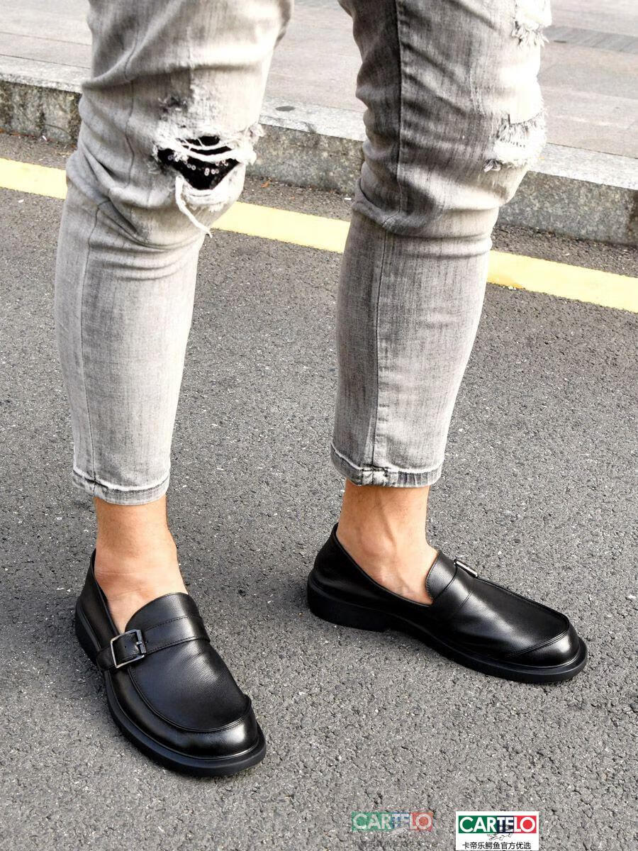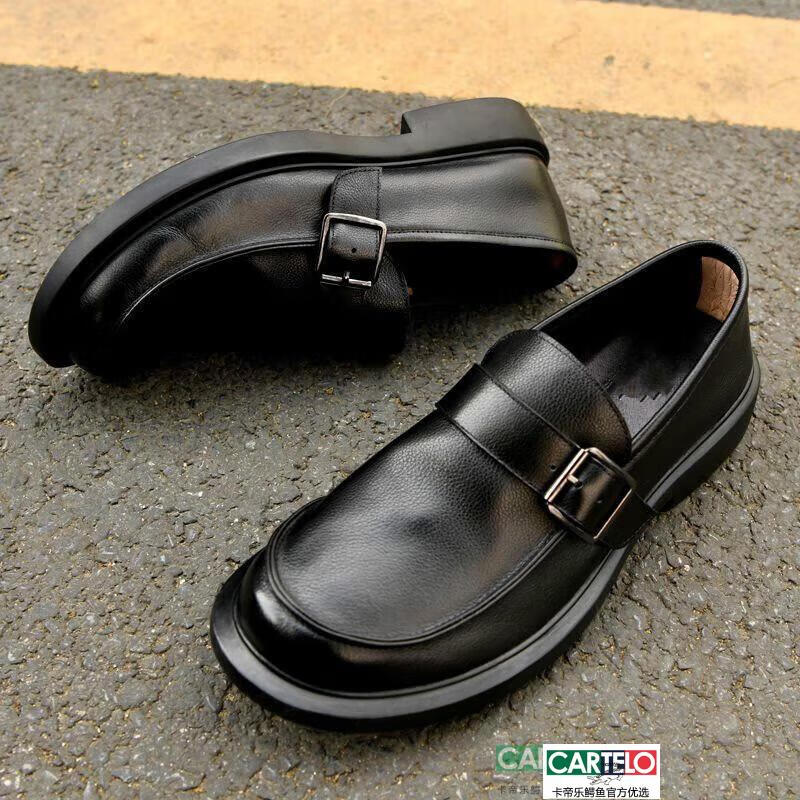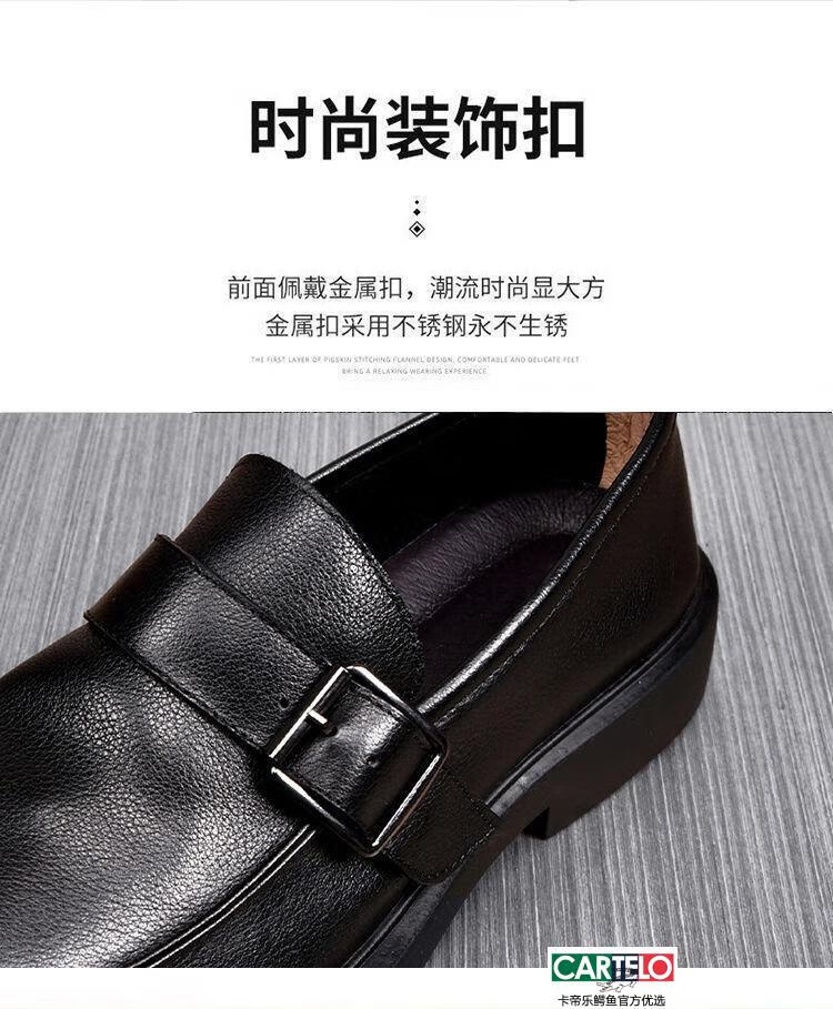 CARTELO spring and autumn breathable men's shoes soft leather business casual leather shoes genuine leather single layer cowhide round toe loose slip-on shoes black four seasons 40
