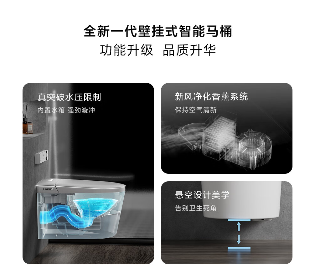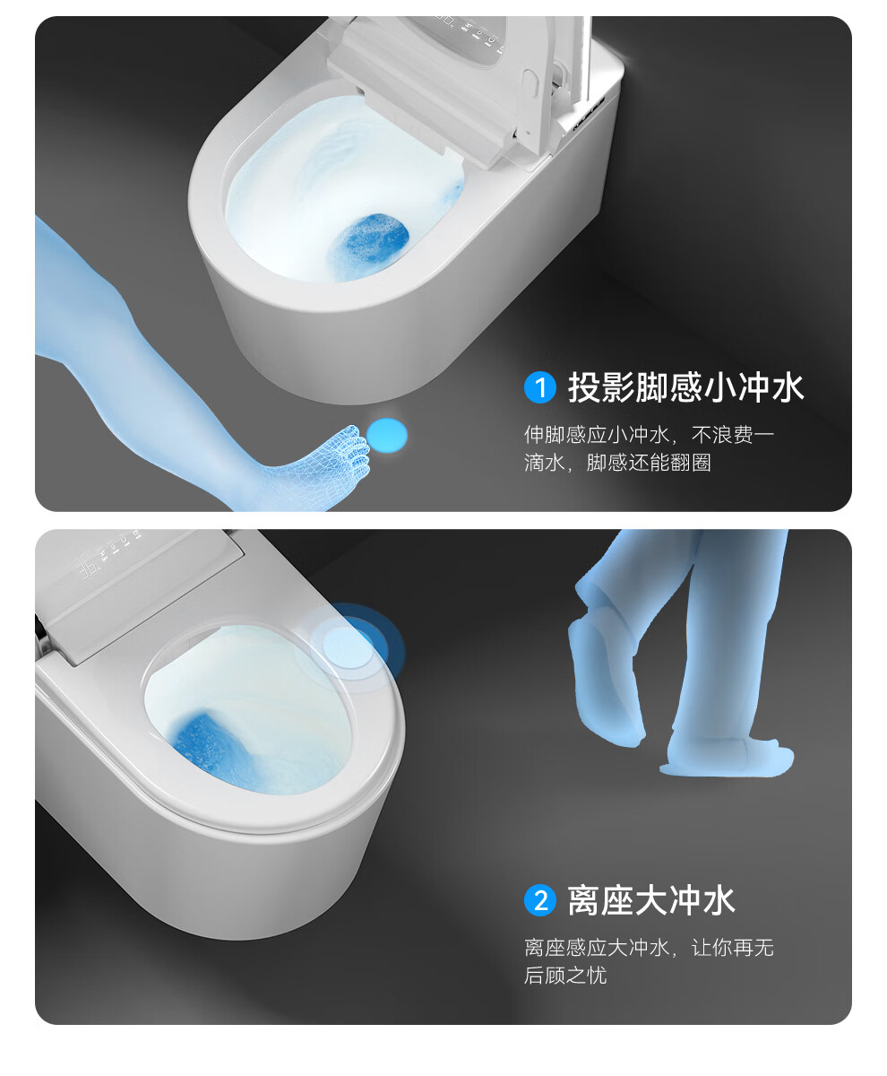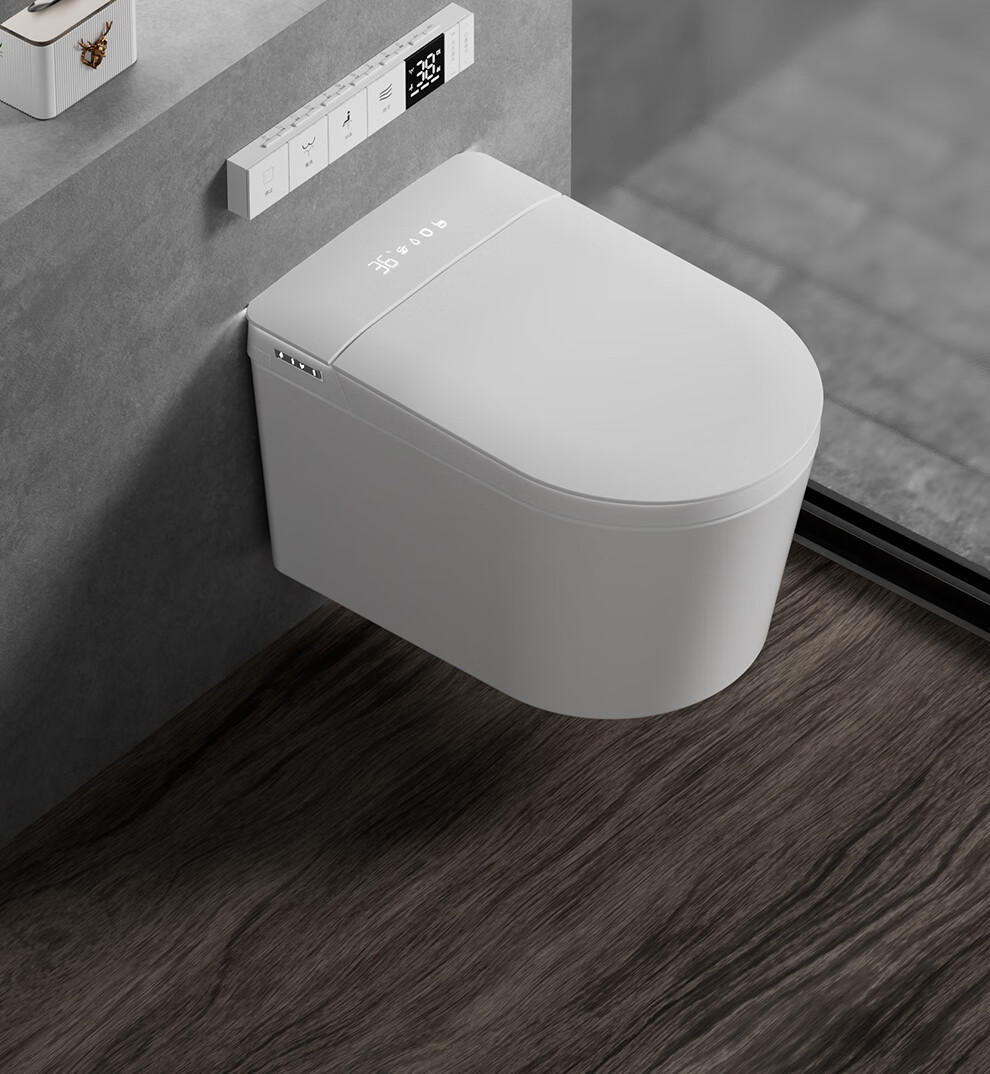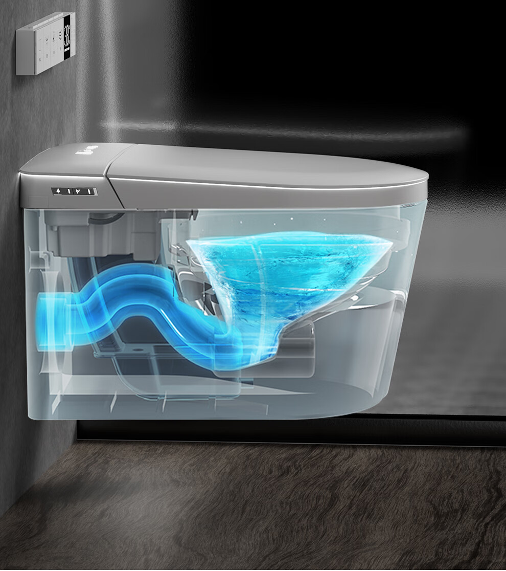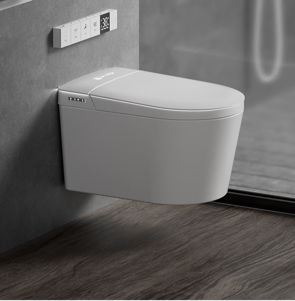 KG wall-mounted smart toilet does not require a pre-embedded water tank, no water pressure requirements, suspended floating wall row fully automatic toilet KM2 voice version top version gray built-in pressurized water tank - no choice of installation scene