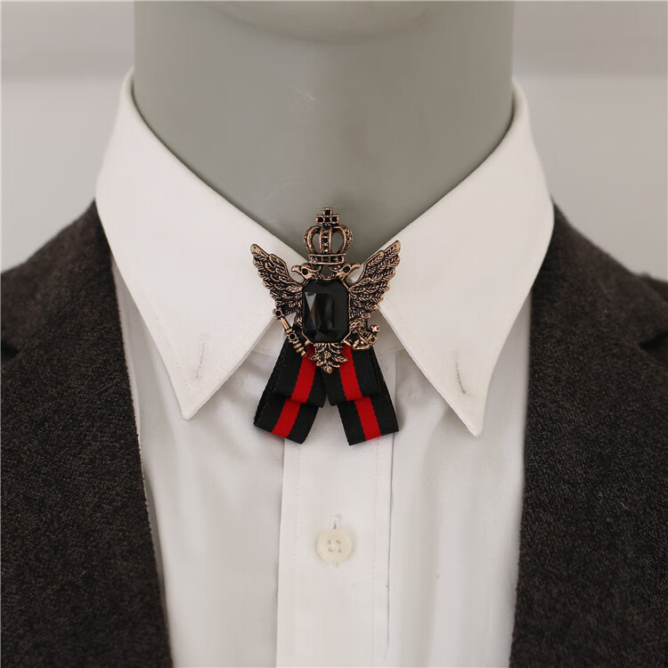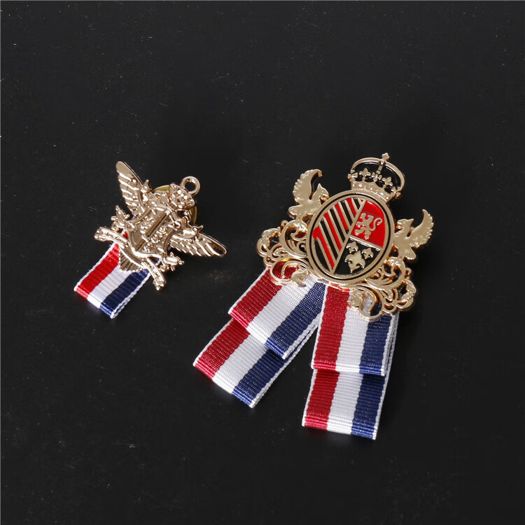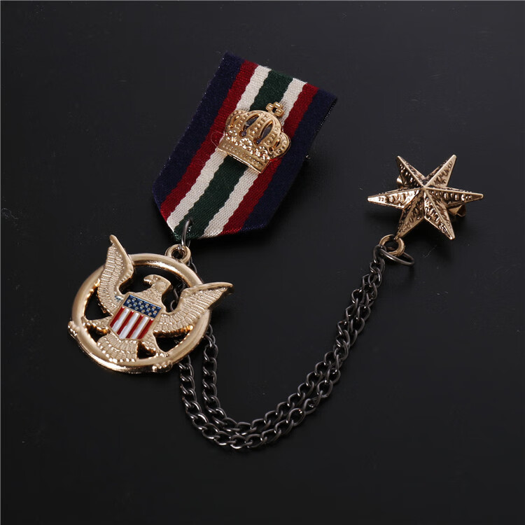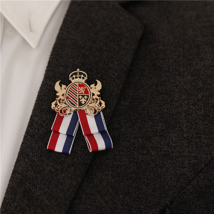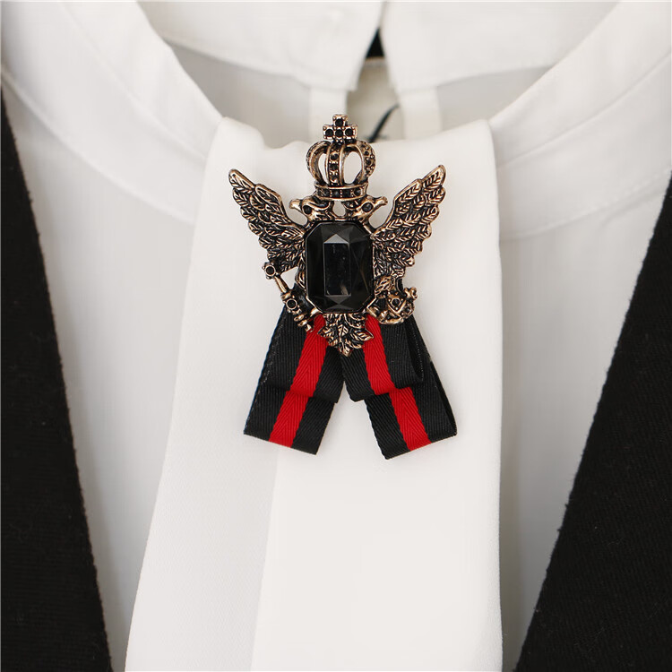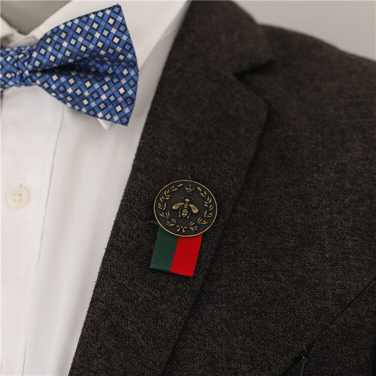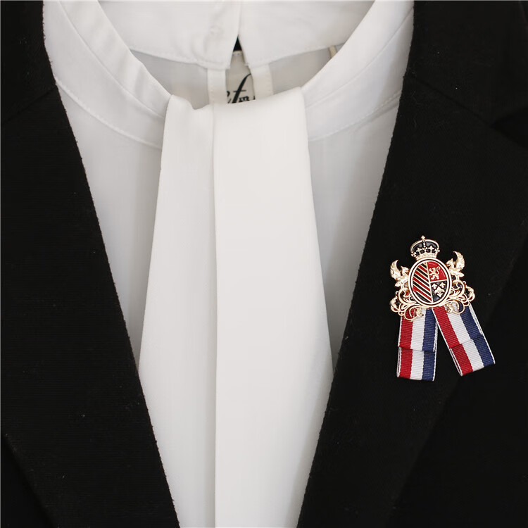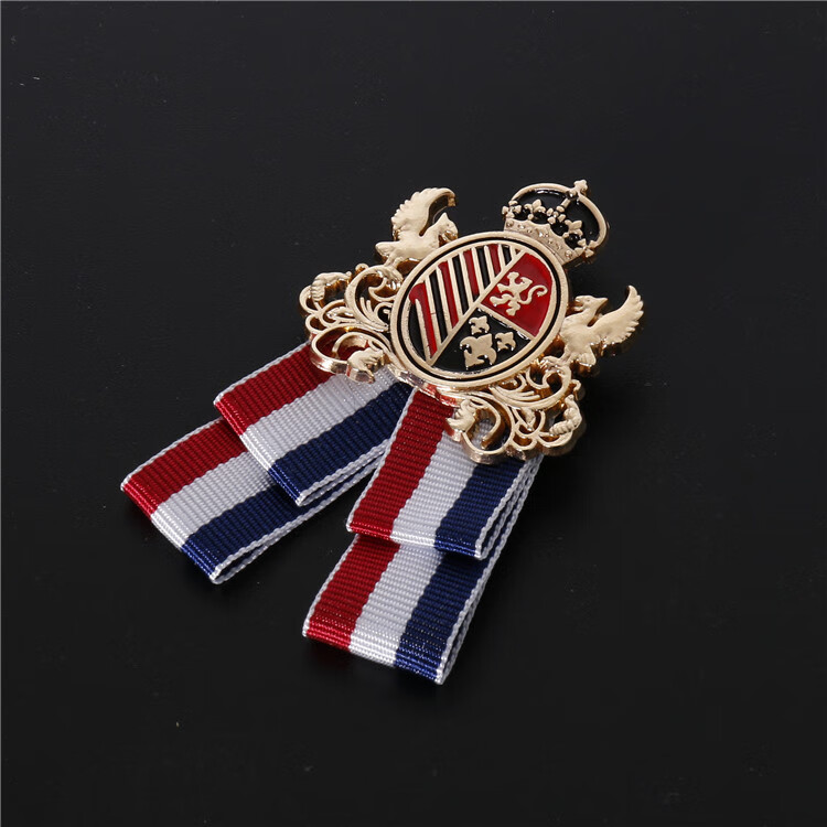 Strong Silver Japanese Fashion British Style Badge Men's Suit Breastplate Ribbon Medal Crown Pin Korean Retro Flying Eagle Brooch Bee + Ribbon
