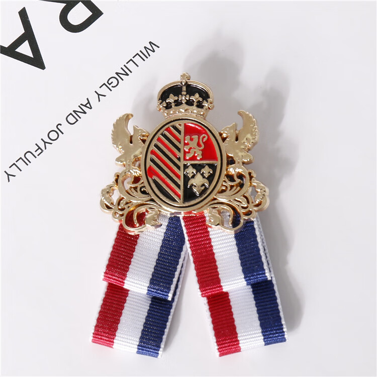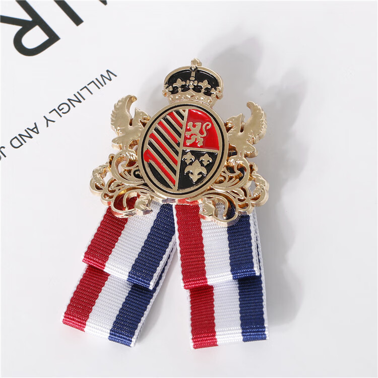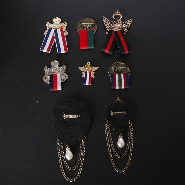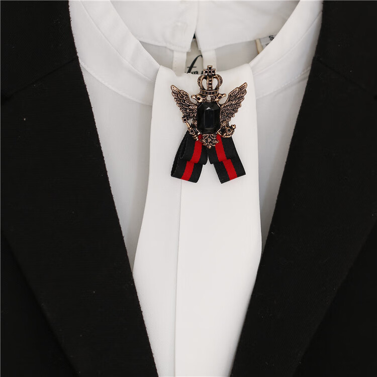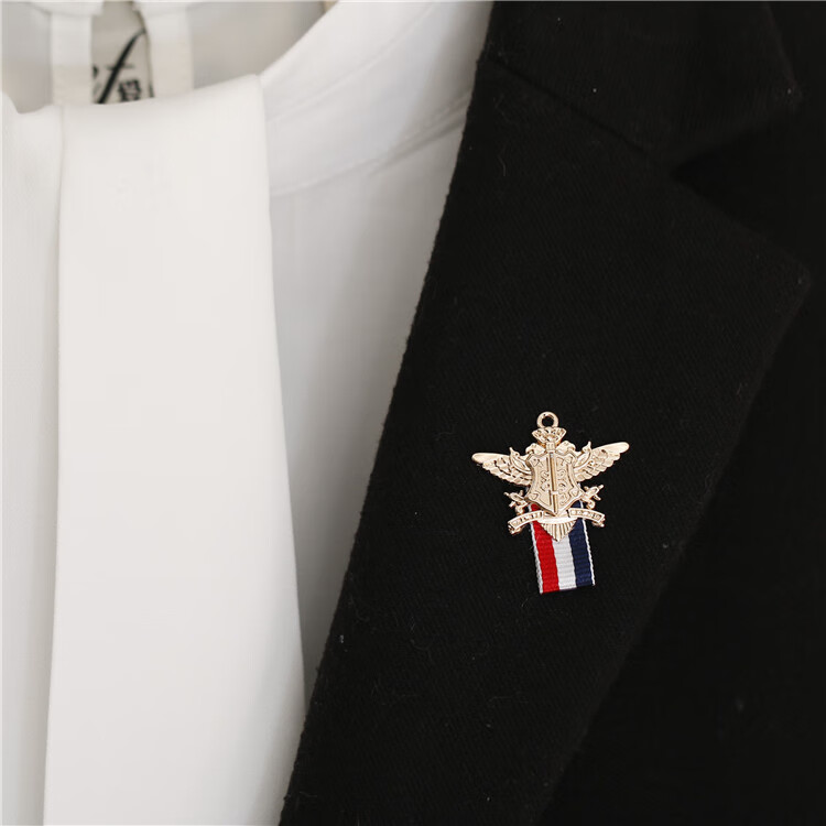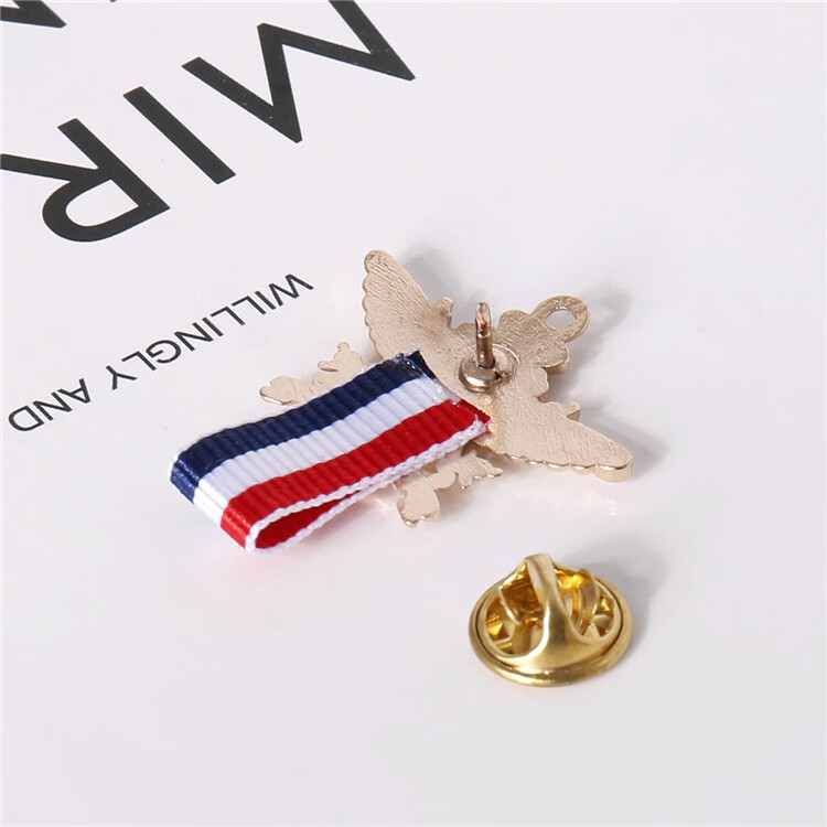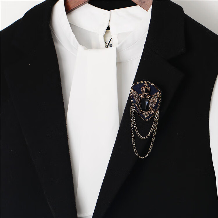 Strong Silver Japanese Fashion British Style Badge Men's Suit Breastplate Ribbon Medal Crown Pin Korean Retro Flying Eagle Brooch Bee + Ribbon