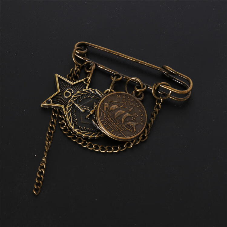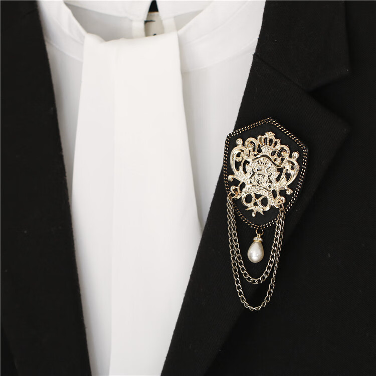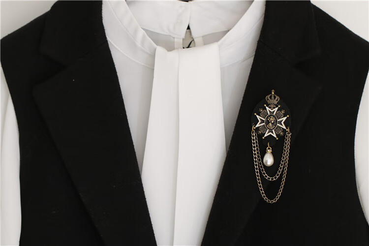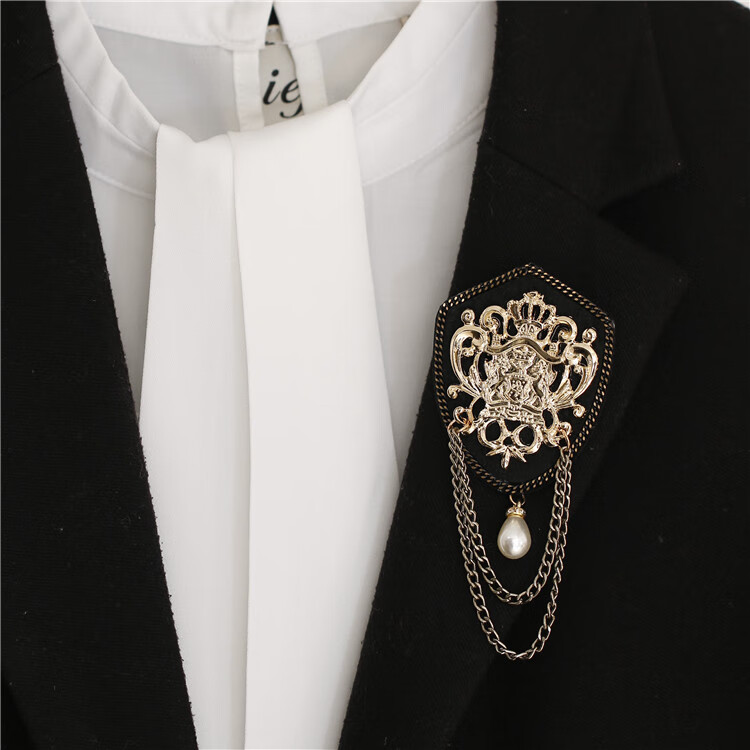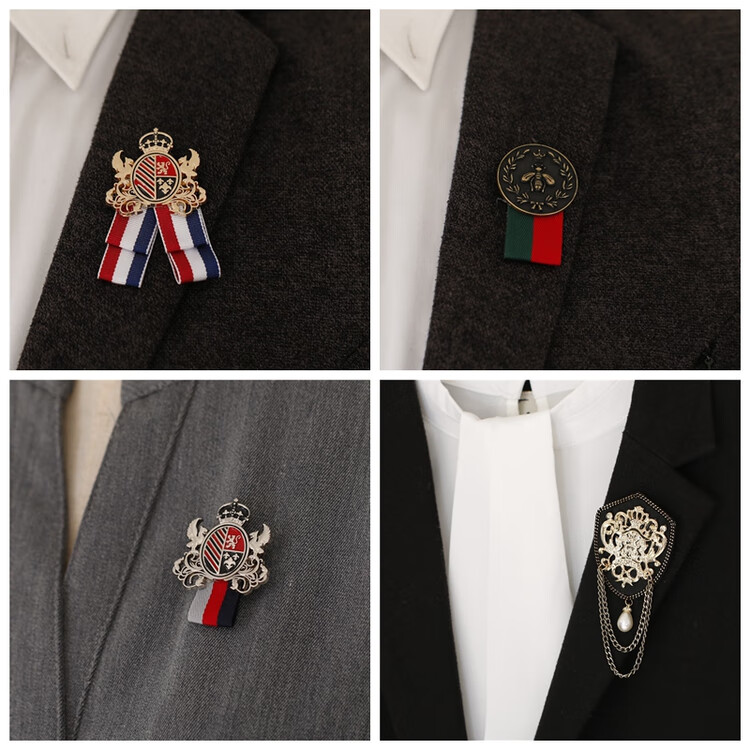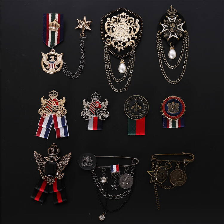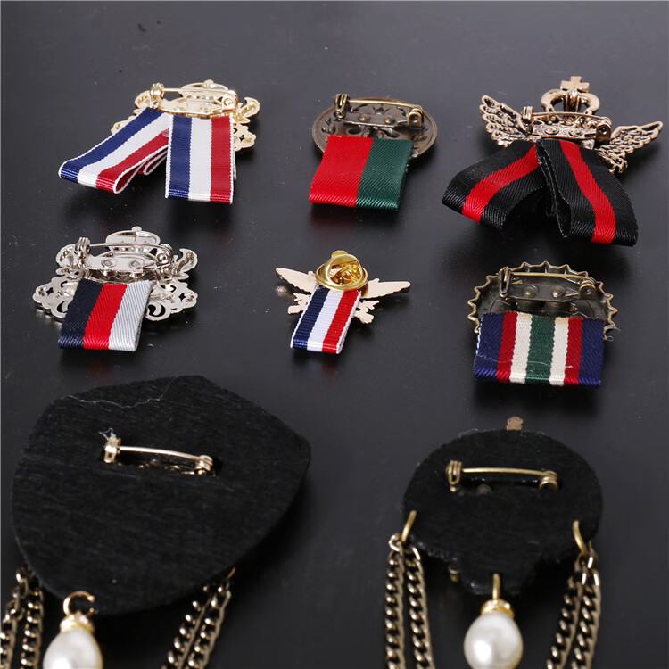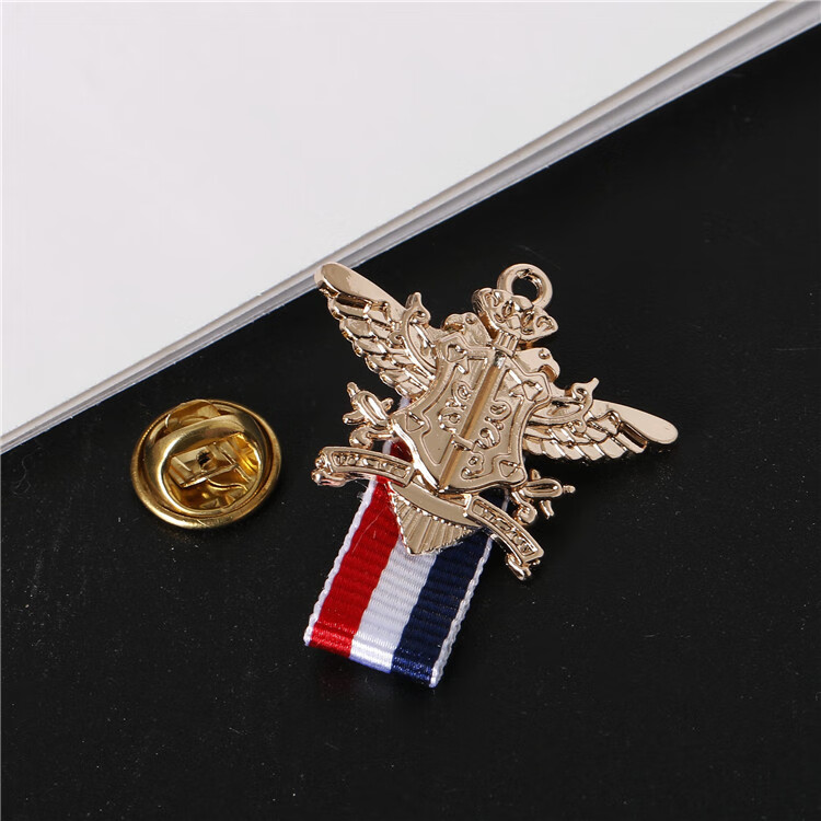 Strong Silver Japanese Fashion British Style Badge Men's Suit Breastplate Ribbon Medal Crown Pin Korean Retro Flying Eagle Brooch Bee + Ribbon