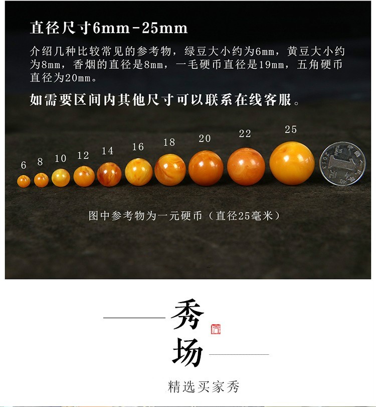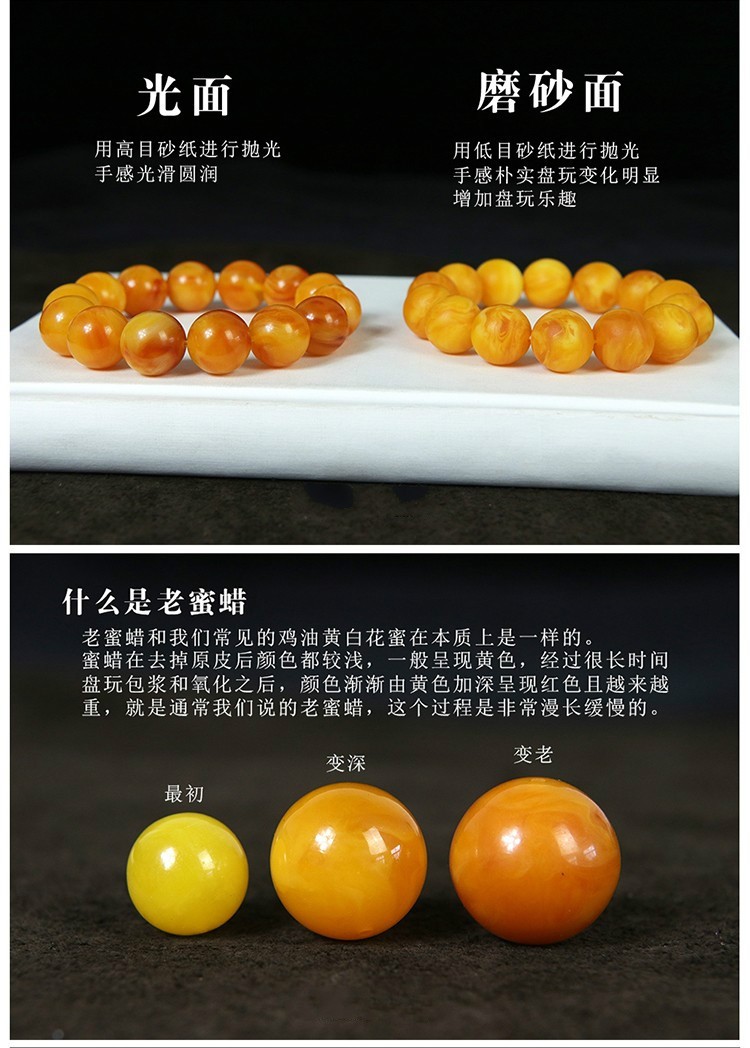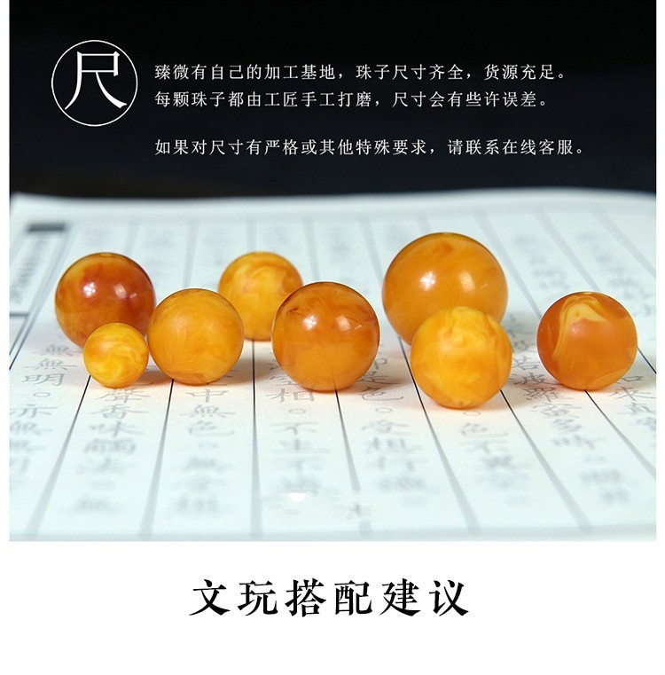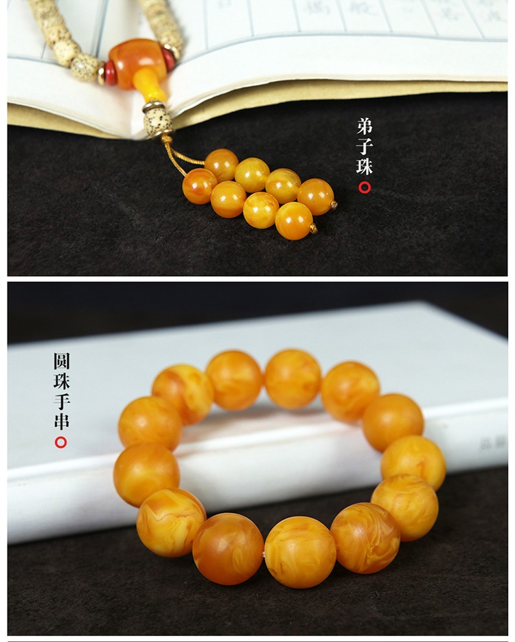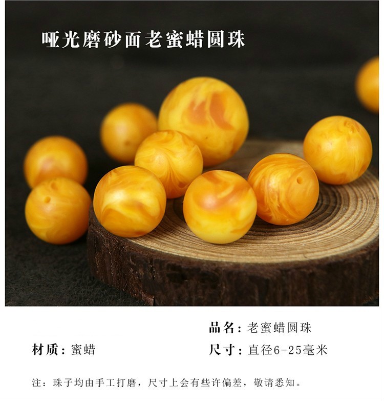 Lianju Chicken Fat Yellow Old Beeswax Round Bead Single Bead Loose Bead Bead Bracelet Bracelet King Kong with Beads Smooth Old Beeswax Diameter 6MM/Single Bead