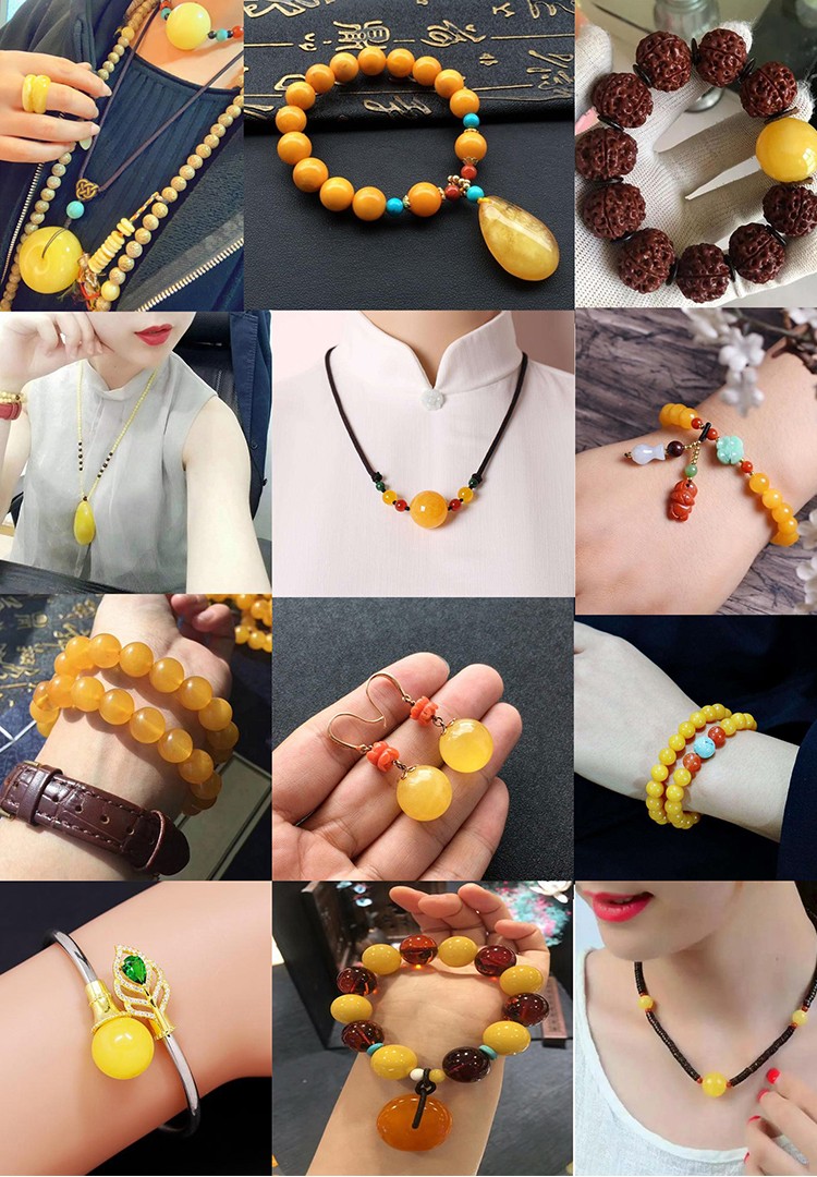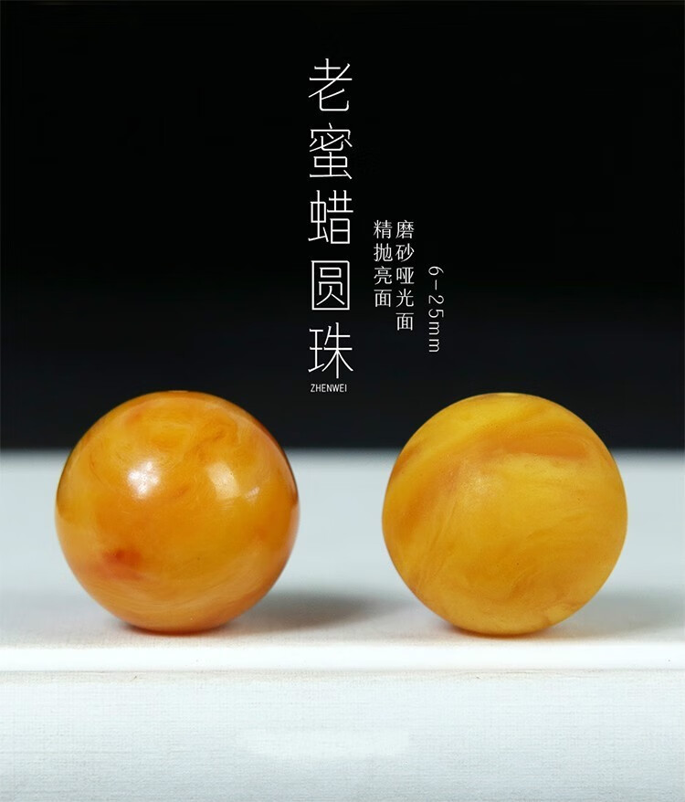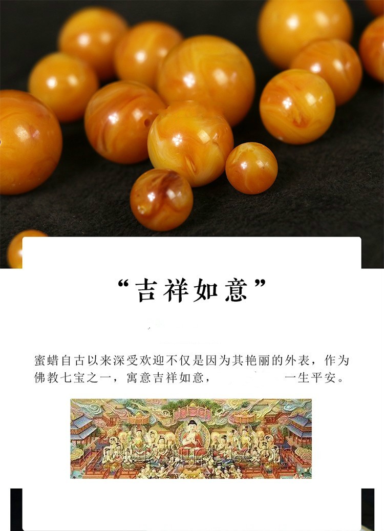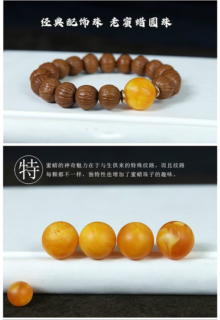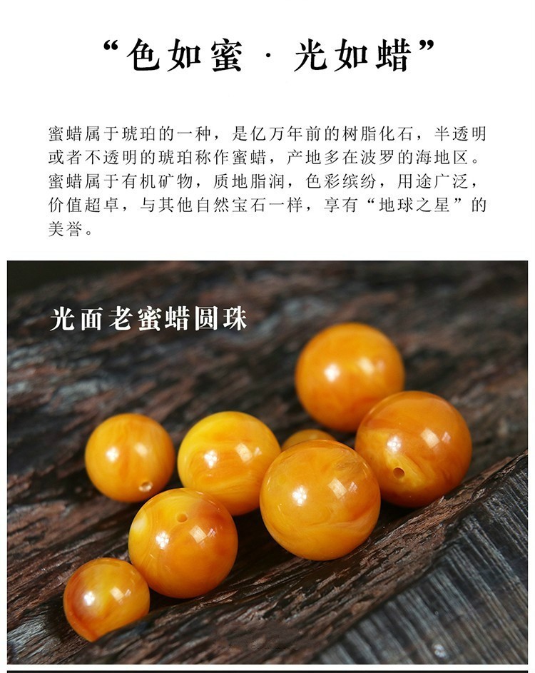 Lianju Chicken Fat Yellow Old Beeswax Round Bead Single Bead Loose Bead Bead Bracelet Bracelet King Kong with Beads Smooth Old Beeswax Diameter 6MM/Single Bead