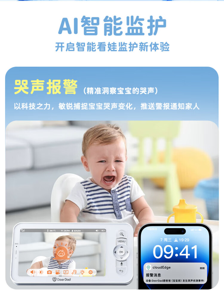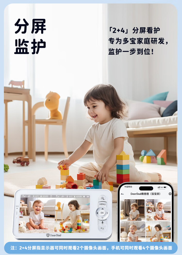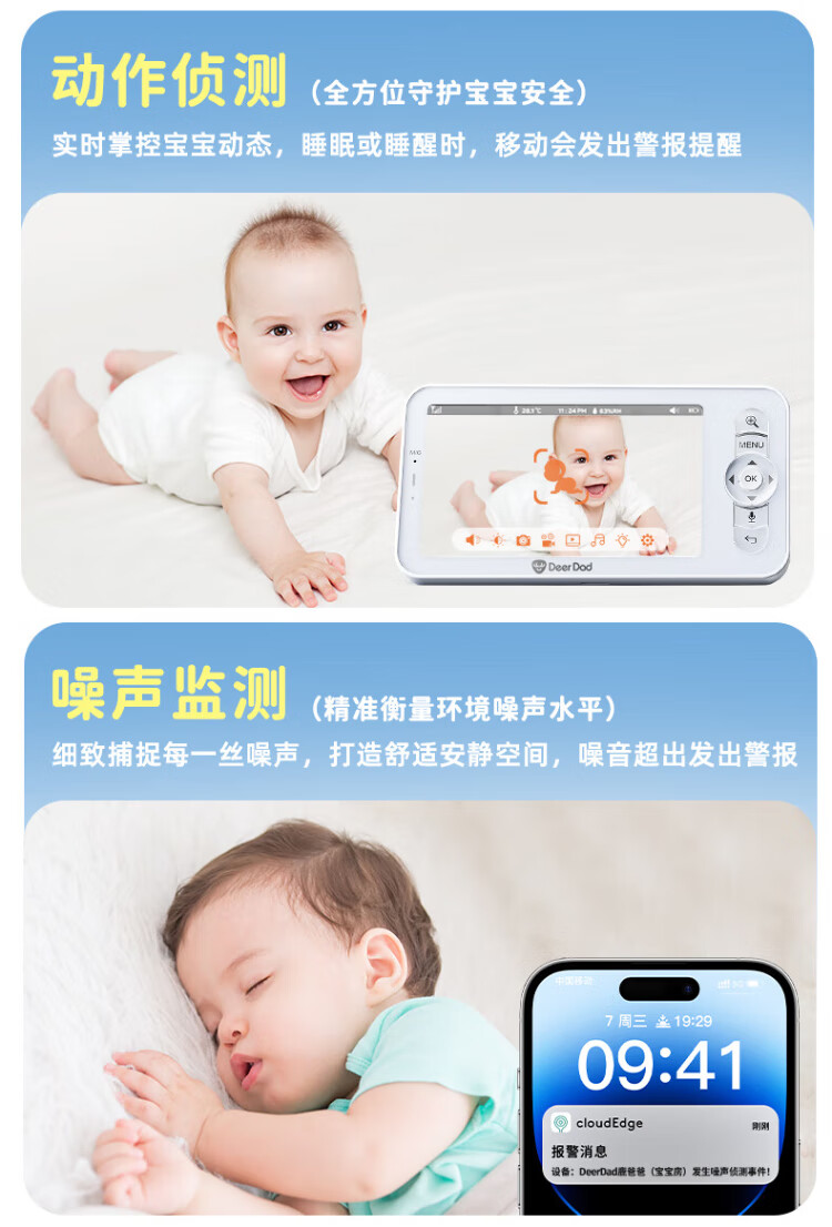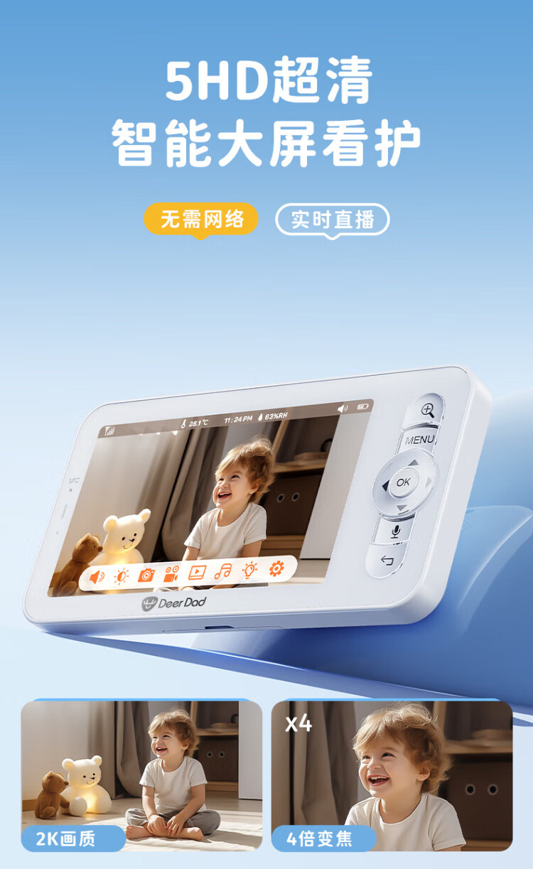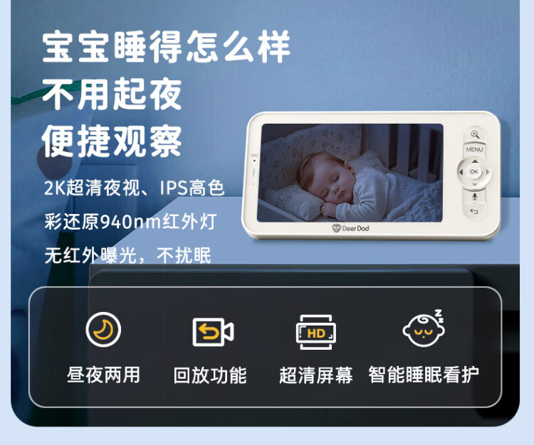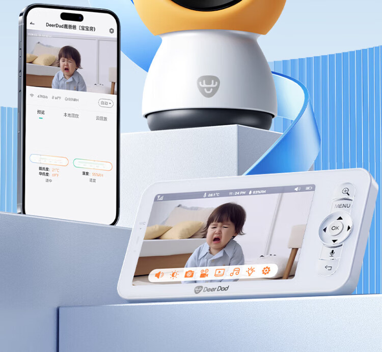 Deer Dad Smart Baby Monitor Monitoring Camera Baby Nurse Sleeping Child Monitoring Cry Alarm Baby5 Single Camera Free 64G Memory Card