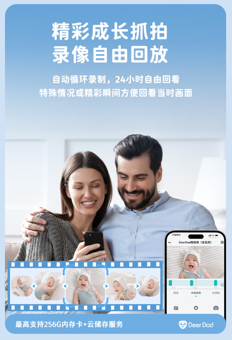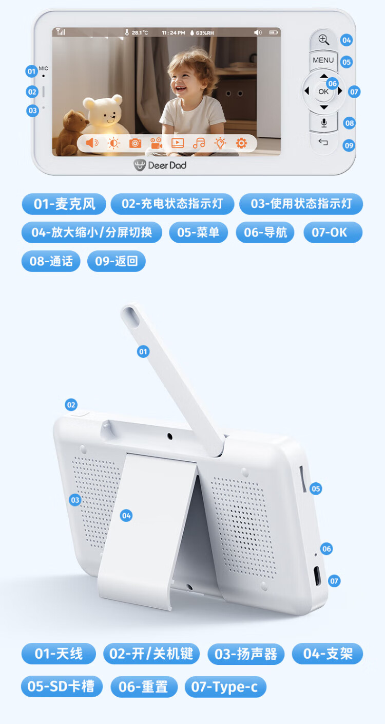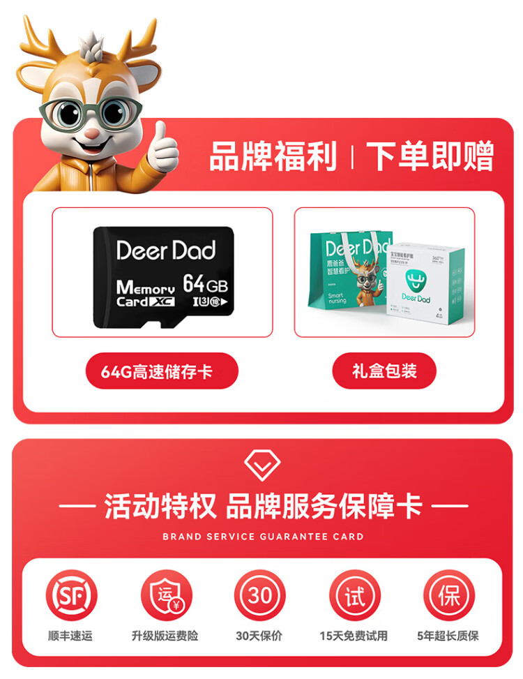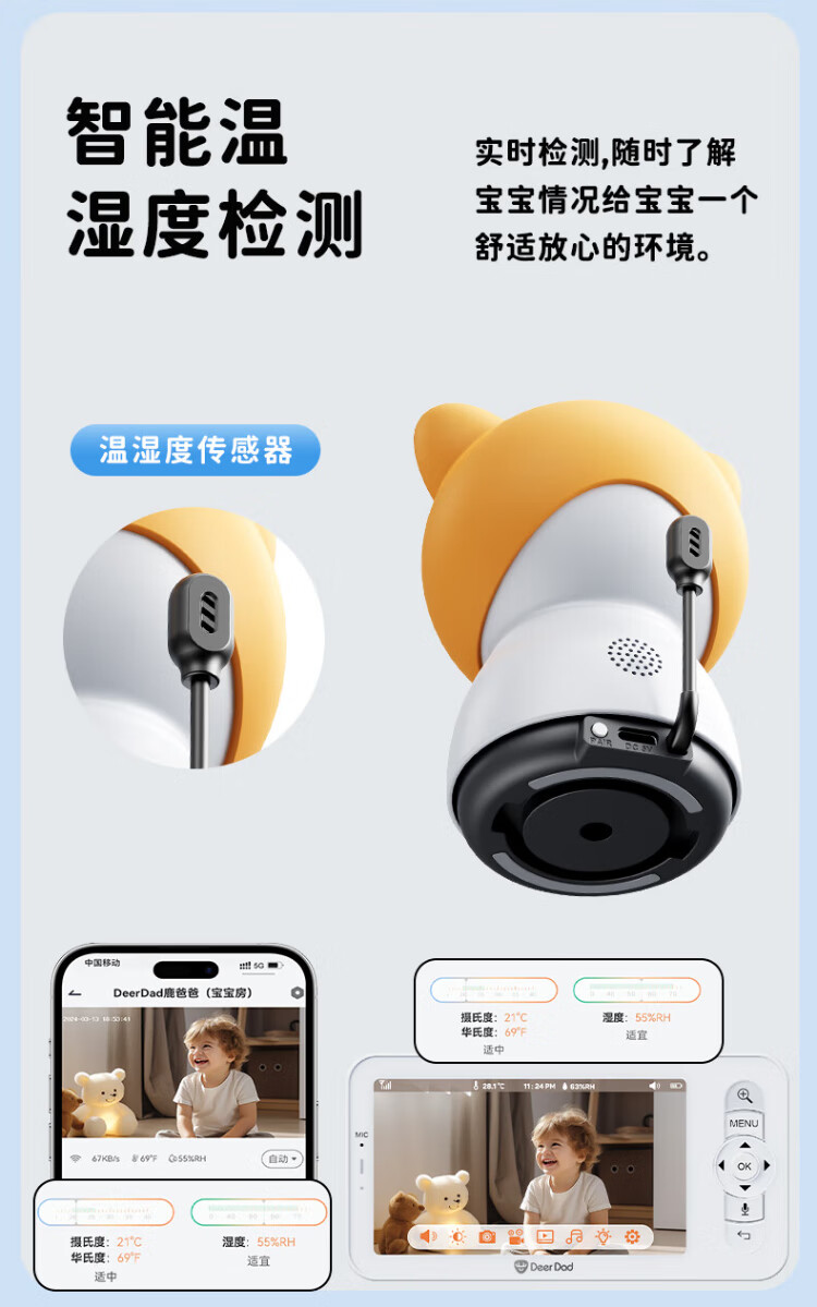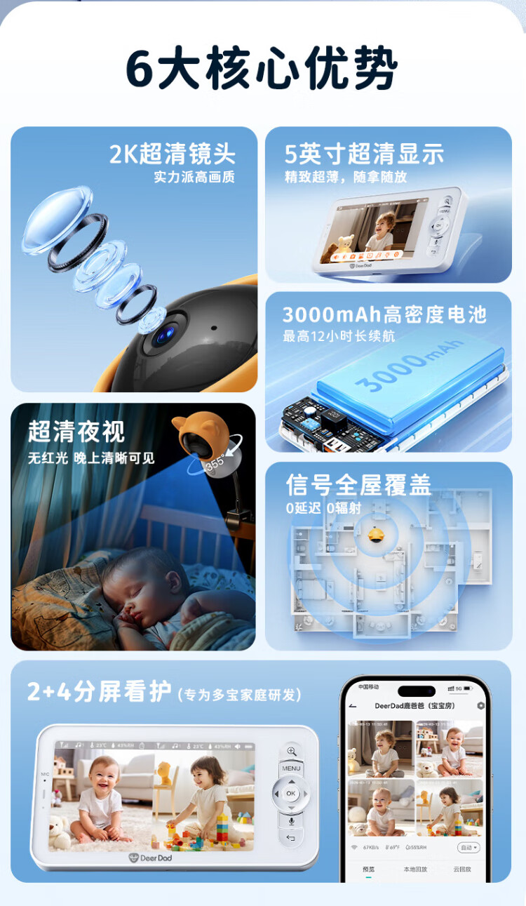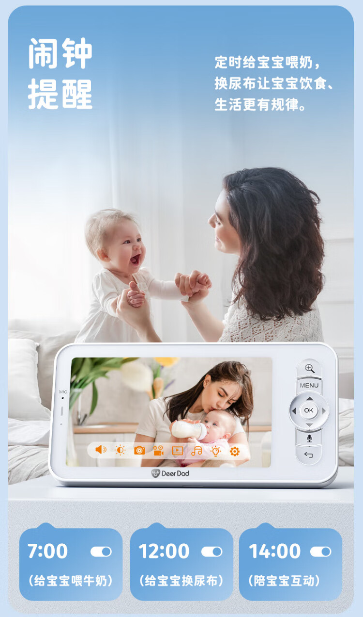 Deer Dad Smart Baby Monitor Monitoring Camera Baby Nurse Sleeping Child Monitoring Cry Alarm Baby5 Single Camera Free 64G Memory Card