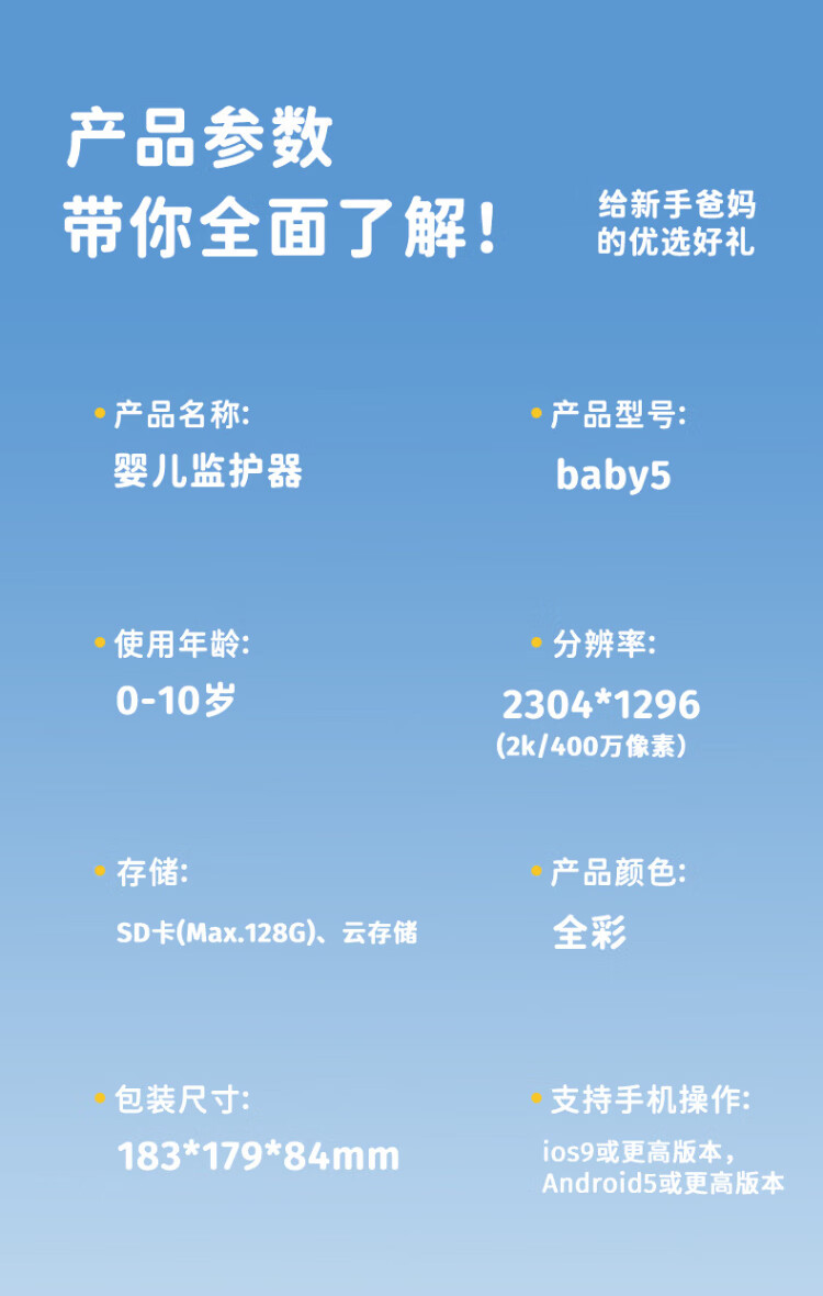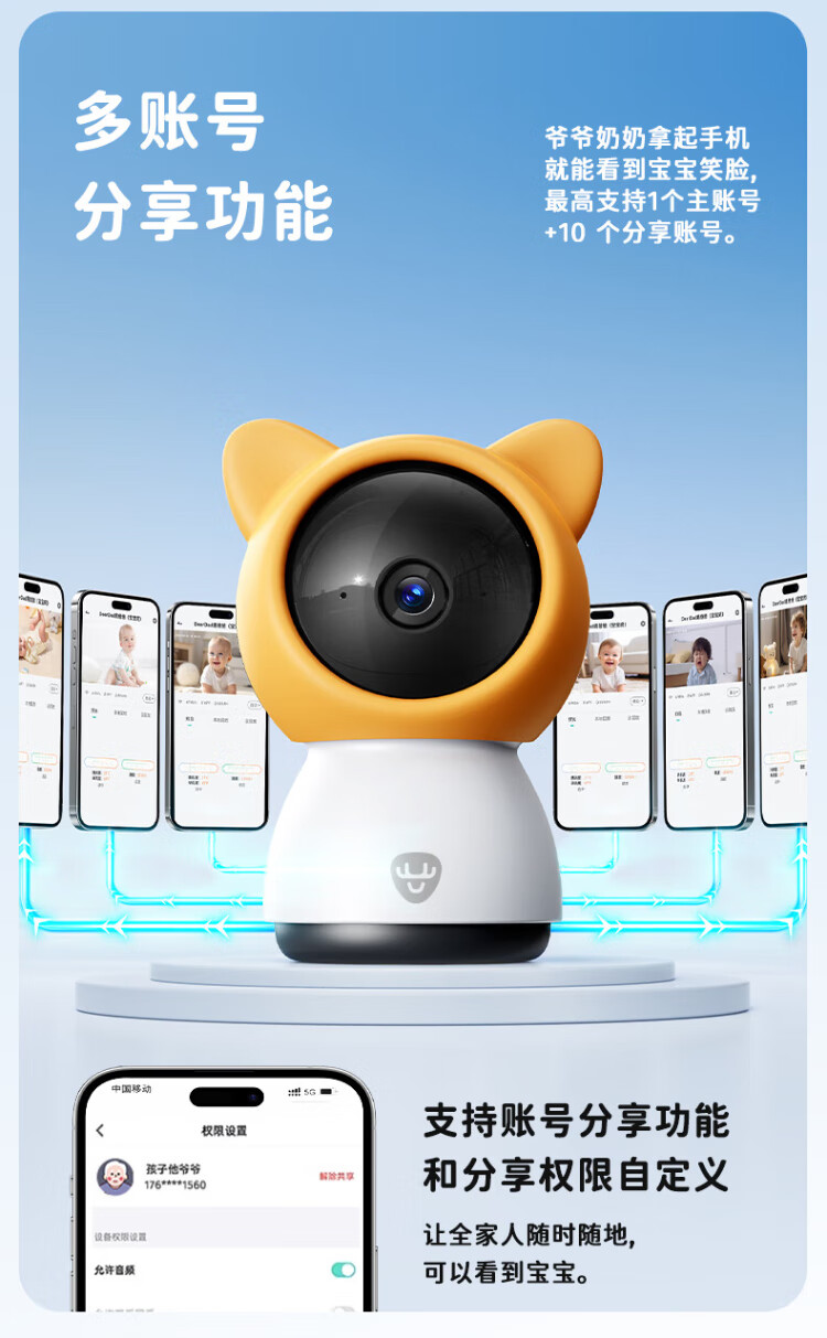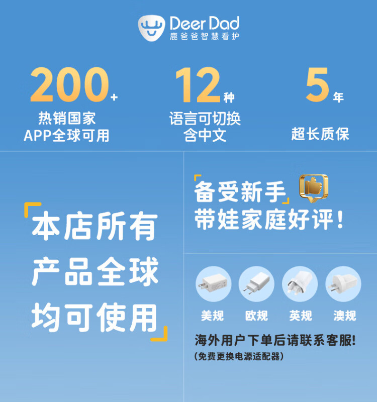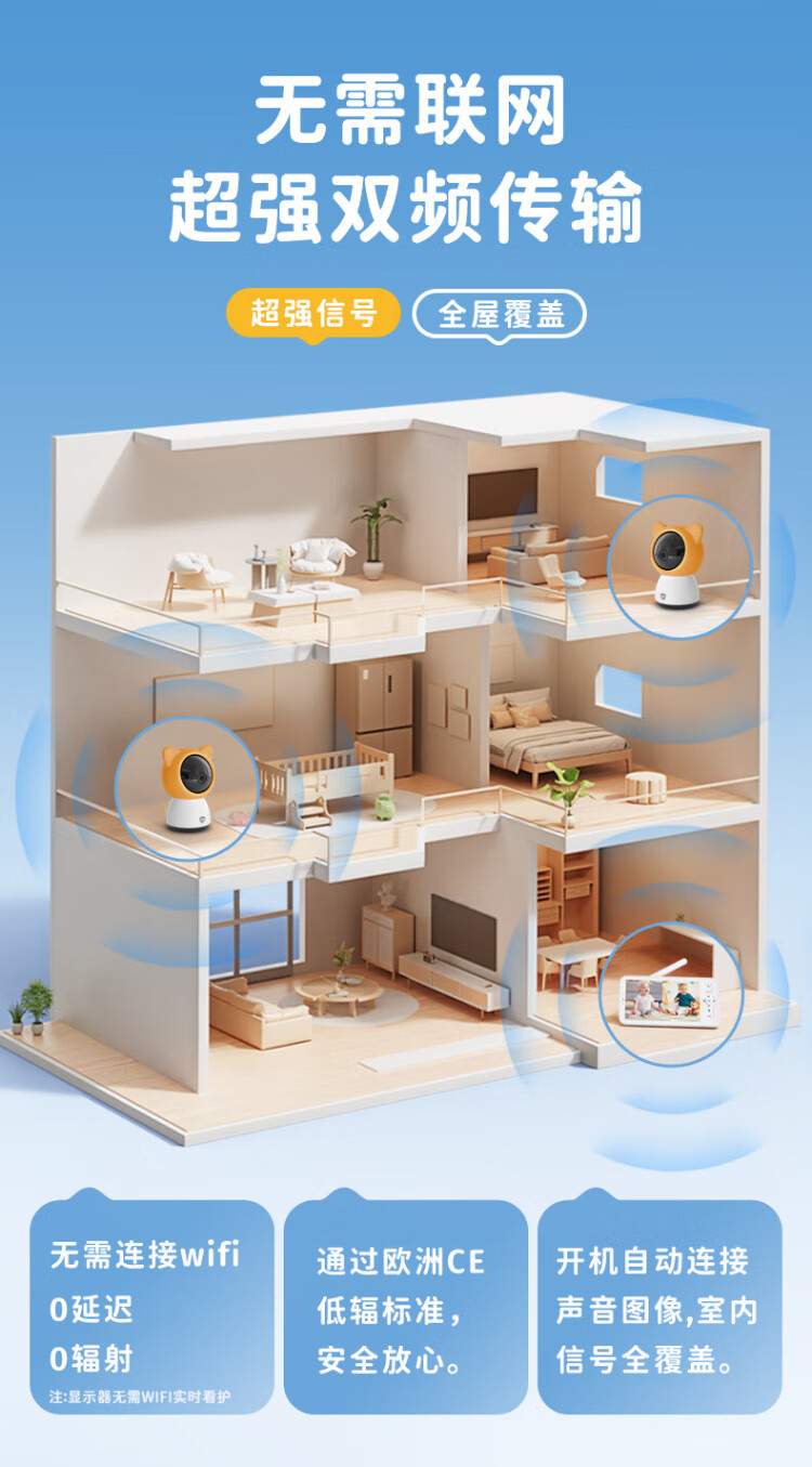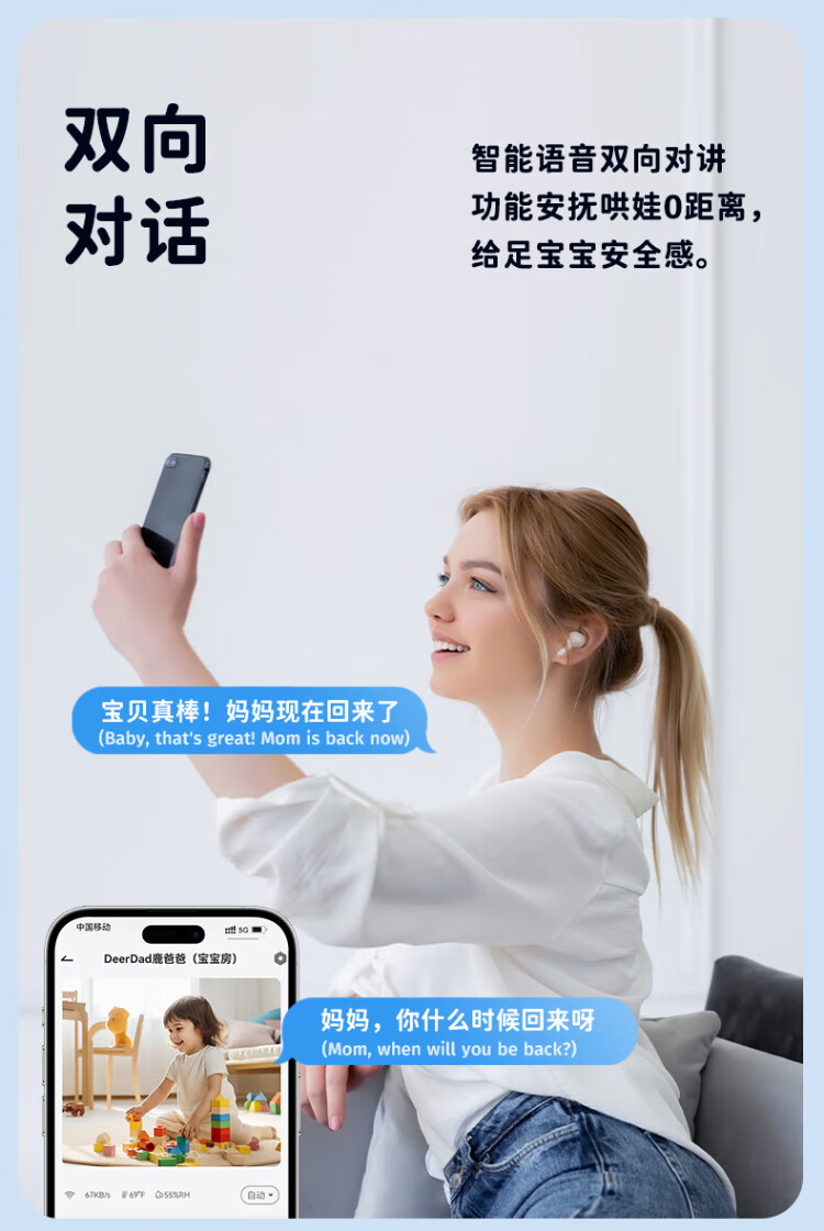 Deer Dad Smart Baby Monitor Monitoring Camera Baby Nurse Sleeping Child Monitoring Cry Alarm Baby5 Single Camera Free 64G Memory Card