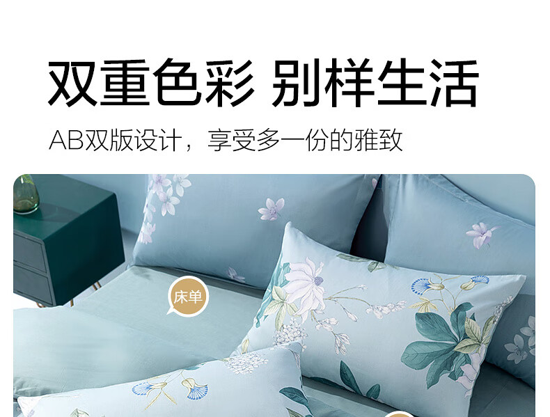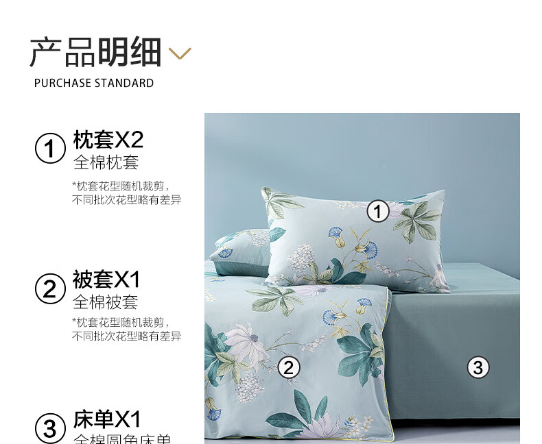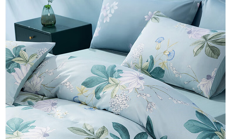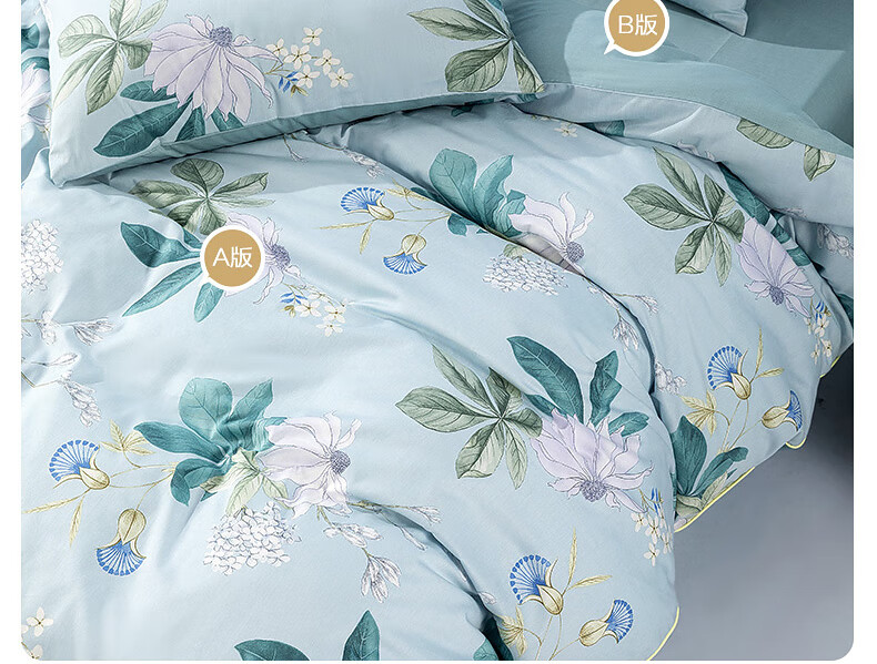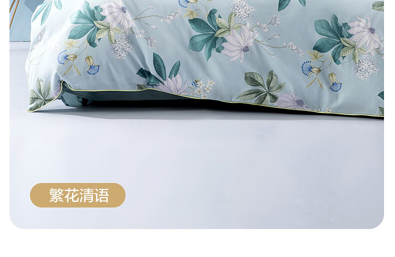 Mercury Home Textiles Pure Cotton Bed Four-piece Set of Cotton Printed Antibacterial Single and Double Quilt Covers, Blossoms and Clear Language, Suitable for 1.5/1.8m beds丨With 200*230 quilt core
