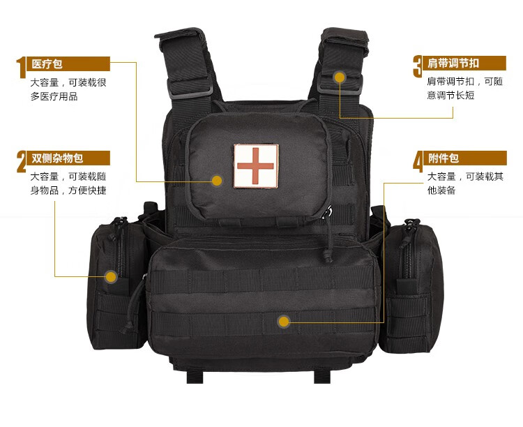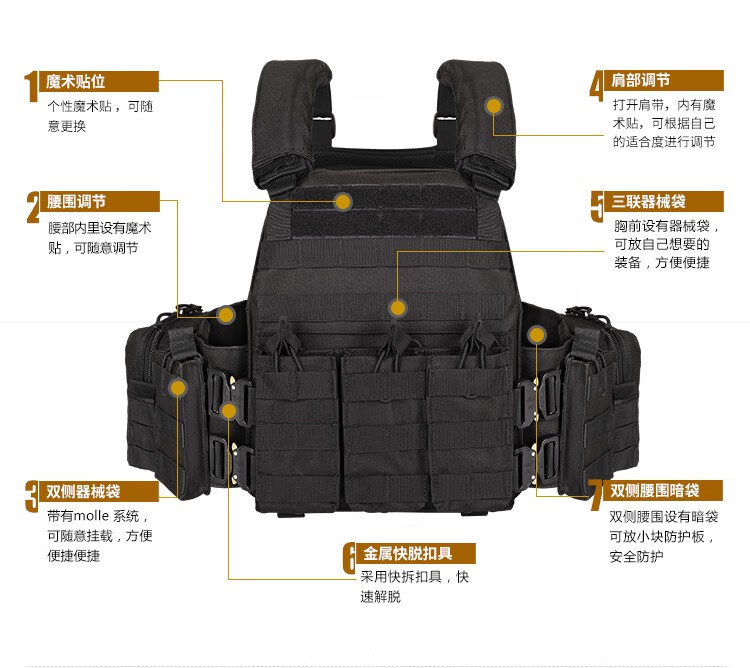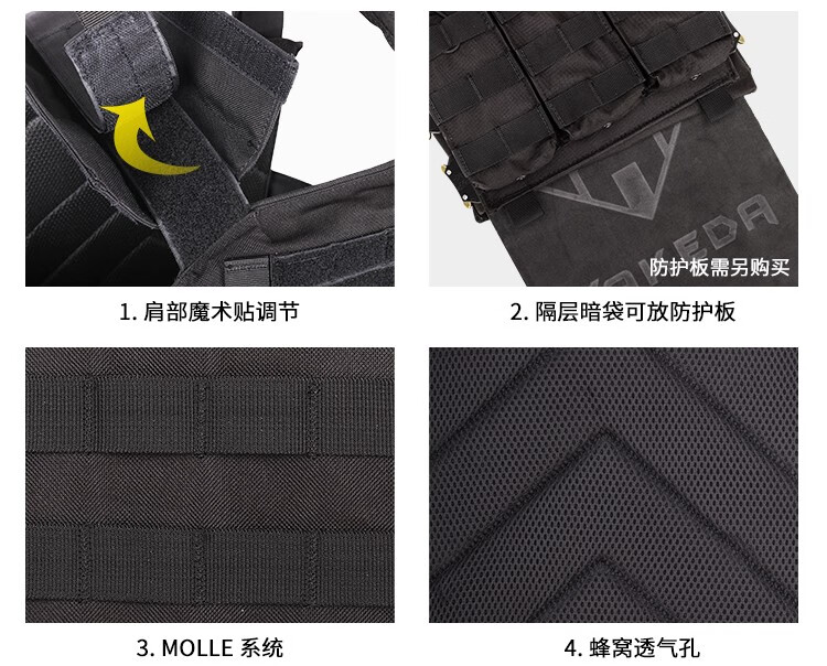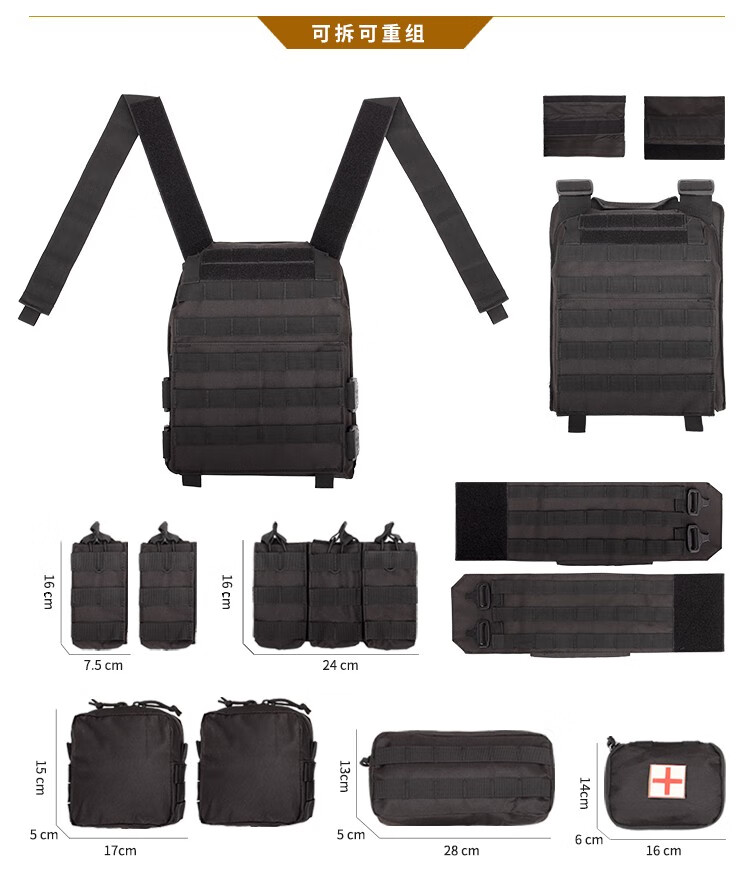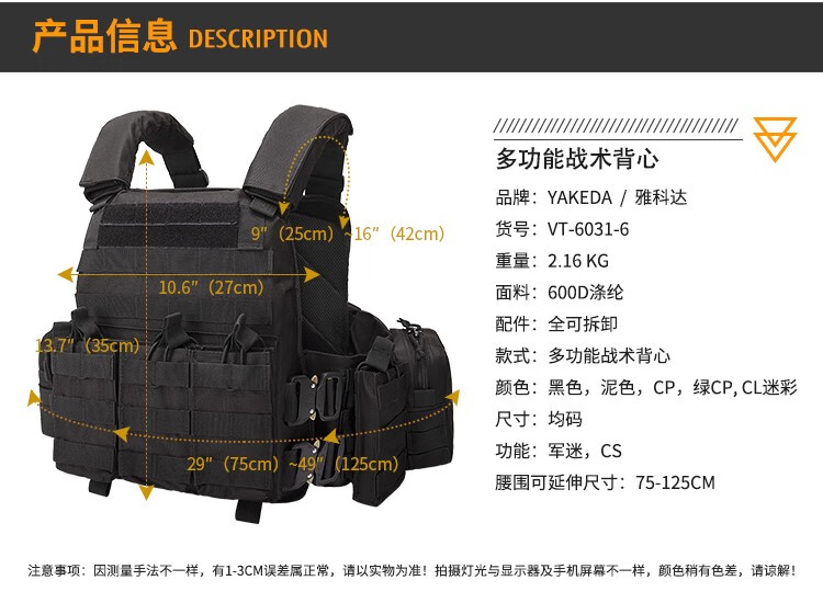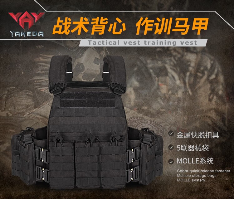 YAKEDA tactical vest new lightweight molle tactical vest quick release black full set of plug-in boards universal black standard does not include protective plates
