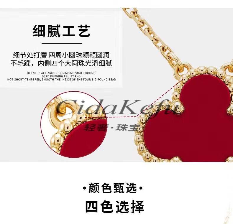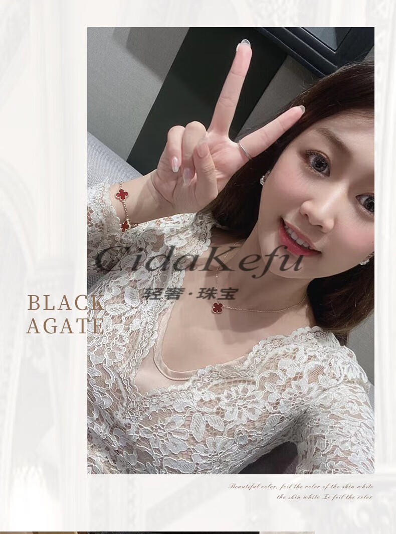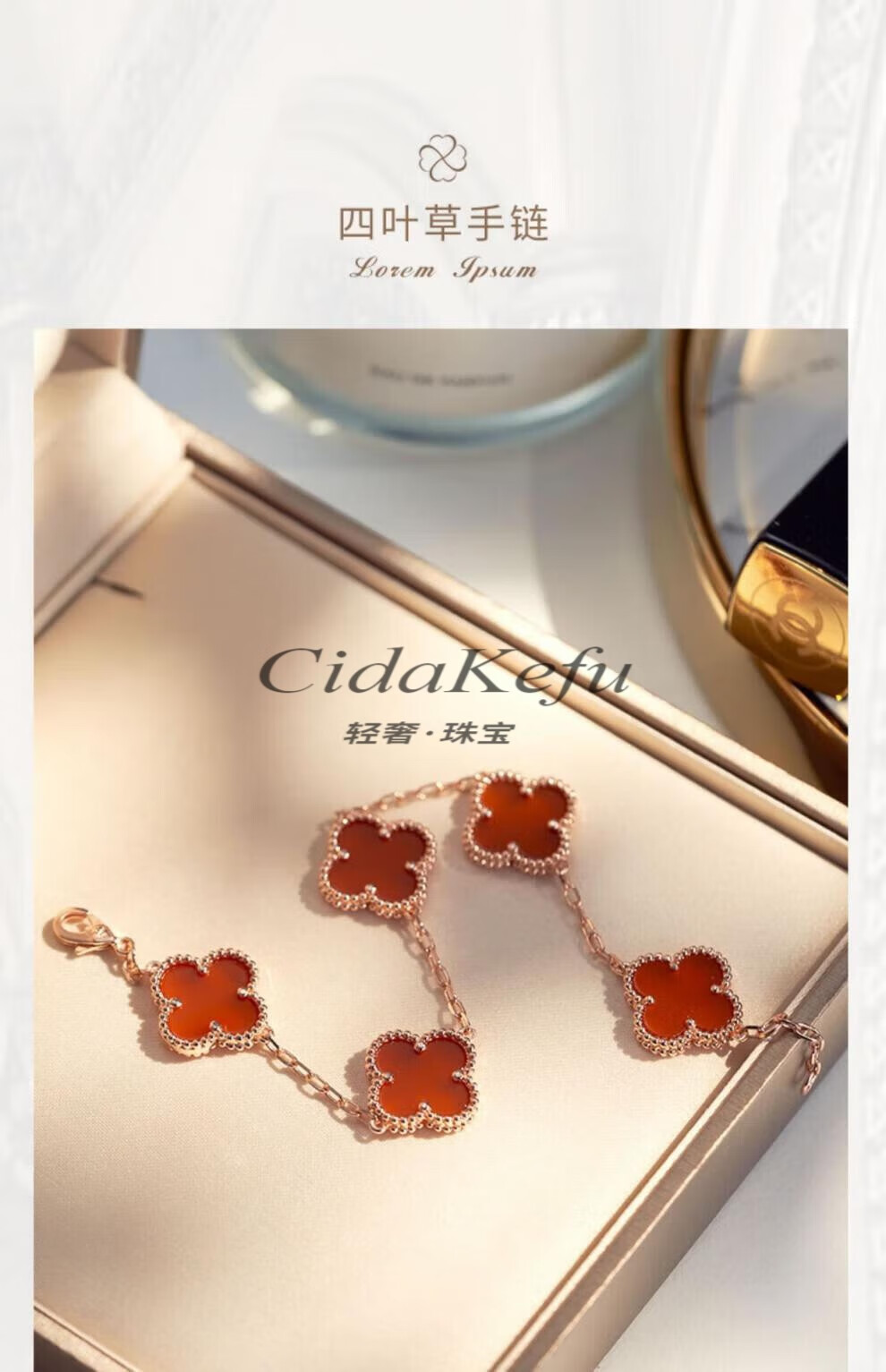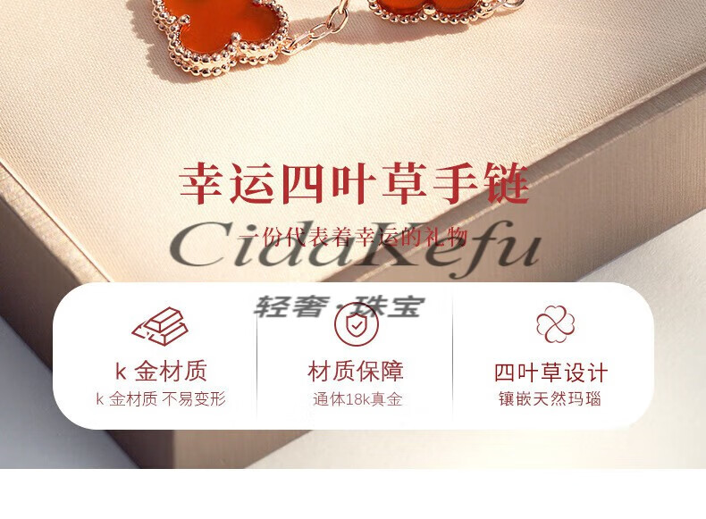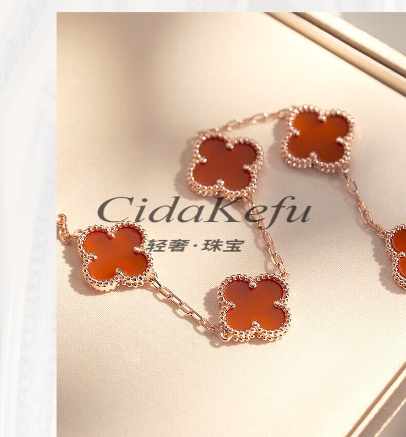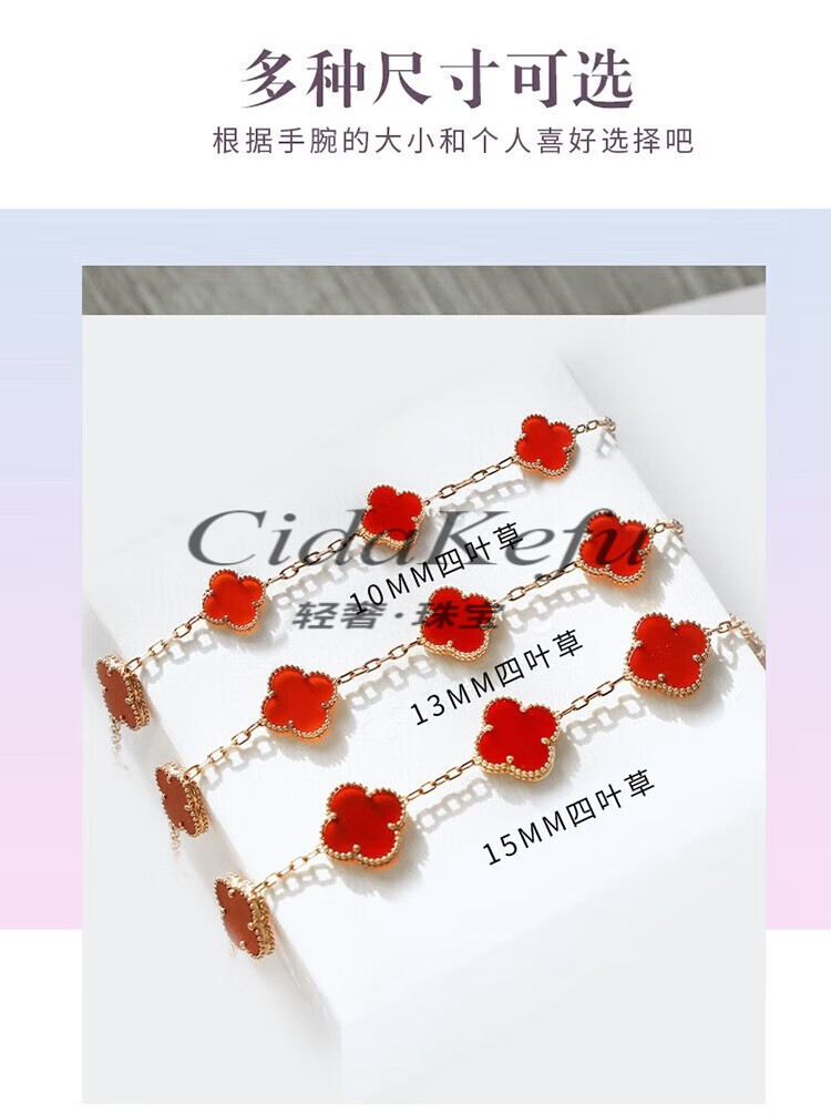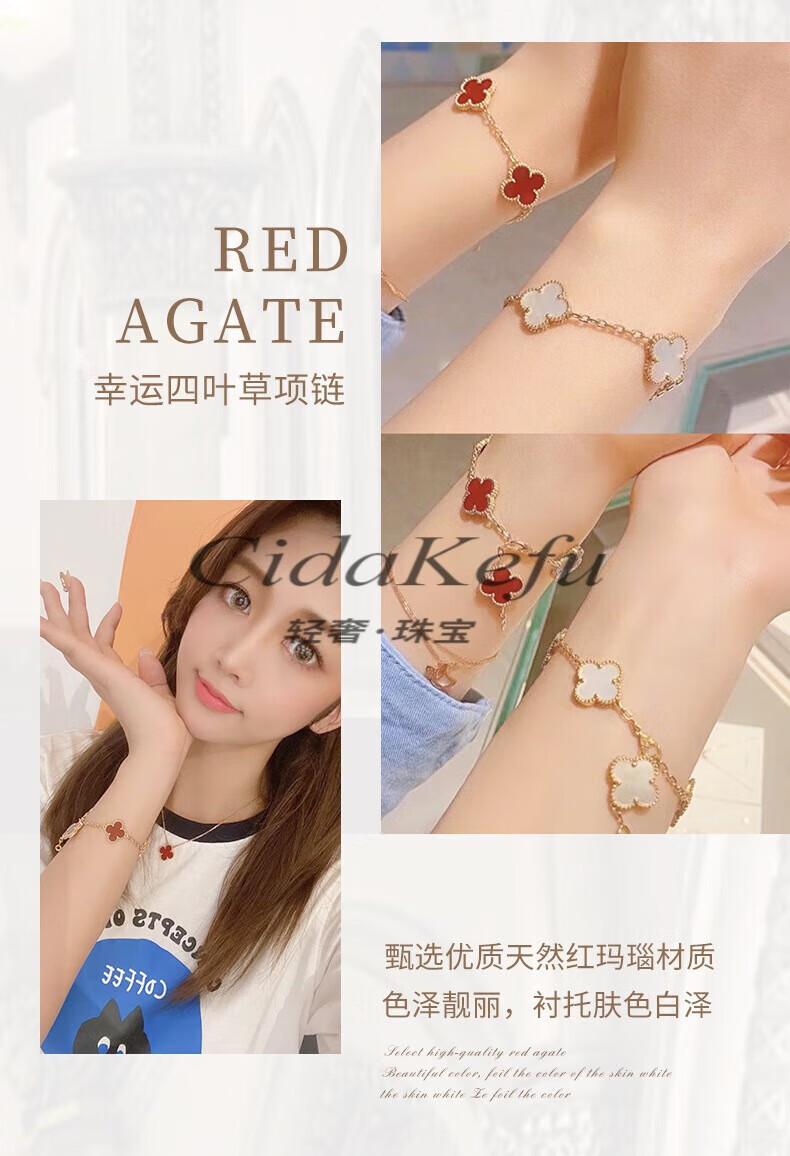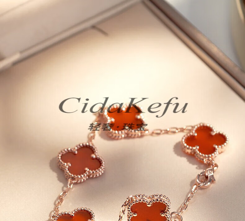 CidaKefu 18k gold four-leaf clover bracelet rose gold bracelet five-flower clover color gold bracelet Chinese Valentine's Day gift red agate bracelet rose gold large size 15mm