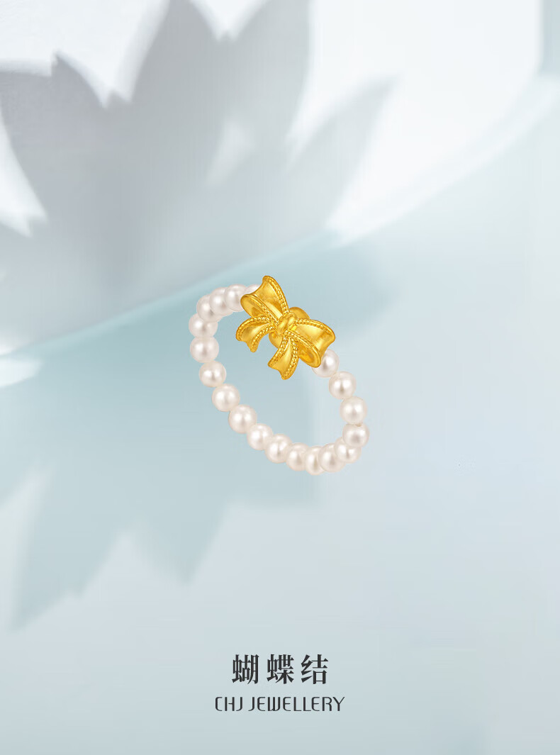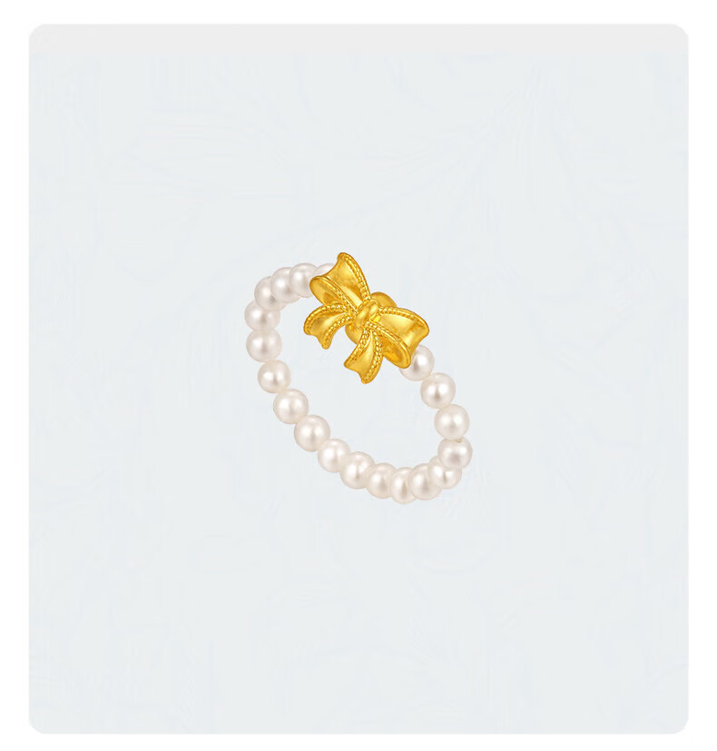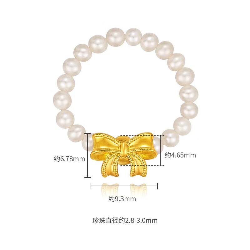 Chao Acer Bow Gold Pearl Ring Women's Pure Gold Freshwater Pearl Women's Ring Bracelet Birthday Gift Size 9-13 Elastic
