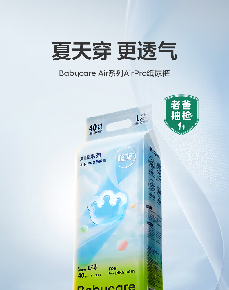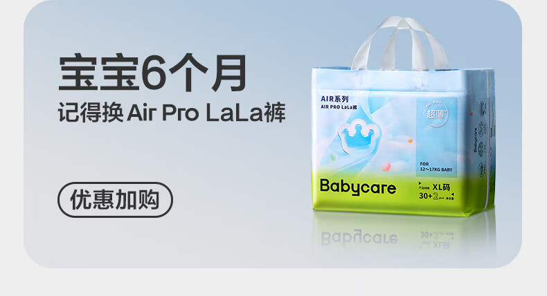 BabycareAir pro diaper summer ultra-thin breathable diaper baby diaper bbc baby newborn daily diaper pull-up pants XL size - 1 pack 4 pieces 12-17kg