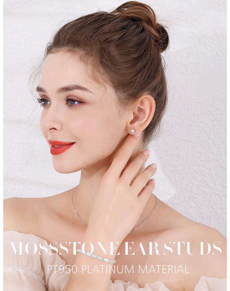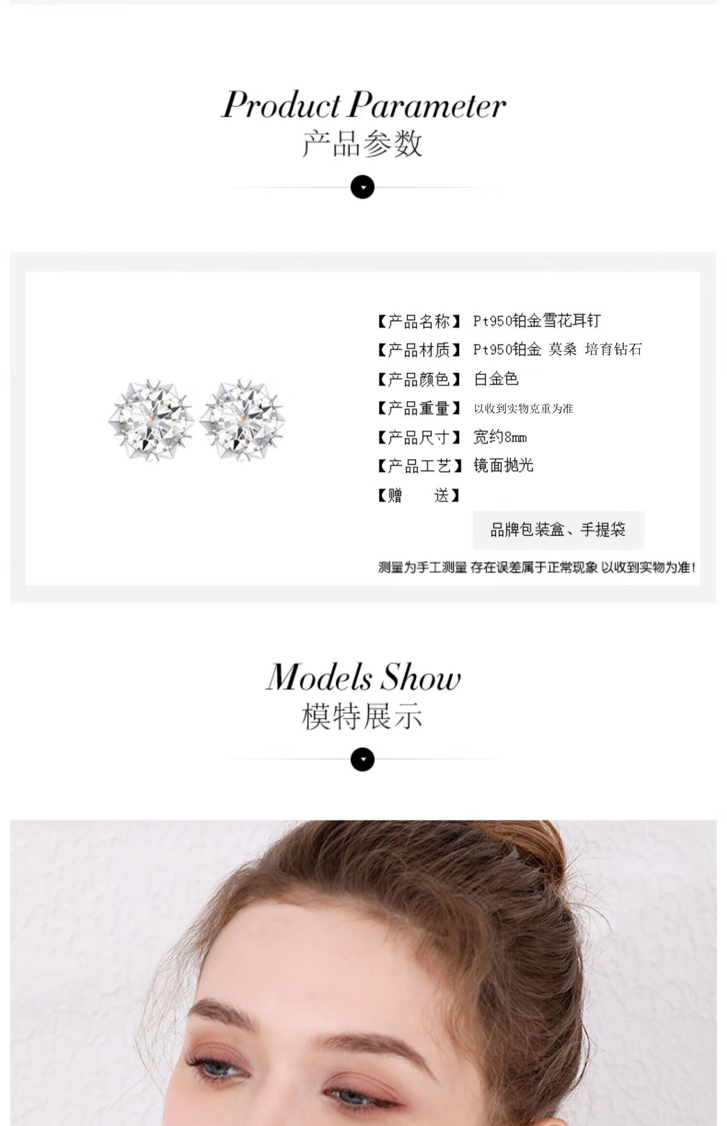 Grace Girl Ice and Snow Love Pt950 Platinum Diamond Snowflake Earrings for Women Moissanite Light Luxury Earrings Gift Pt950 Snowflake Earrings Pair + Local Warehouse