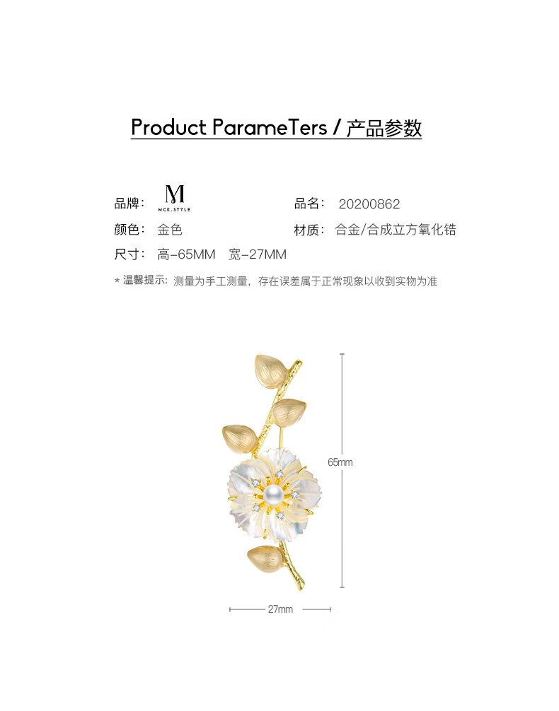 Mck imitation pearl shell flower brooch high-end women's pin accessories suit corsage Chinese Valentine's Day gift