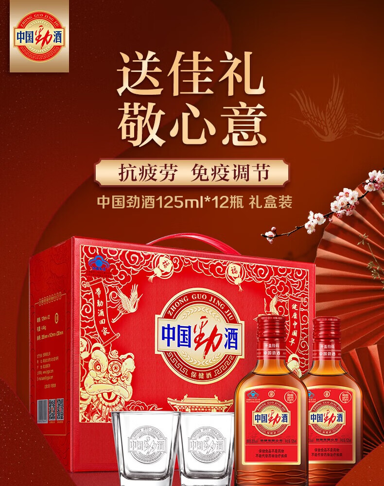 Jinpai Jinjiu 35% Chinese Jinjiu 125ml built-in glass gift box new product holiday gift gift 35% 125mL 12 bottles built-in gifts