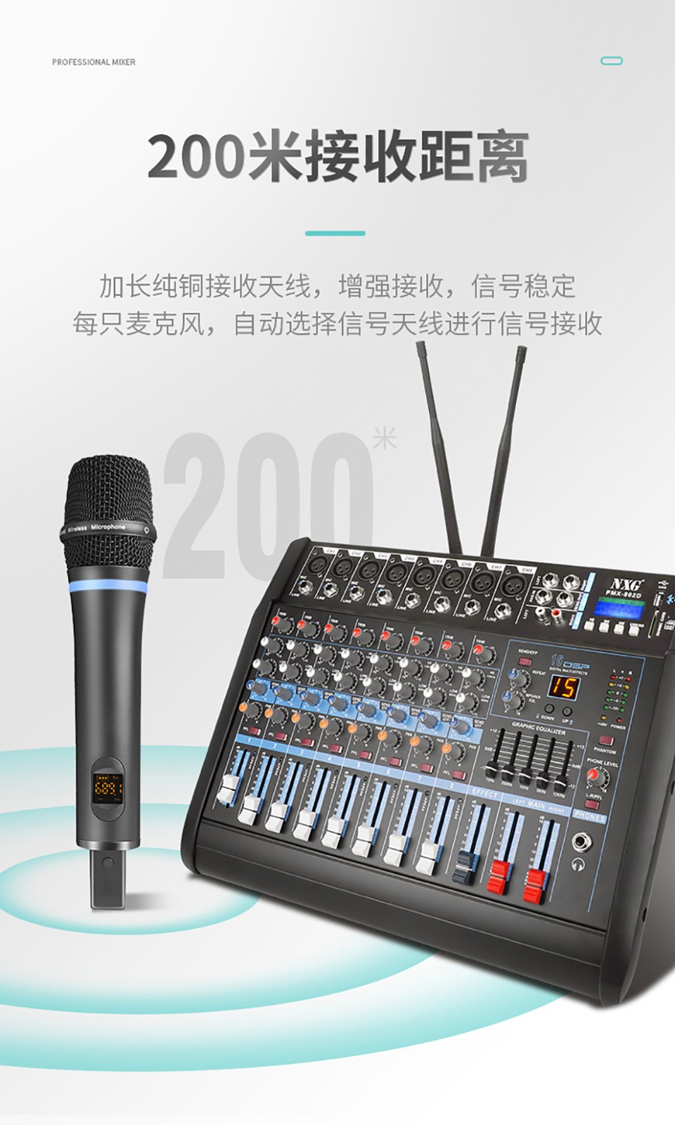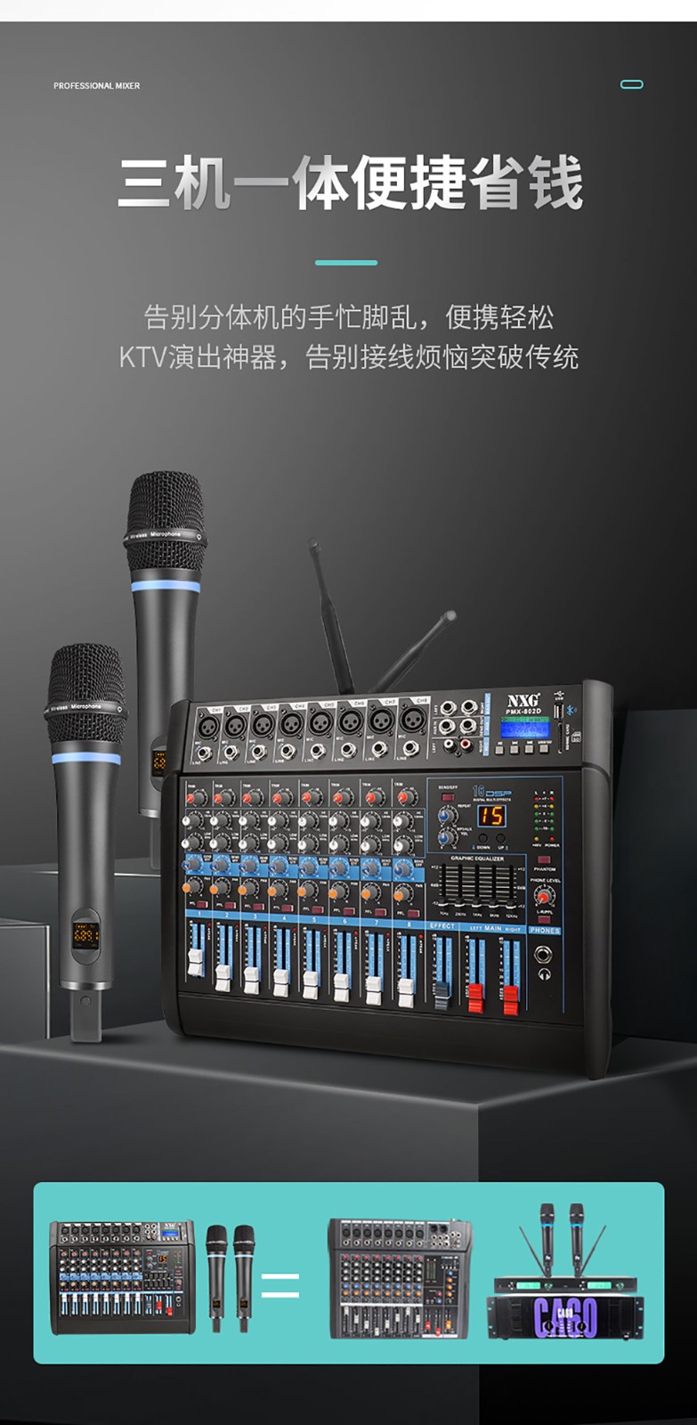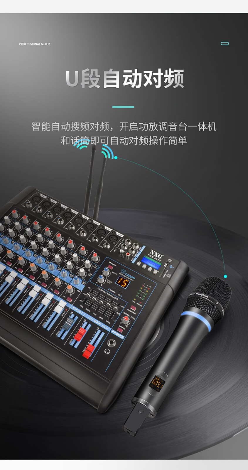 NXG professional mixer with power amplifier 8-channel high-power stage wedding conference KTV Bluetooth mixer microphone all-in-one with Bluetooth recording anti-howling wireless microphone one KP-612/12 inch top with 220 magnetic bass Single price