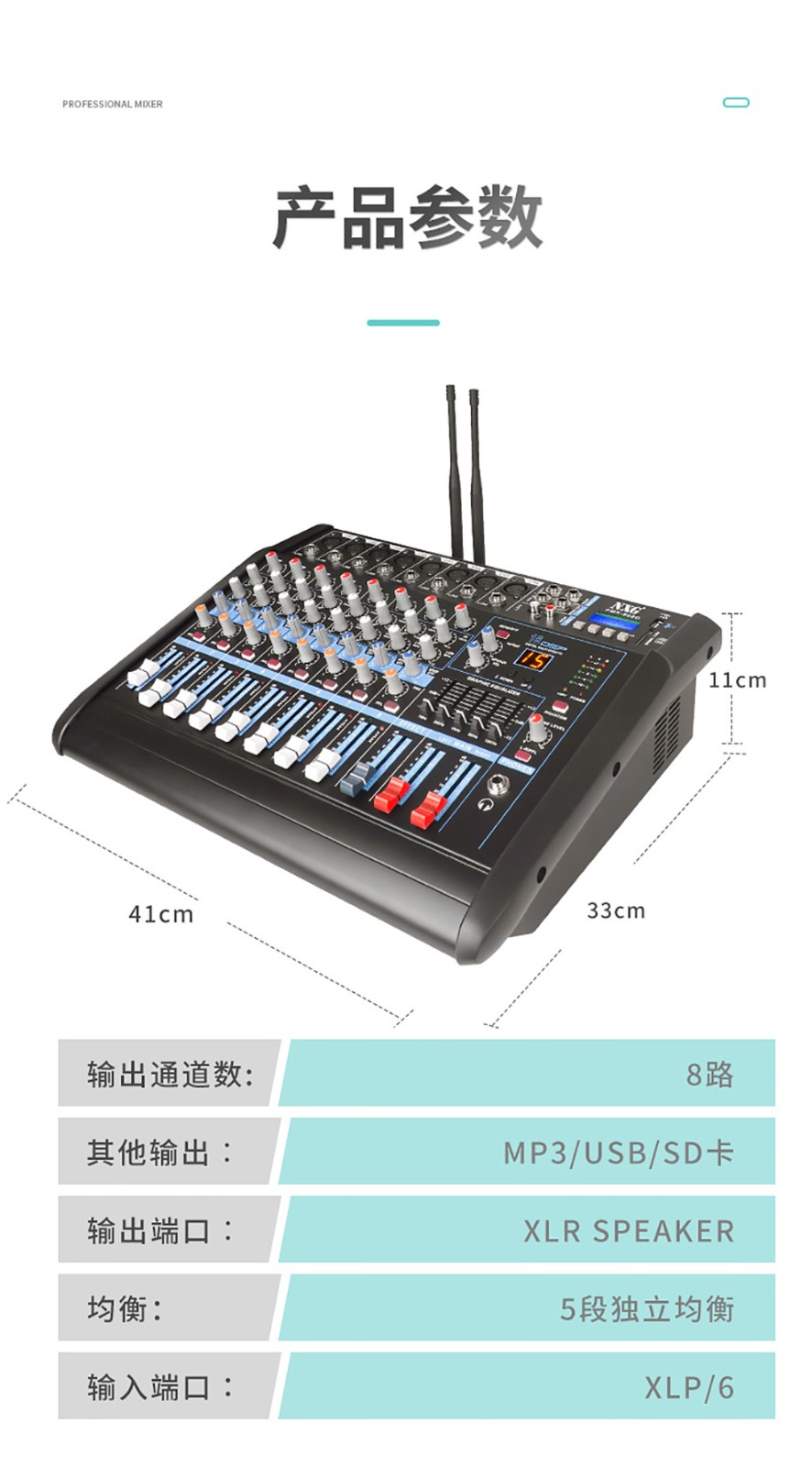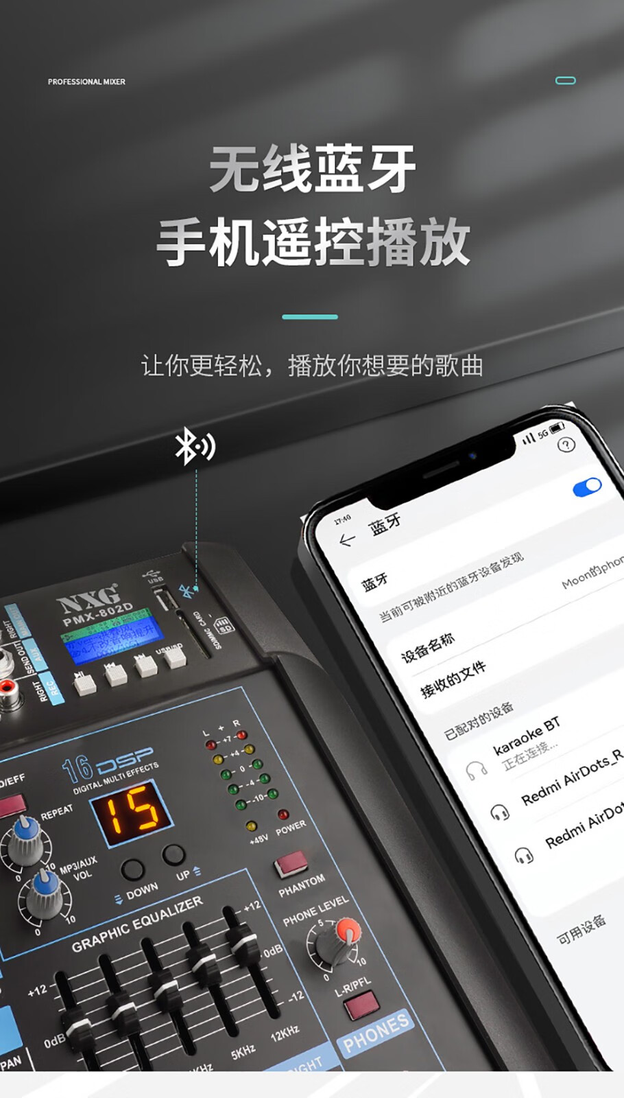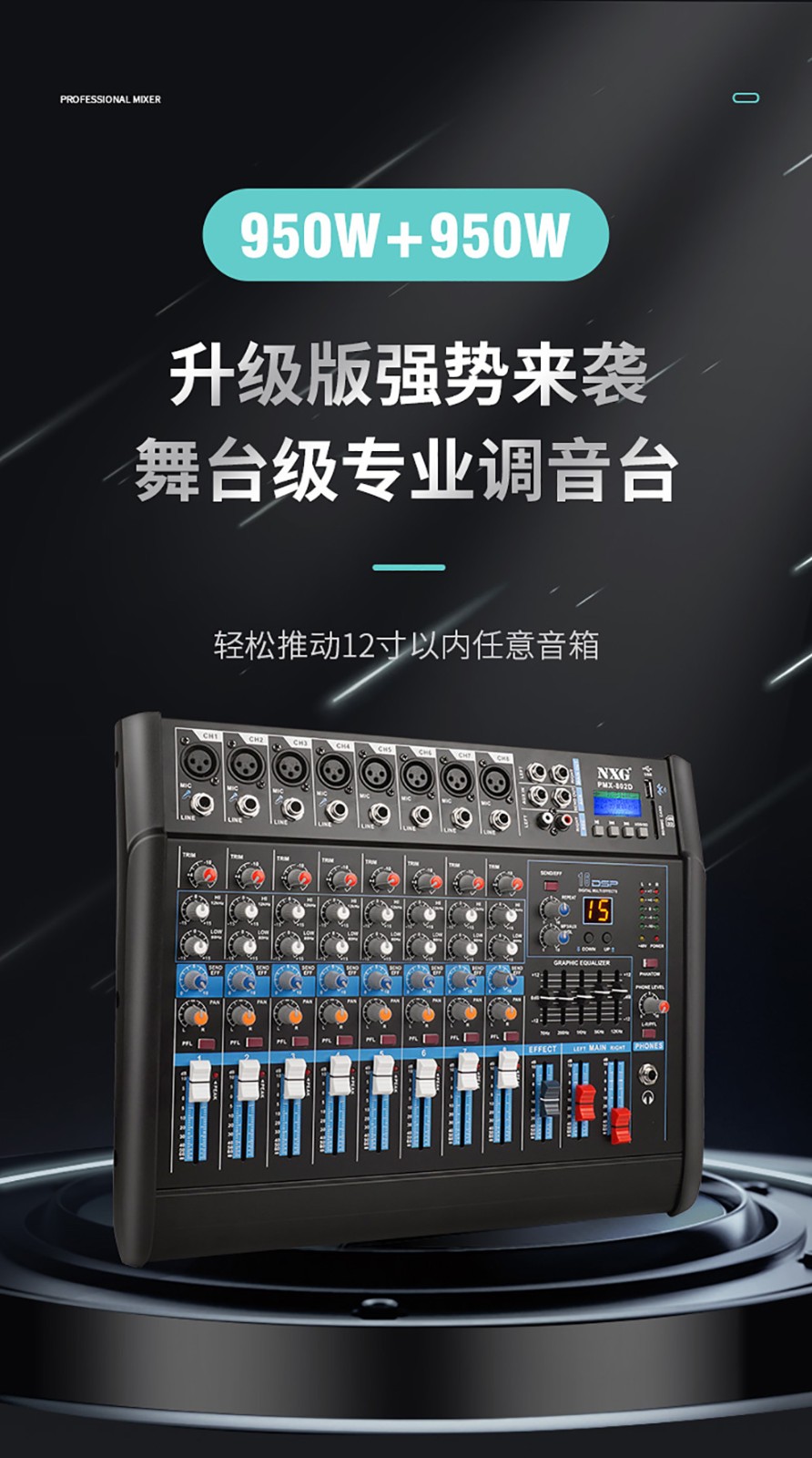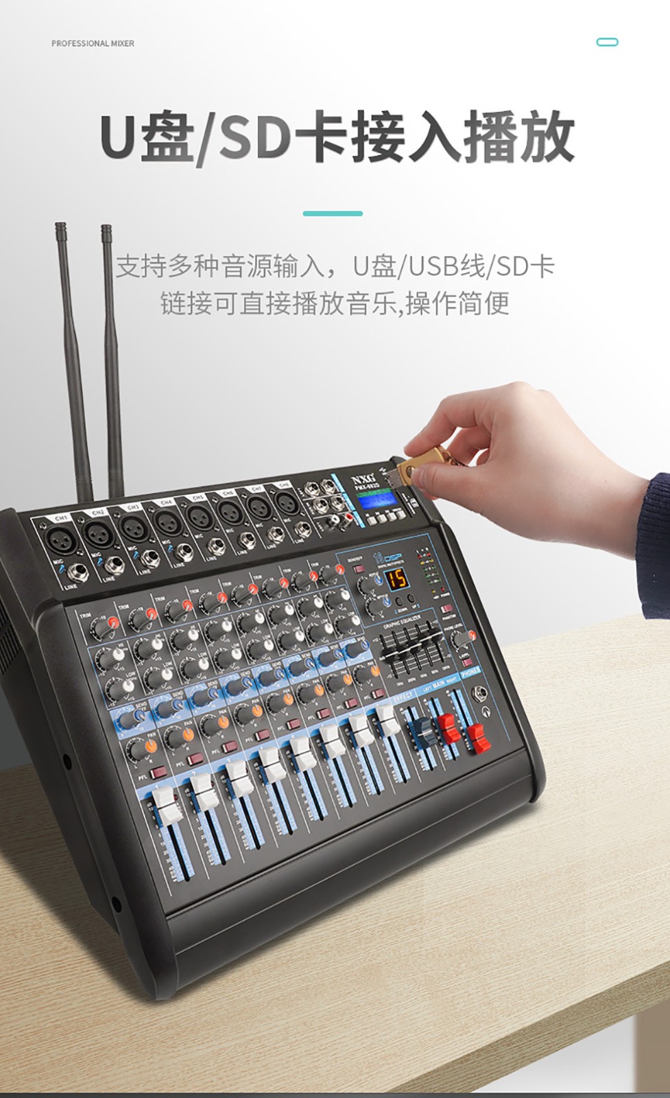 NXG professional mixer with power amplifier 8-channel high-power stage wedding conference KTV Bluetooth mixer microphone all-in-one with Bluetooth recording anti-howling wireless microphone one KP-612/12 inch top with 220 magnetic bass Single price