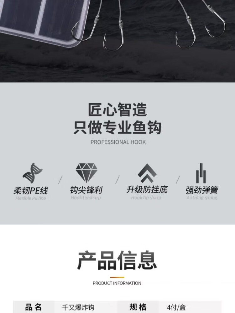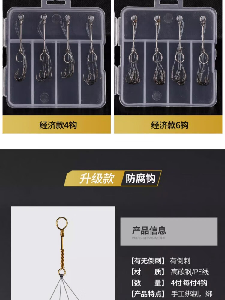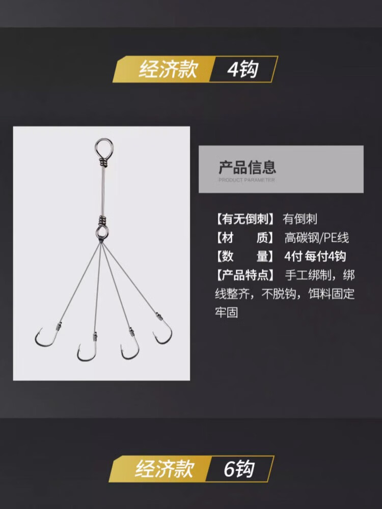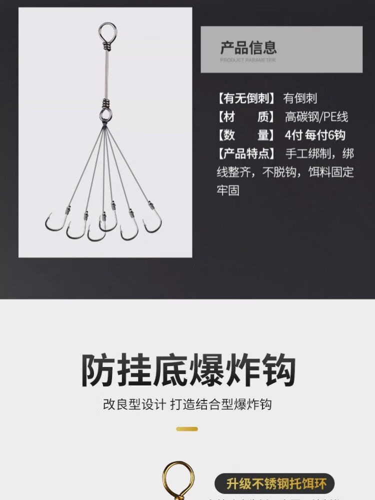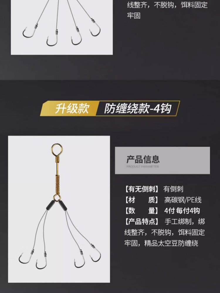 Shengmaru Chongqing Qianyou small explosive hook set with barbed crucian carp, sea pole hook, throwing pole hook, hand-tied fish hook, upgraded anti-winding 4 hooks, 4 sets, No. 1