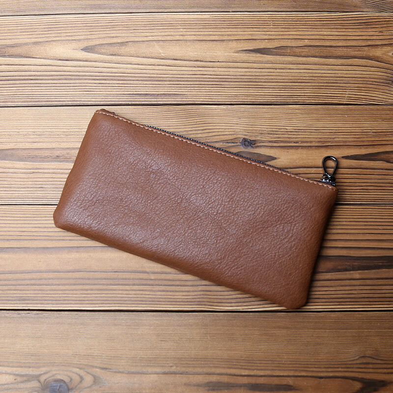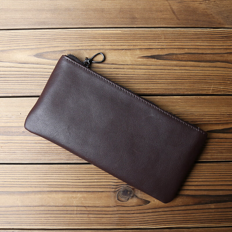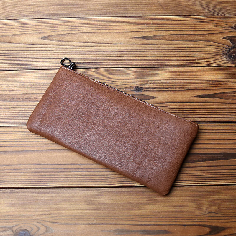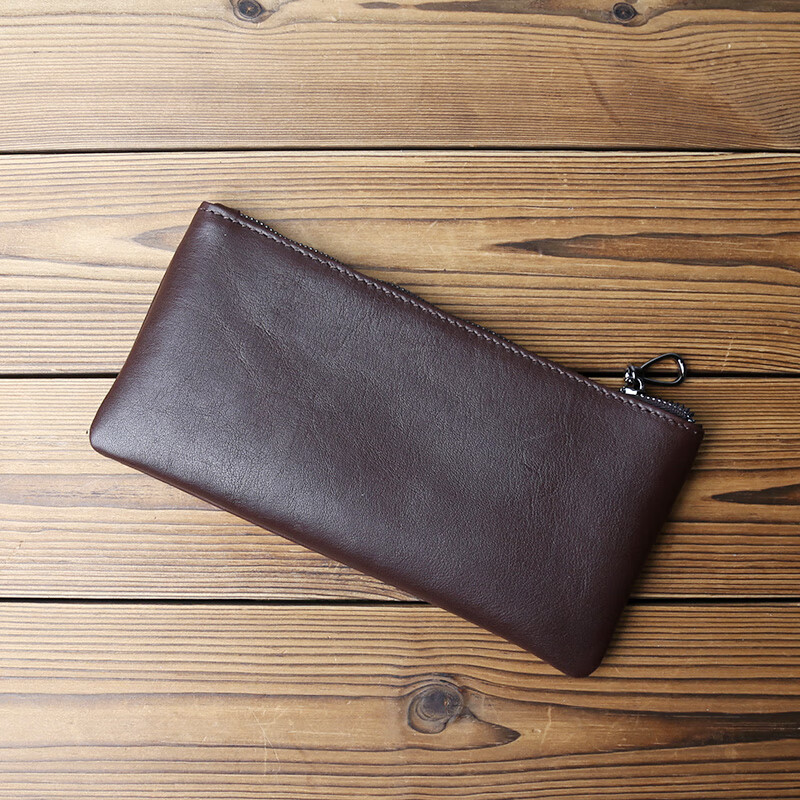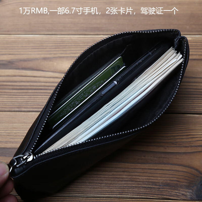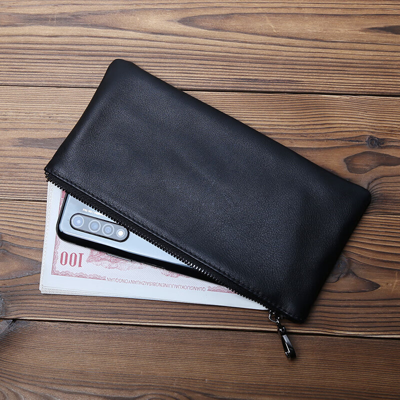 JLFGPJ New Men's Genuine Leather Long Zipper Wallet First Layer Cowhide Clutch Mobile Phone Bag Simple Women's Handbag Ultra Thin Black