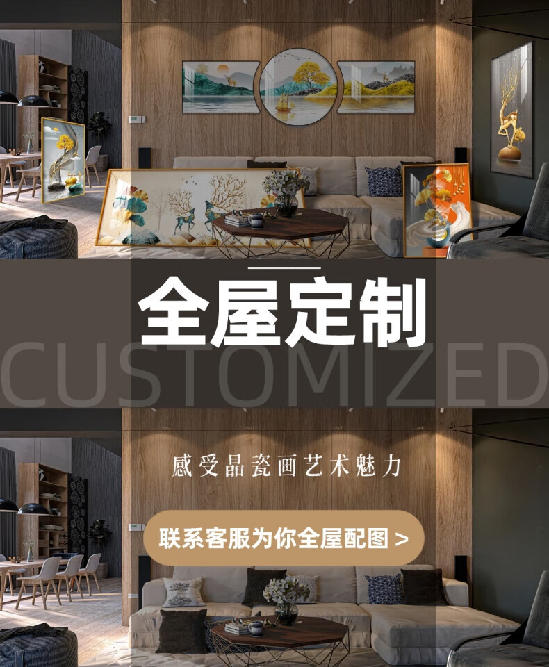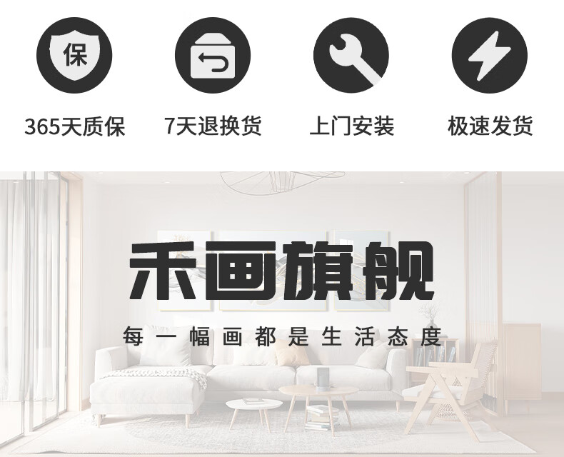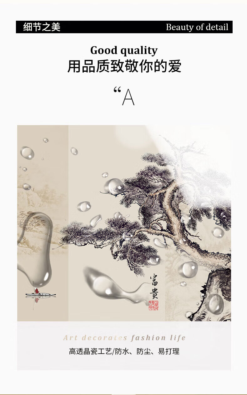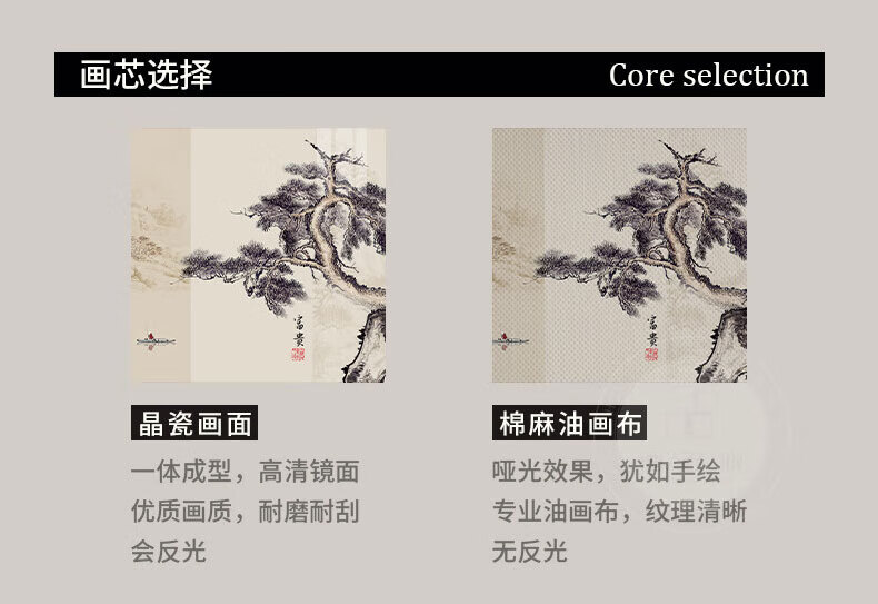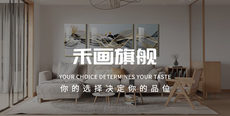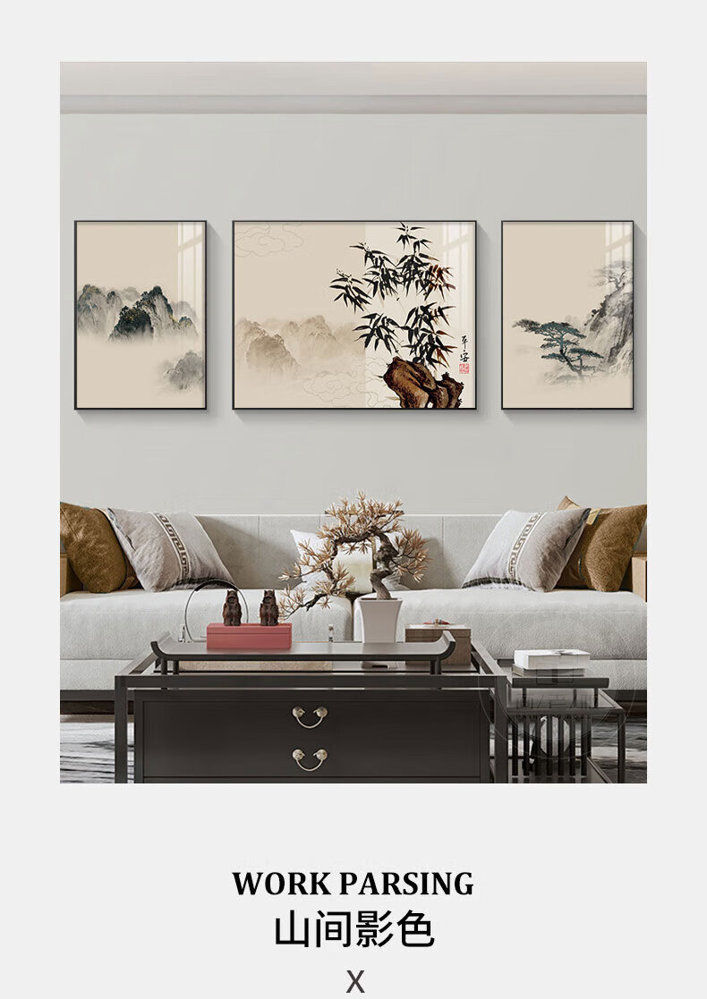 Hehua living room decorative painting ink Chinese painting hanging painting sofa background wall decorative painting triptych new Chinese style simple and atmospheric style welcoming pine-F 60*80*2+120*80 crystal porcelain + aluminum alloy frame