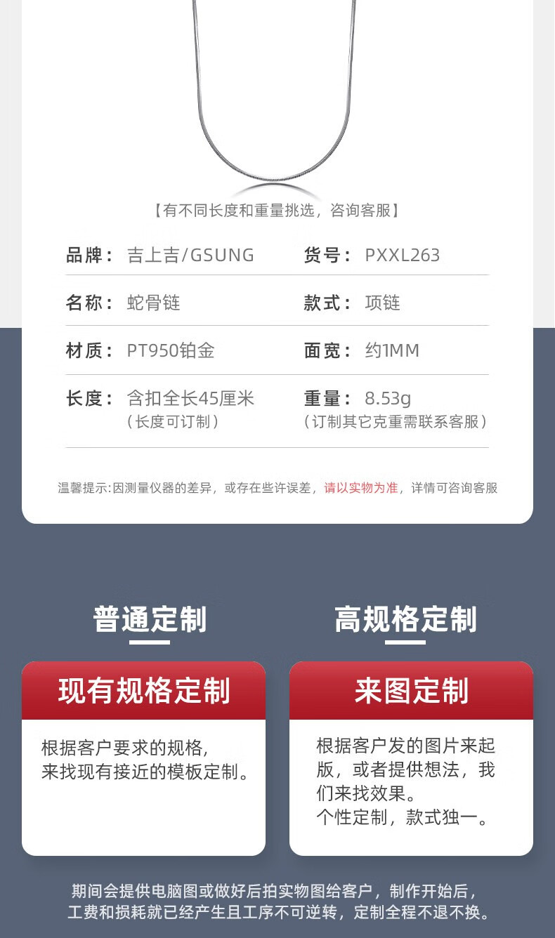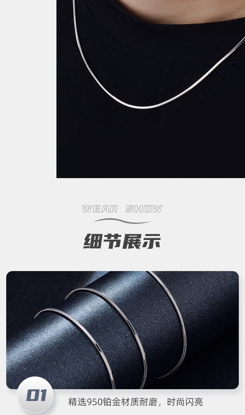 GsunG platinum necklace women's PT950 snake bone chain fashionable simple platinum necklace men's neck chain clavicle chain new style price by gram contact before shooting