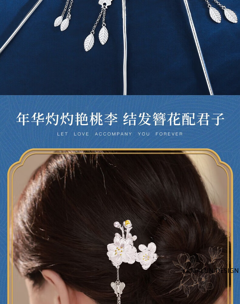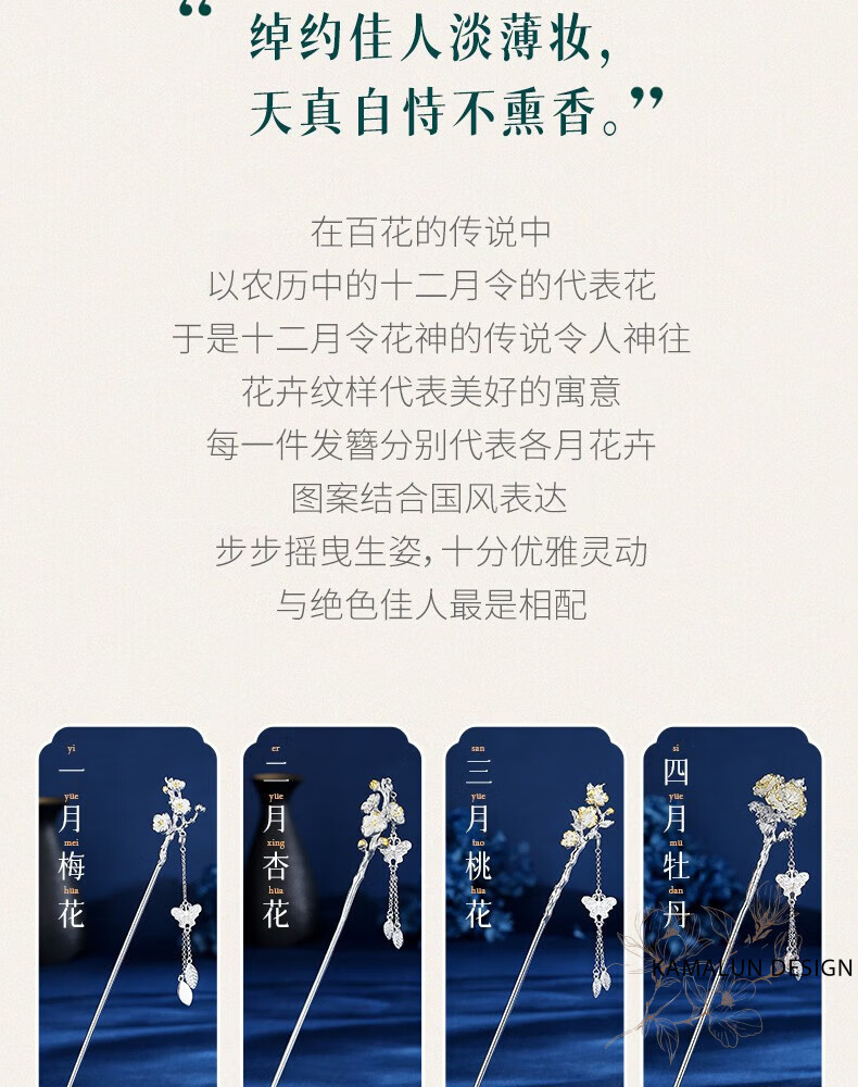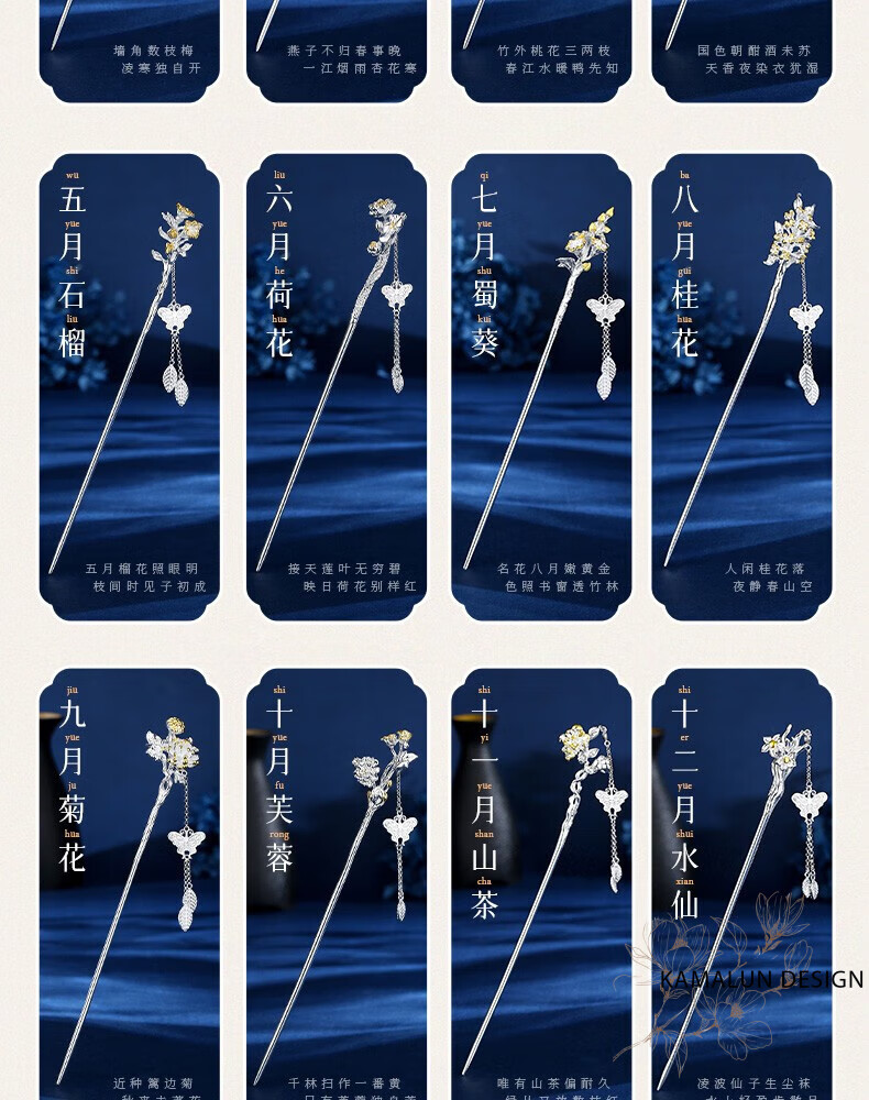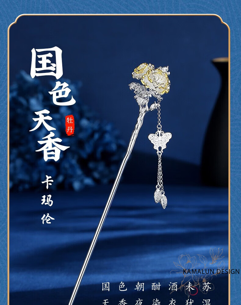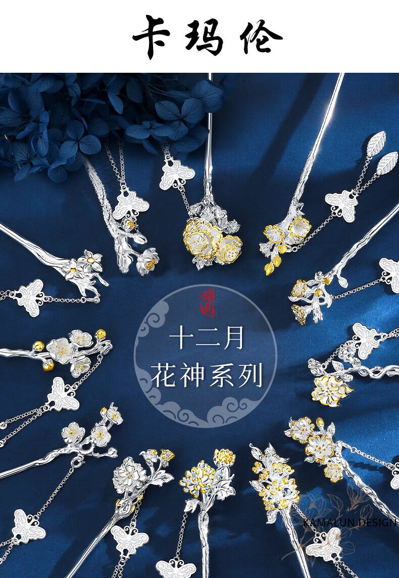 Kamalun (KAMALUN) Twelve Gods of Flowers Tassel Hairpin Ancient Style High-end Step Shake Hairpin Silver Hairpin Hanfu Headdress Elegant Updo Hair Accessory April Peony Eternal Love + Brand Gift Box
