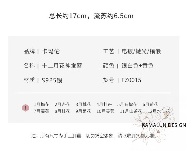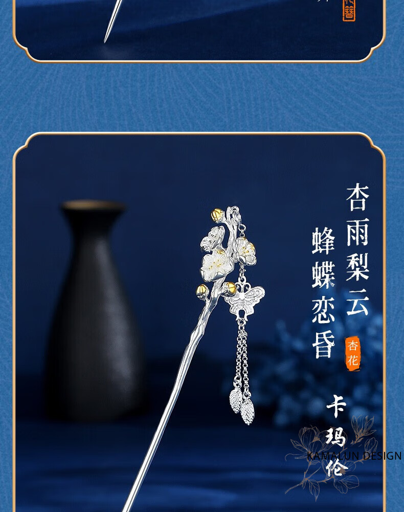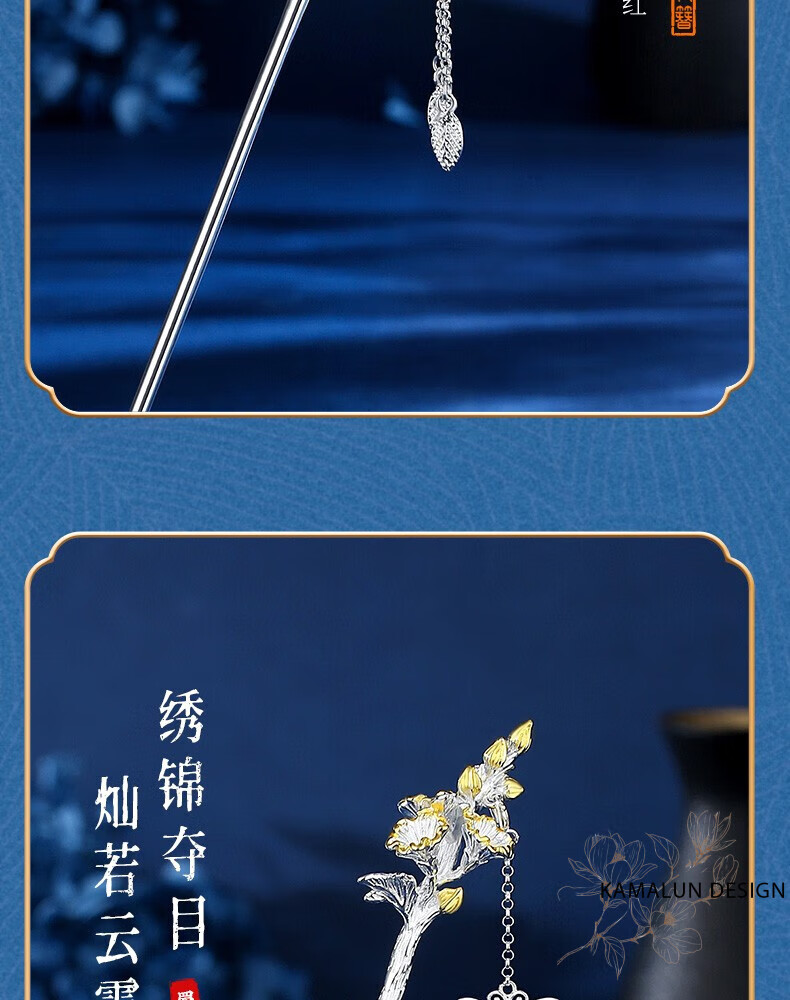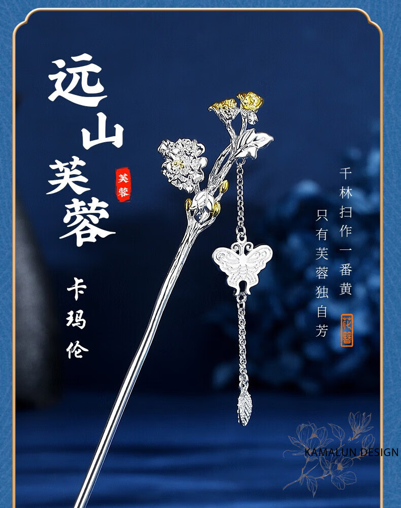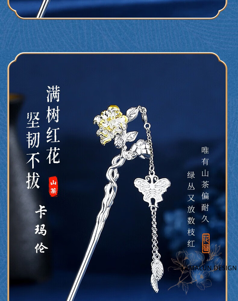 Kamalun (KAMALUN) Twelve Gods of Flowers Tassel Hairpin Ancient Style High-end Step Shake Hairpin Silver Hairpin Hanfu Headdress Elegant Updo Hair Accessory April Peony Eternal Love + Brand Gift Box