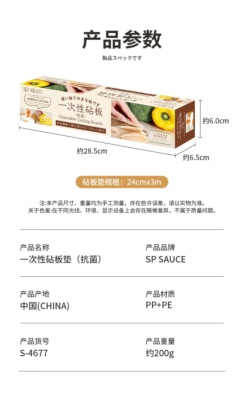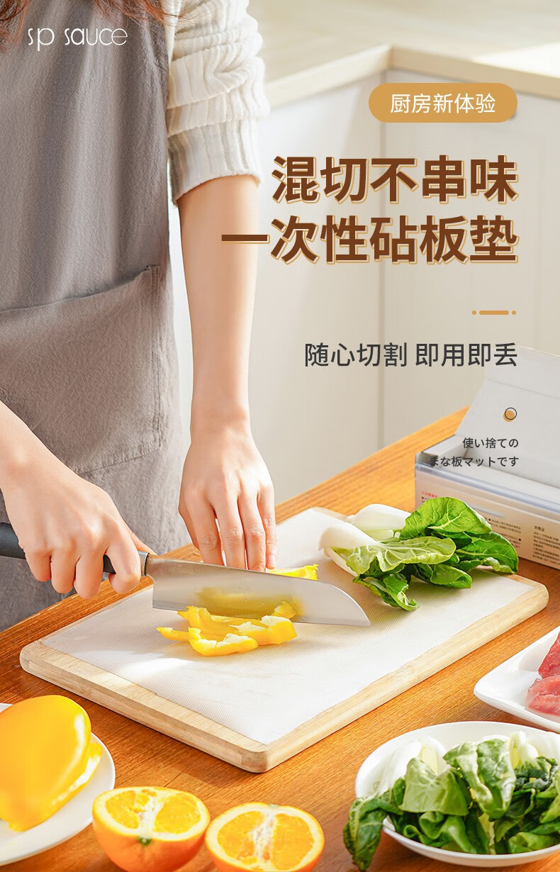 SP SAUCE Japanese disposable chopping board mat antibacterial home kitchen meat cutting board food cutting chopping board anti-slip sticky paper 3 meters antibacterial disposable chopping board-single box