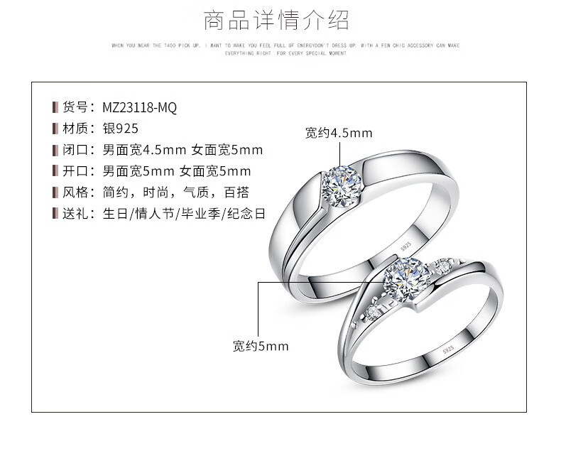 MZMZ Eternal Love Couple Ring PT950 Platinum Adjustable Luxury Wedding Ring Valentine's Day Birthday Gift Couple Ring Exquisite Gift Box