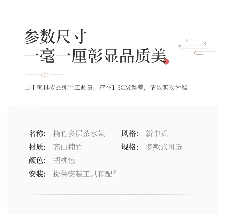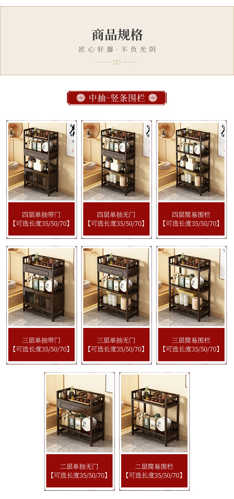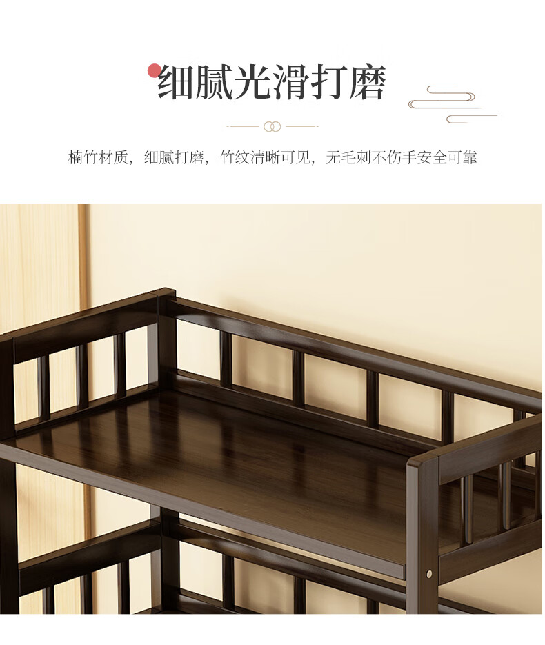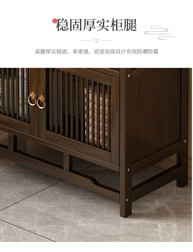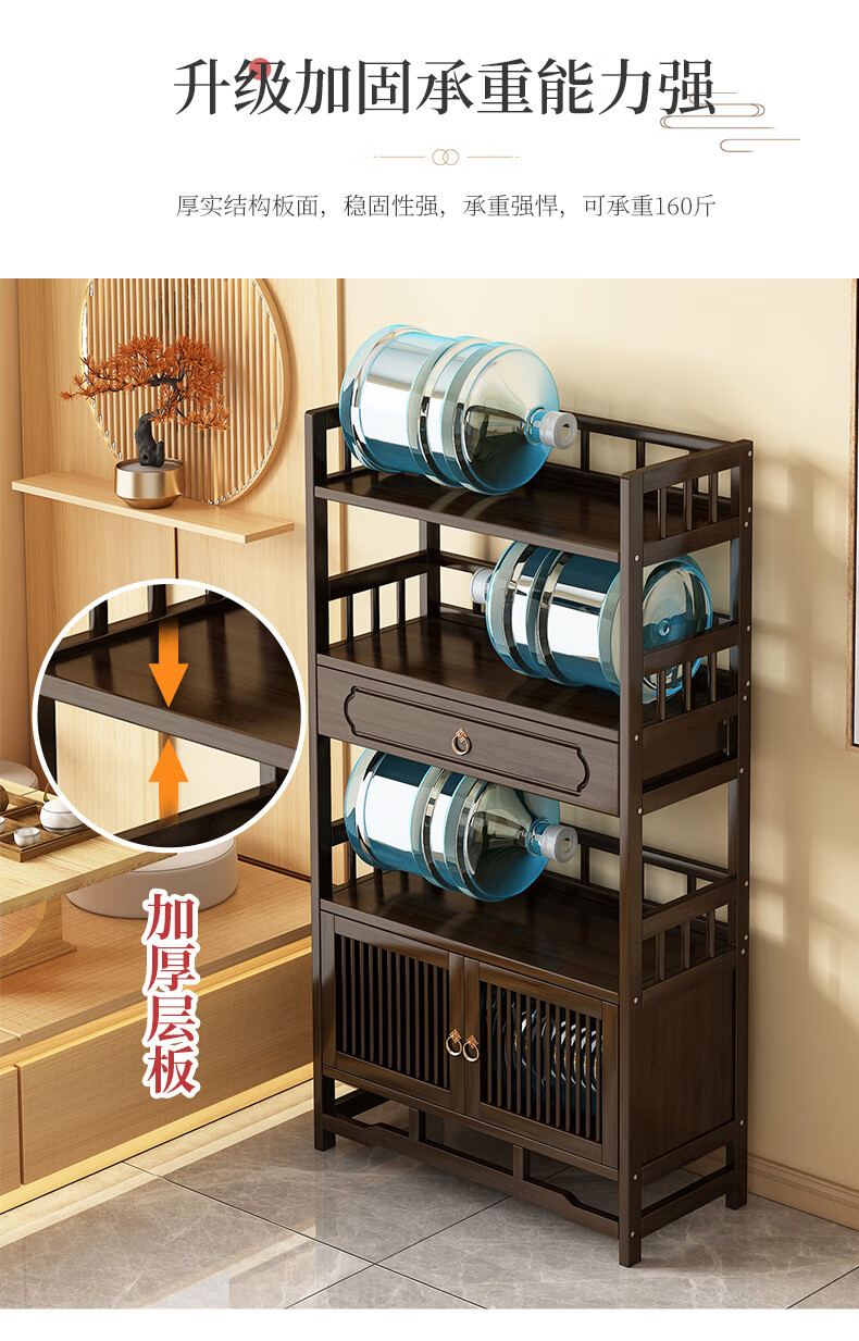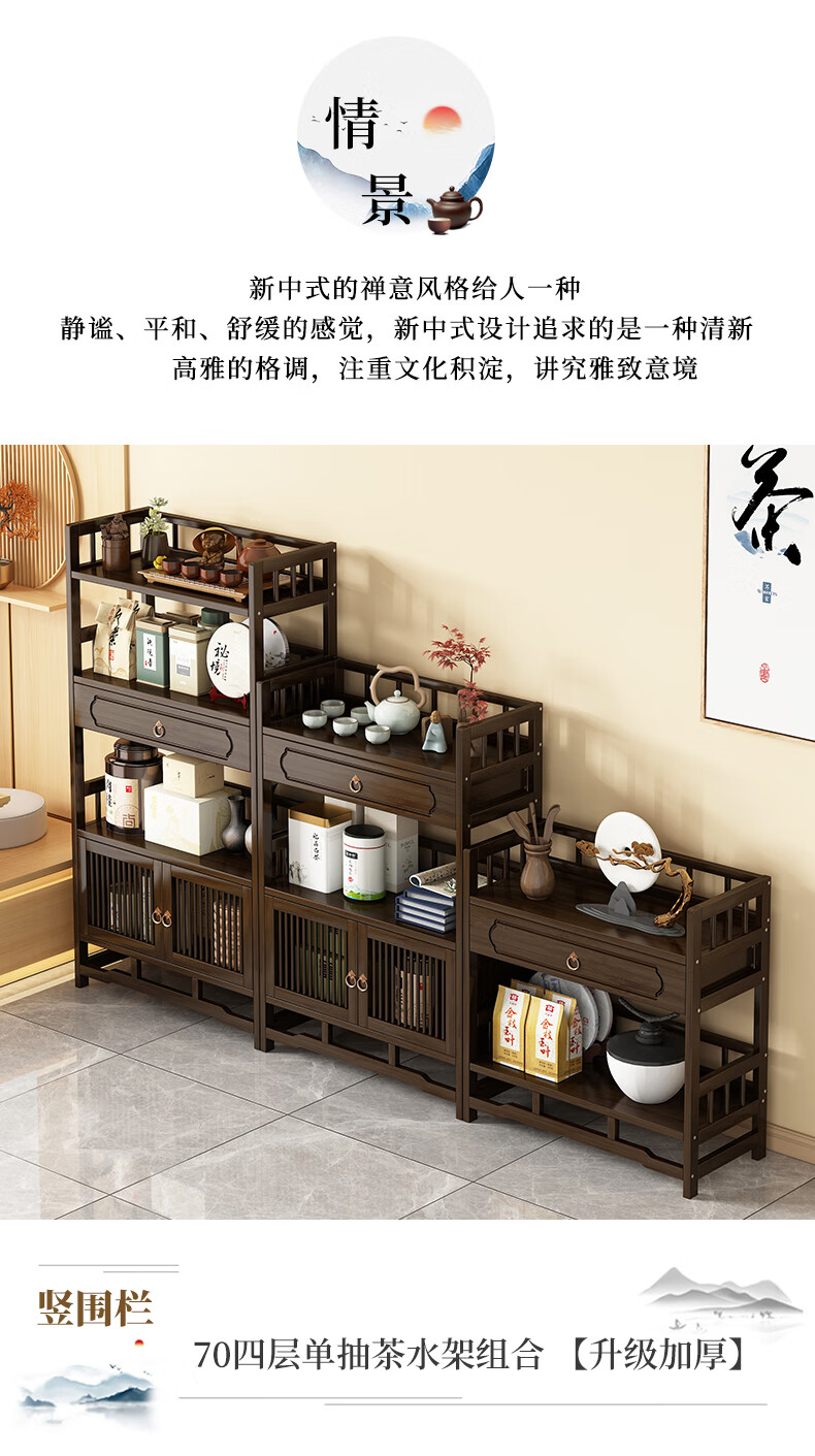 Qiao Tongjiang new Chinese style solid wood ancient rack ornaments tea rack storage rack Duobao Pavilion display cabinet tea set tea cup storage shelf walnut color three-layer middle draw with door 70 length reinforcement