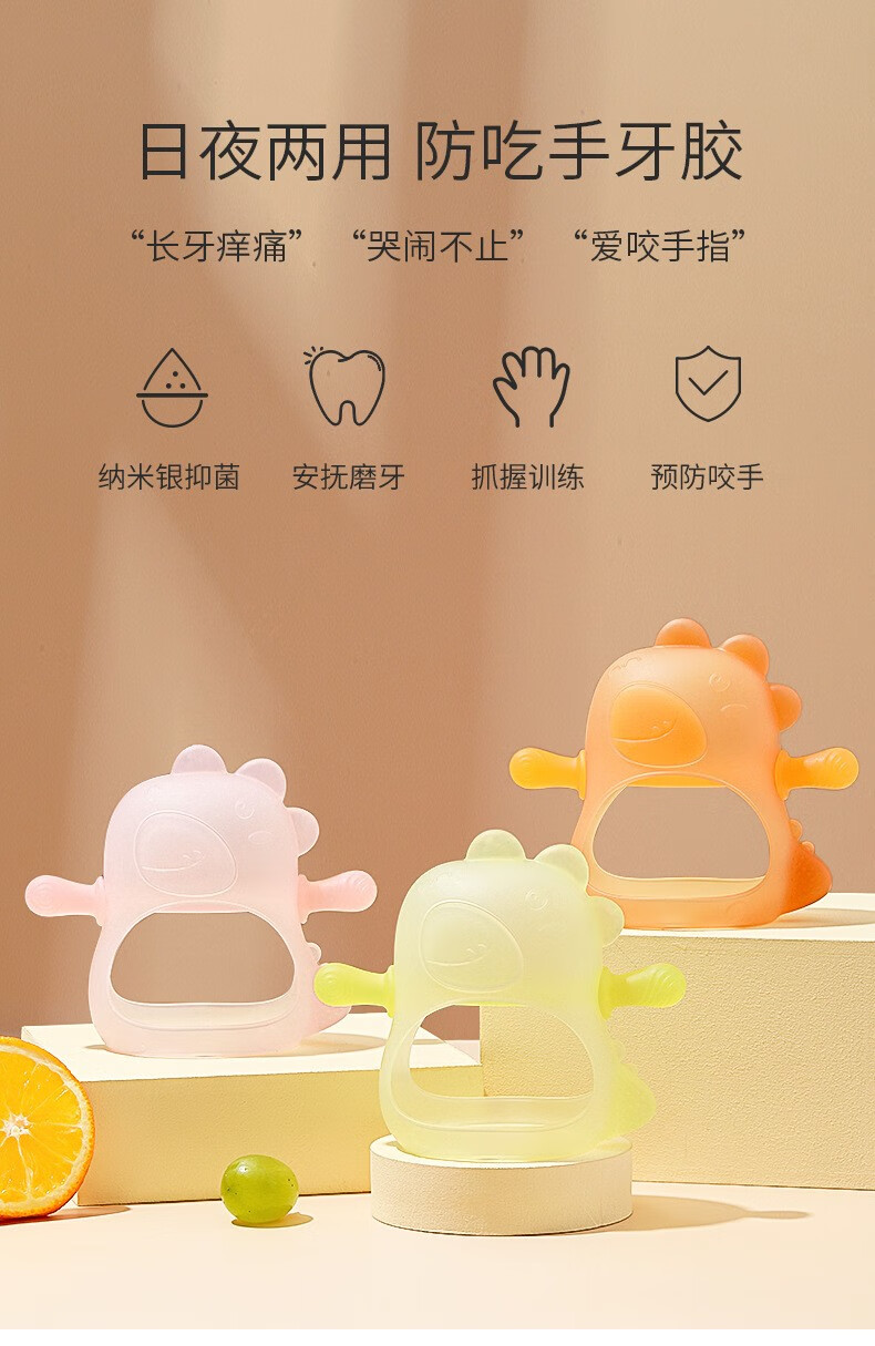 Baby elephant baby soothing molar stick, anti-eating hand artifact, chewable teether, chewable oral pleasure period 0-1 years old, Will powder (nano silver) 0-6 months, 1 pack