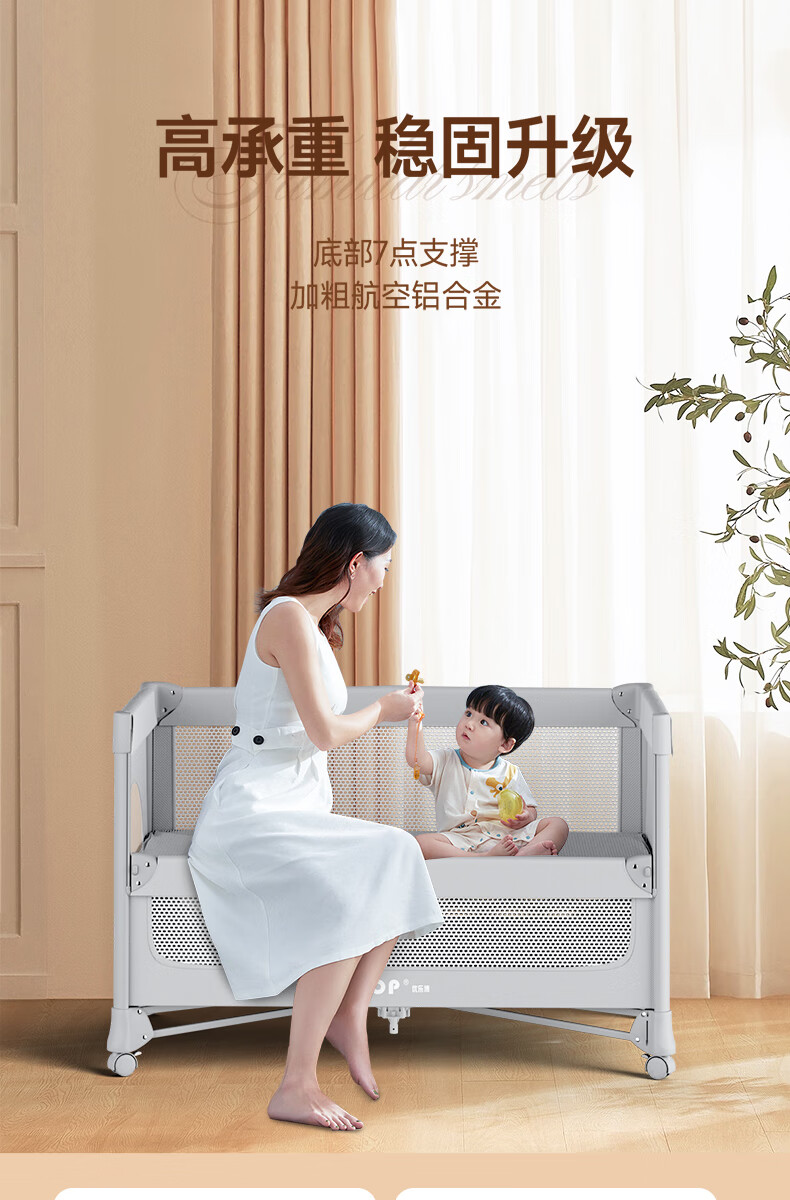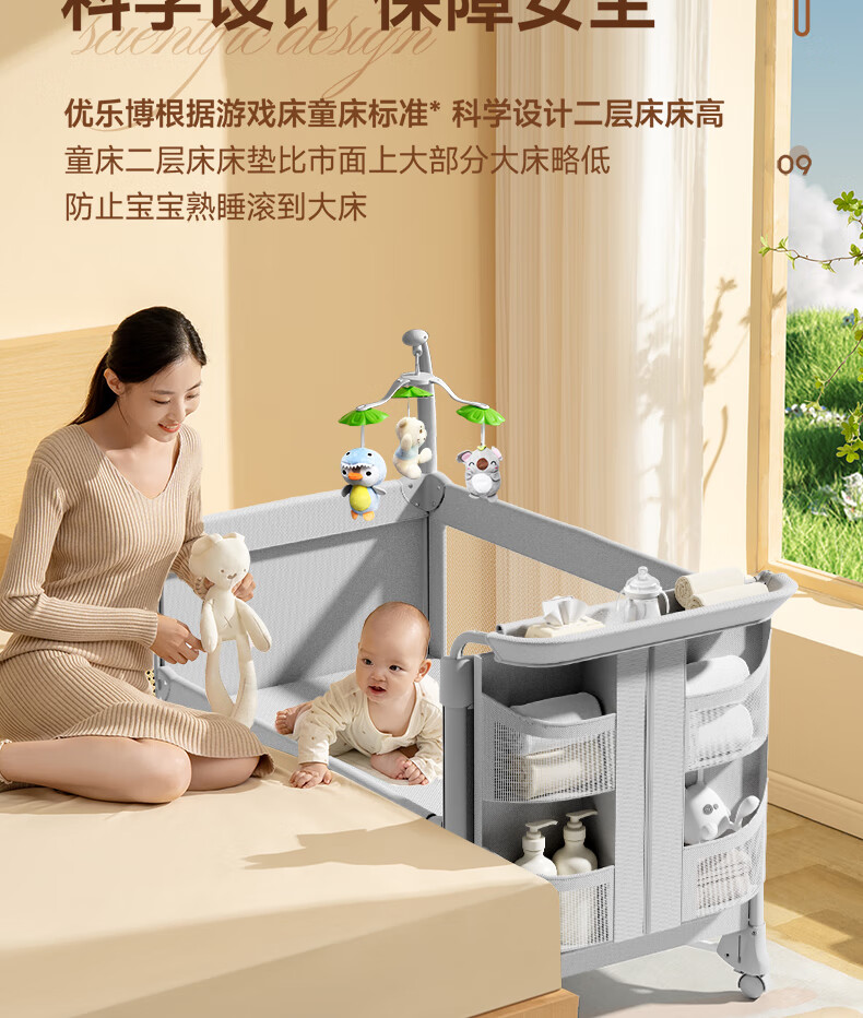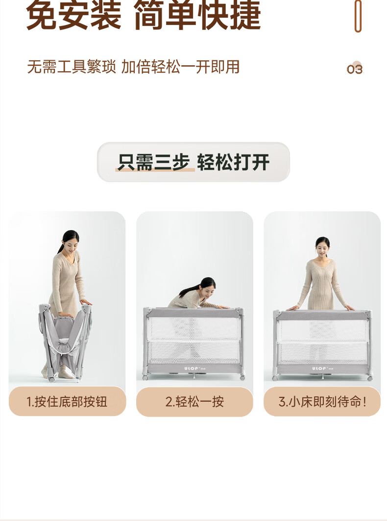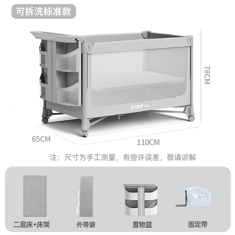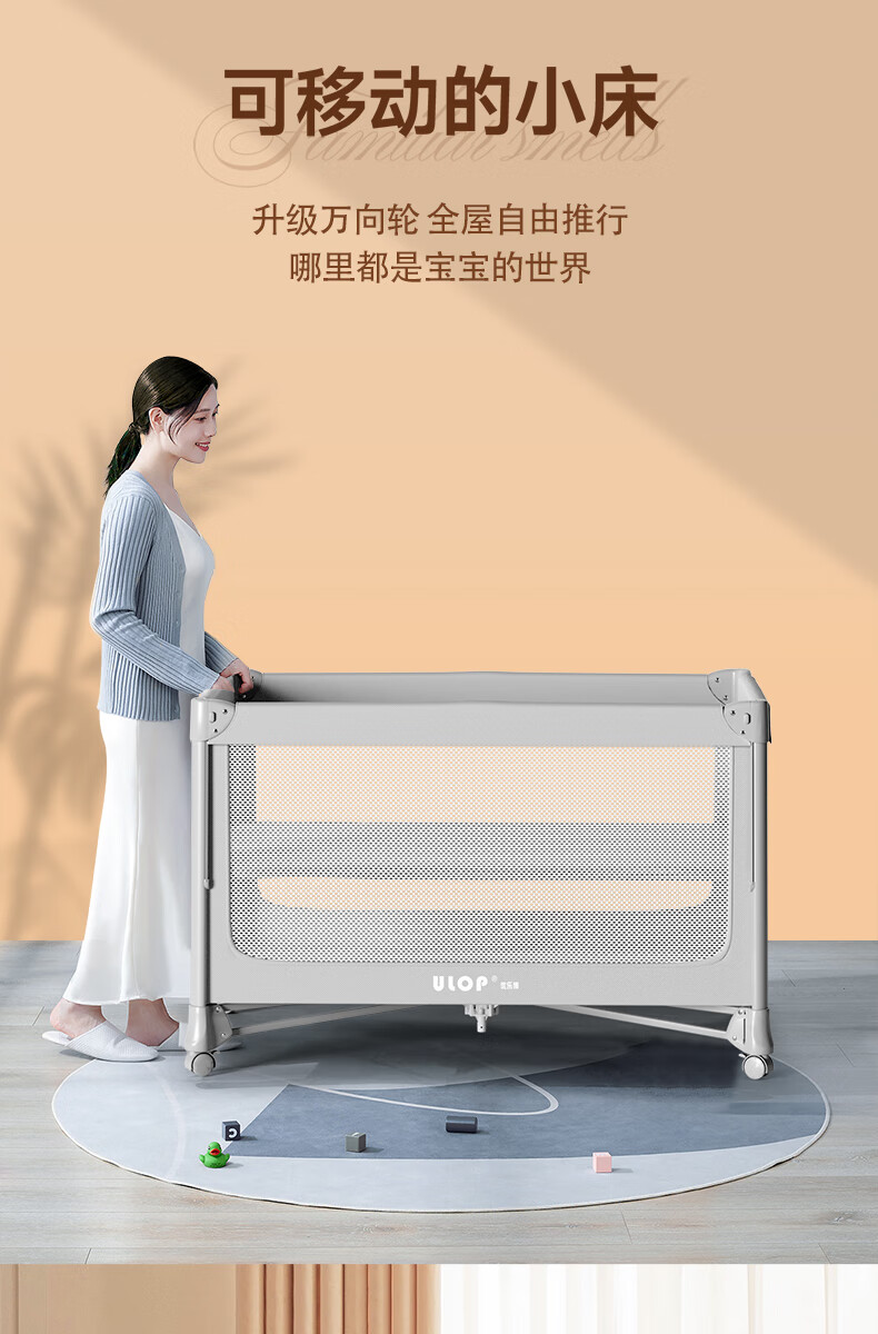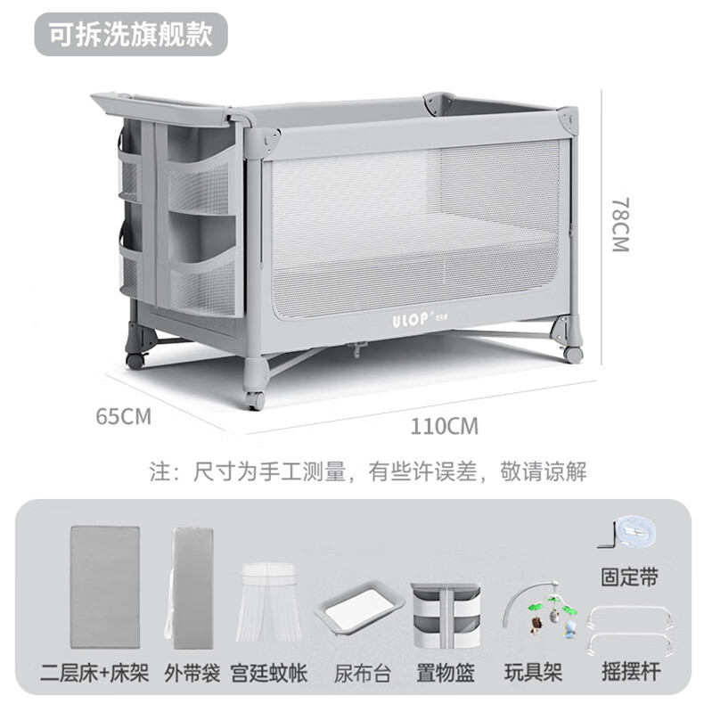ULOP one-click folding crib multi-functional bed removable splicing baby bed 0-3 years old newborn baby rocking bed cradle crib-removable and washable flagship model