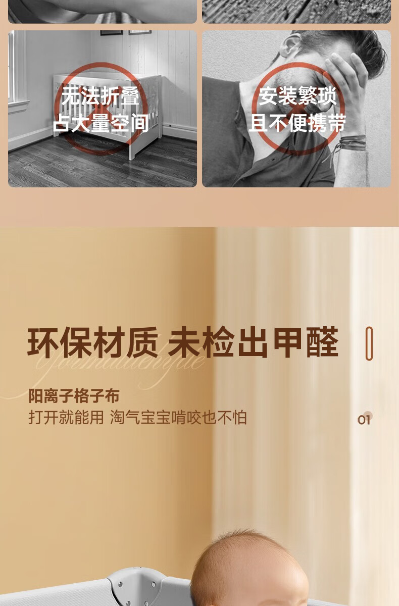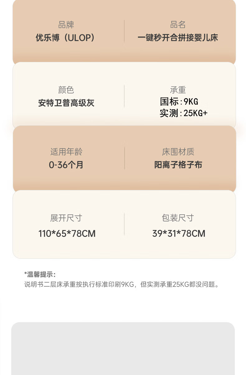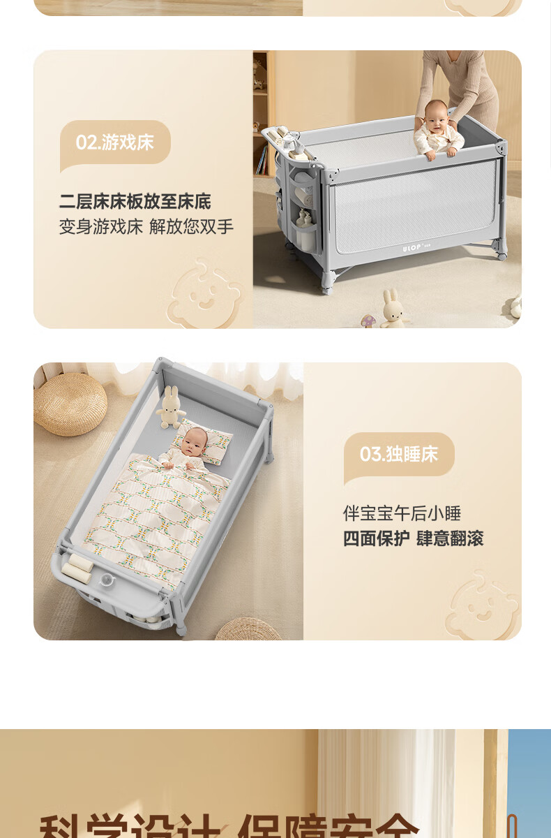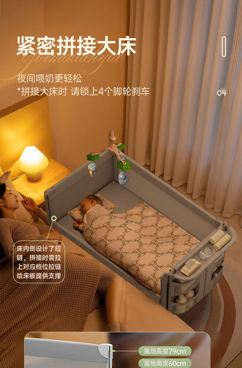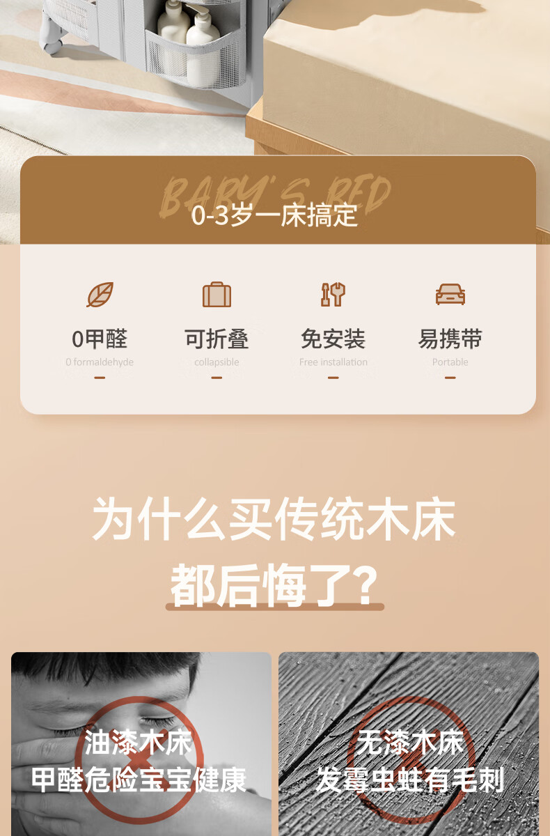 ULOP one-click folding crib multi-functional bed removable splicing baby bed 0-3 years old newborn baby rocking bed cradle crib-removable and washable flagship model