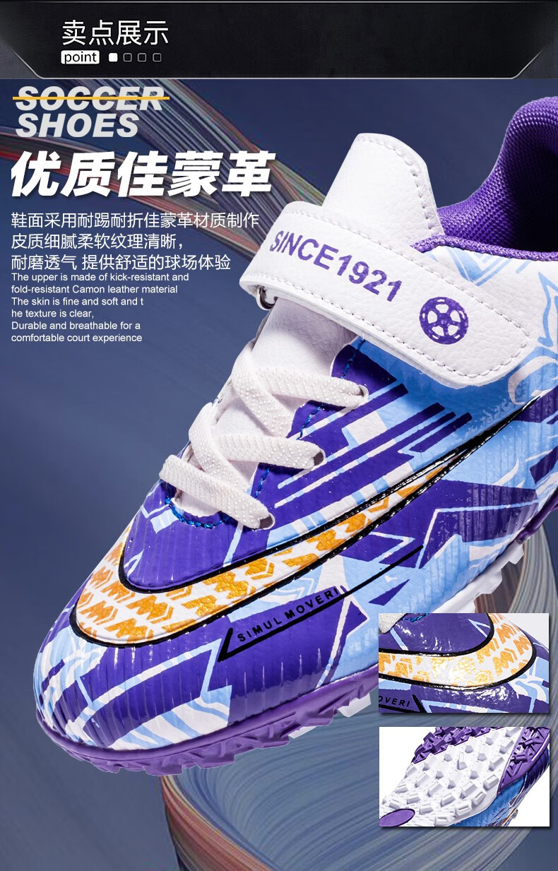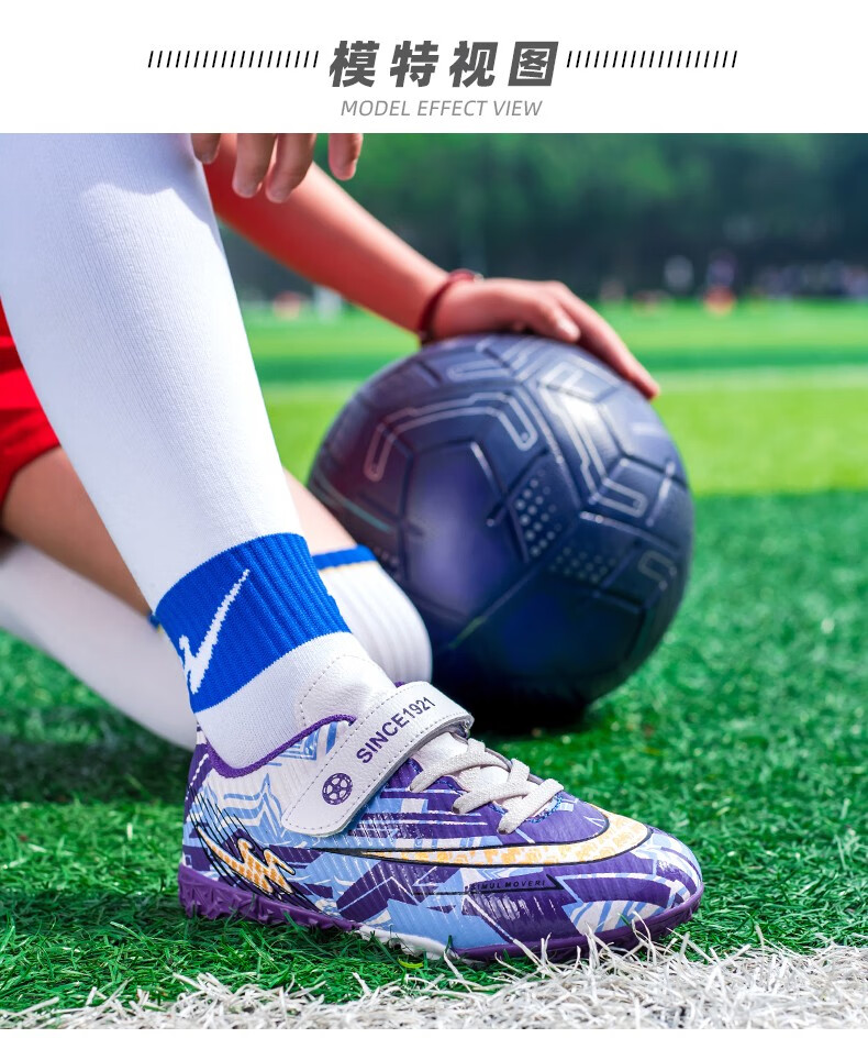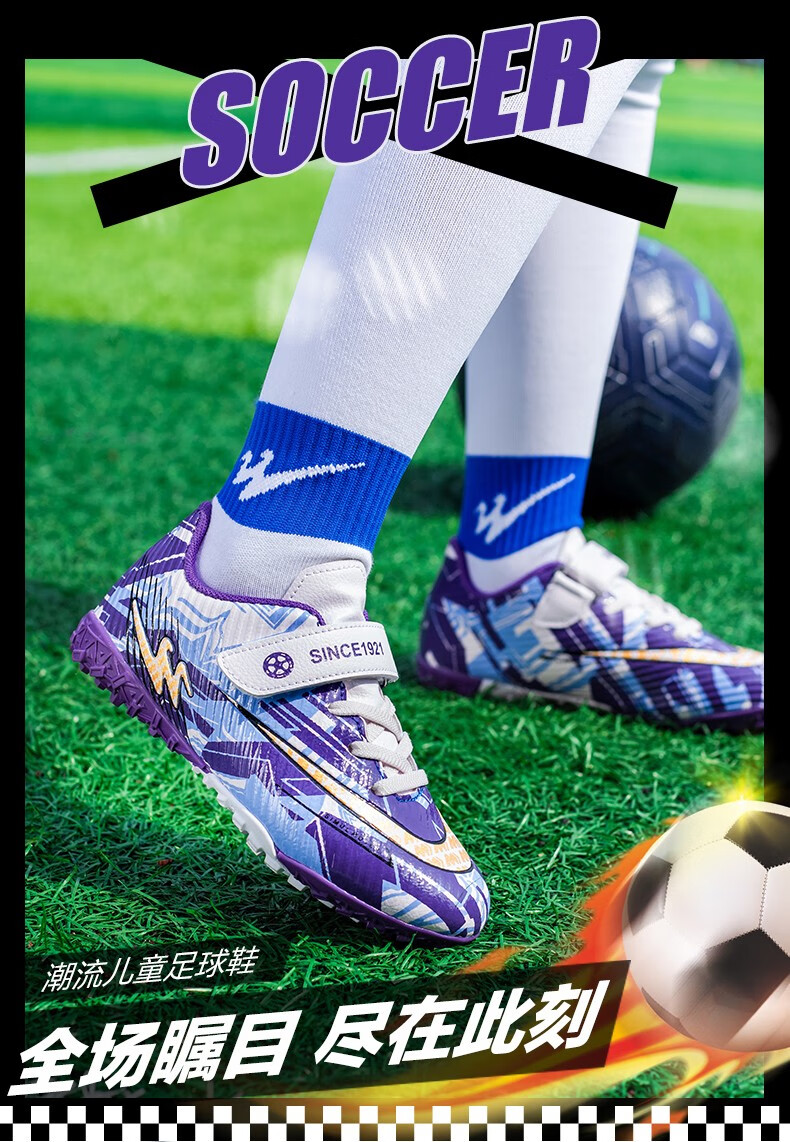 双星八特儿童足球鞋碎钉男童女童6-12岁新款运动鞋青少年中小孩子学生球鞋 紫金 30