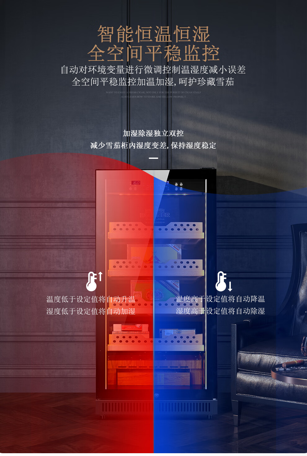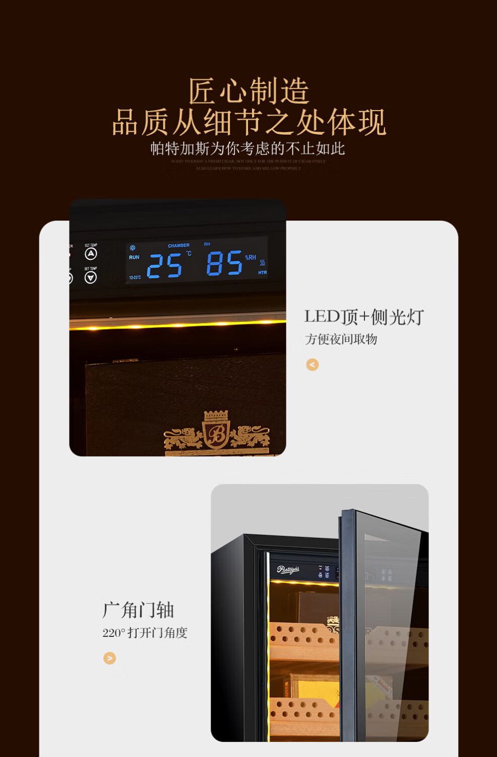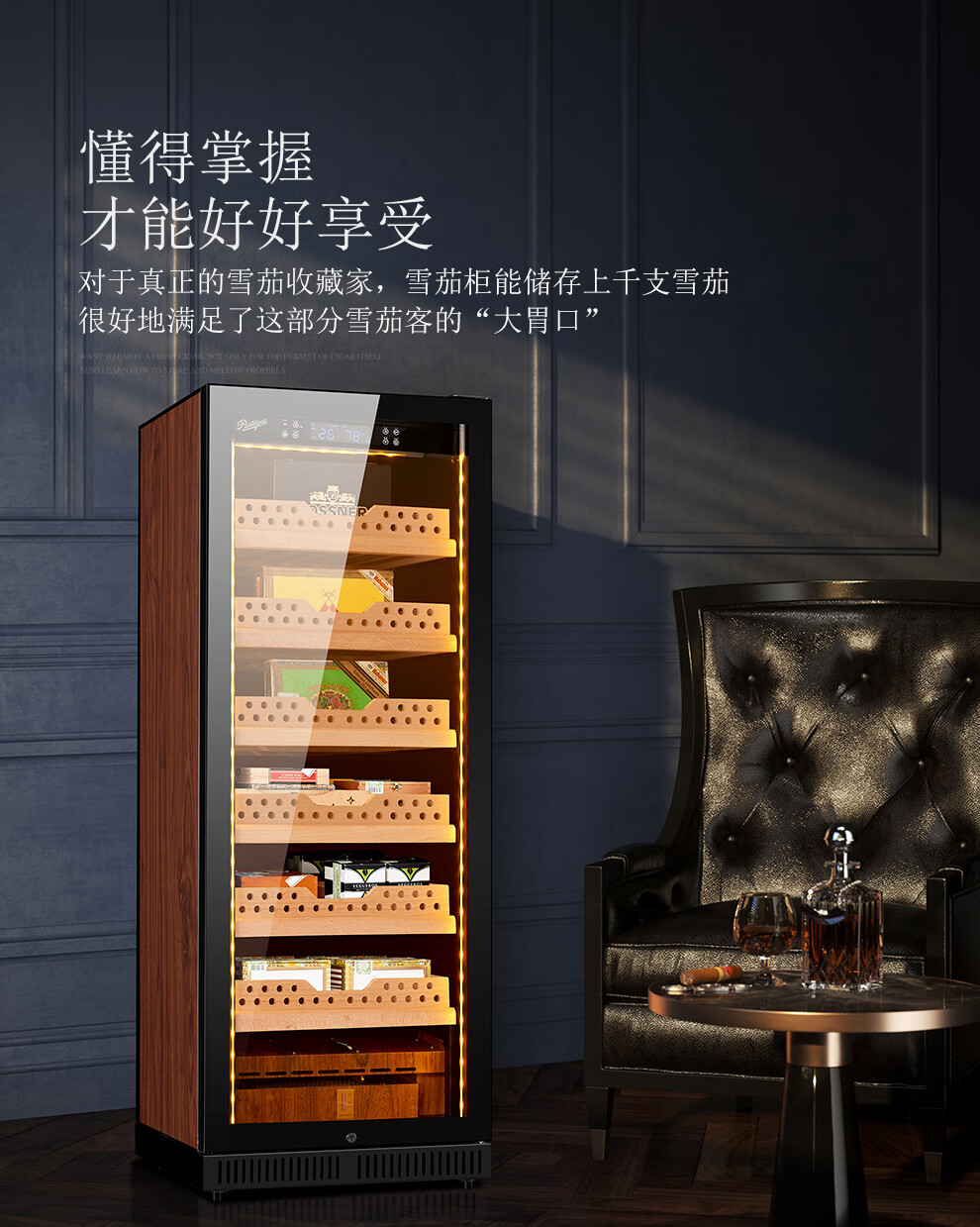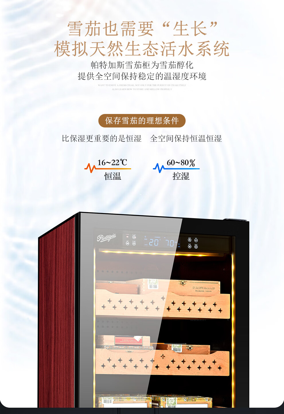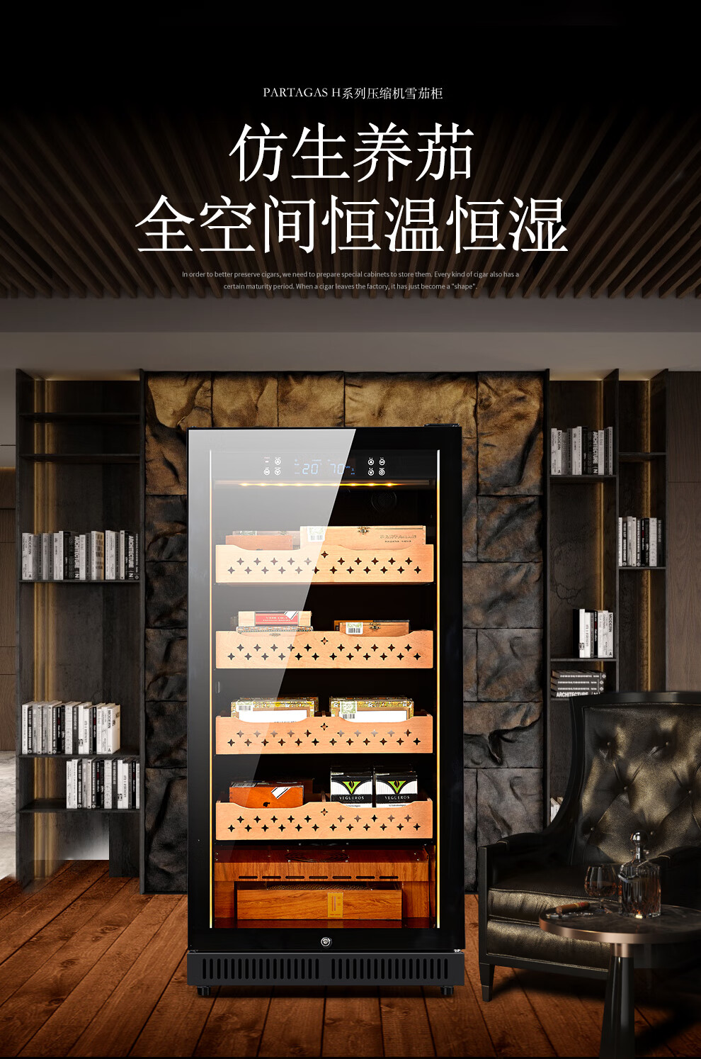 Partagas cigar cabinet humidifier compressor cigar humidifier refrigerator constant temperature and humidity precise temperature and humidity control cedar wood shelf 860MM high/red wood grain/cedar wood tray 135L