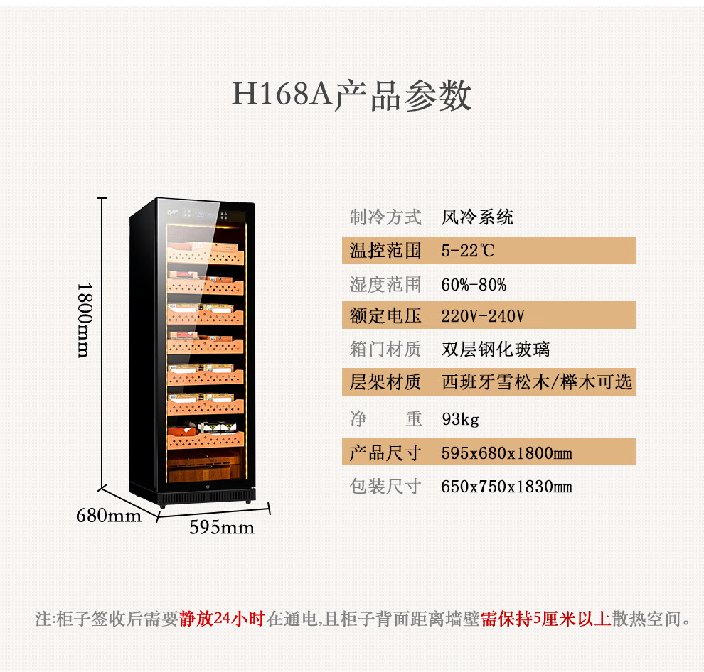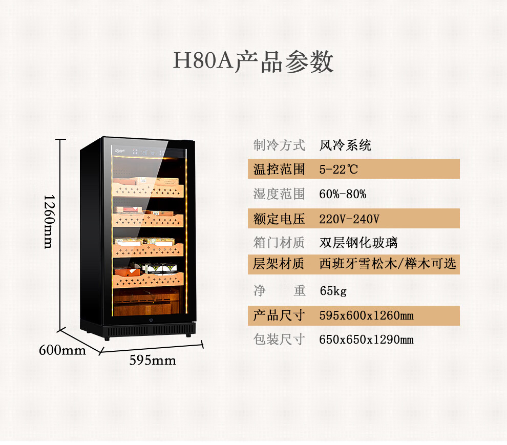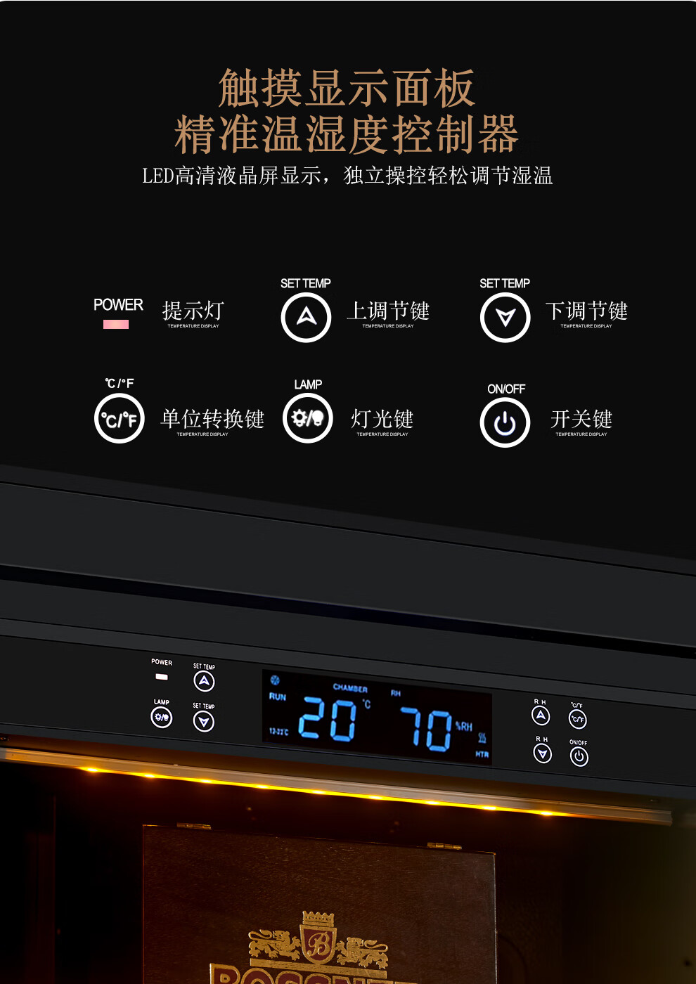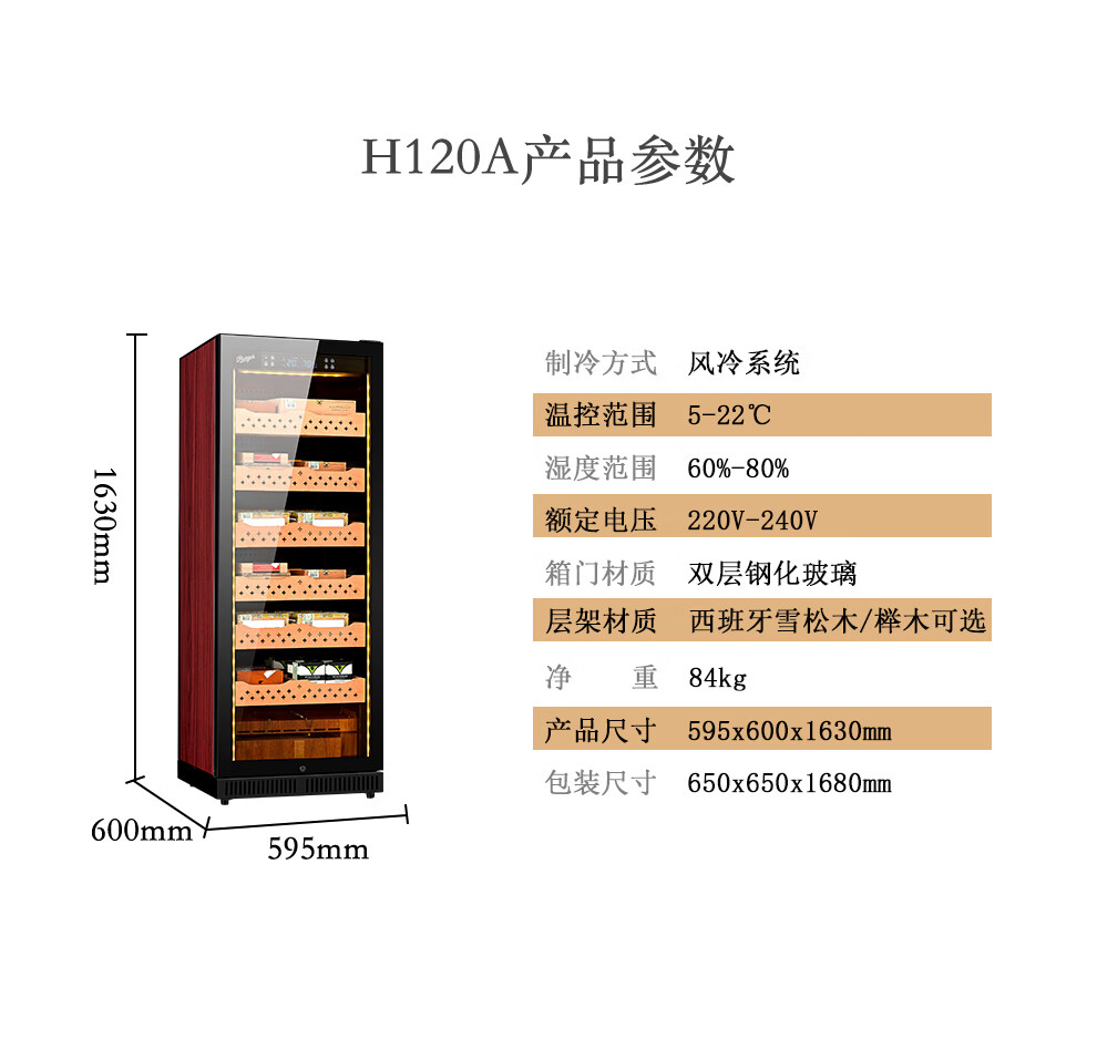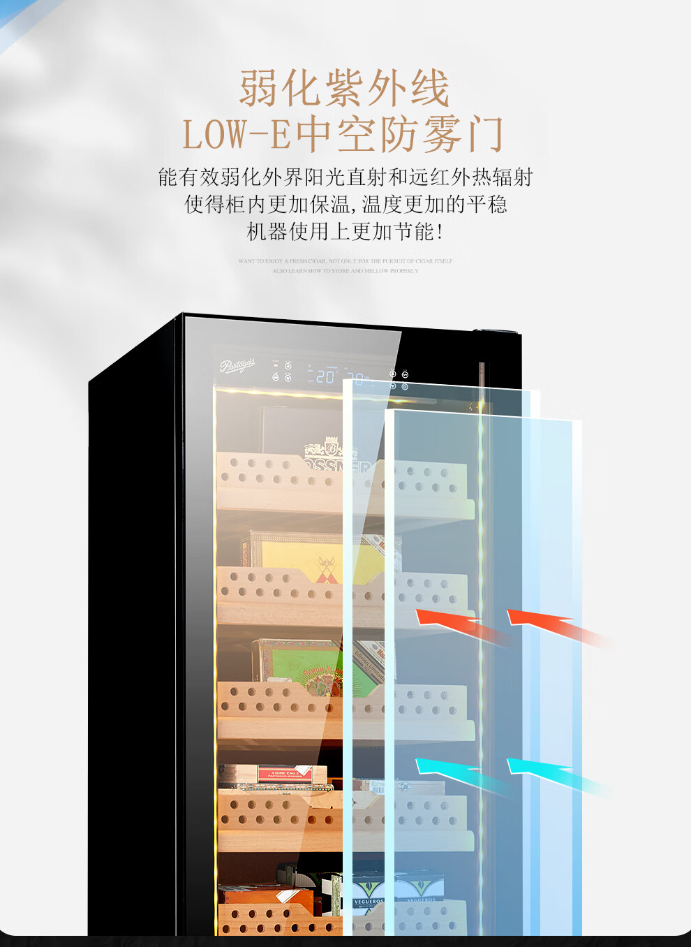 Partagas cigar cabinet humidifier compressor cigar humidifier refrigerator constant temperature and humidity precise temperature and humidity control cedar wood shelf 860MM high/red wood grain/cedar wood tray 135L