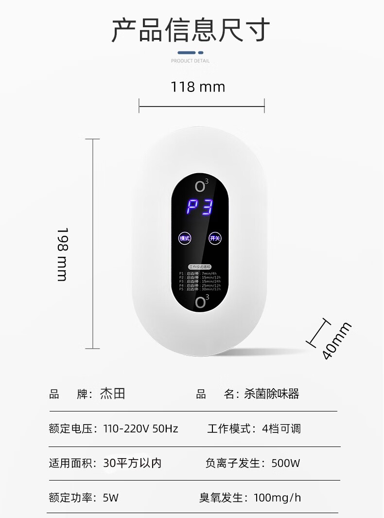 Jietian Air Disinfector Ozone Machine Household Small Generator Sterilization and Formaldehyde Removal Bathroom Toilet Pet Deodorizer White - Ozone + Negative Ion Function