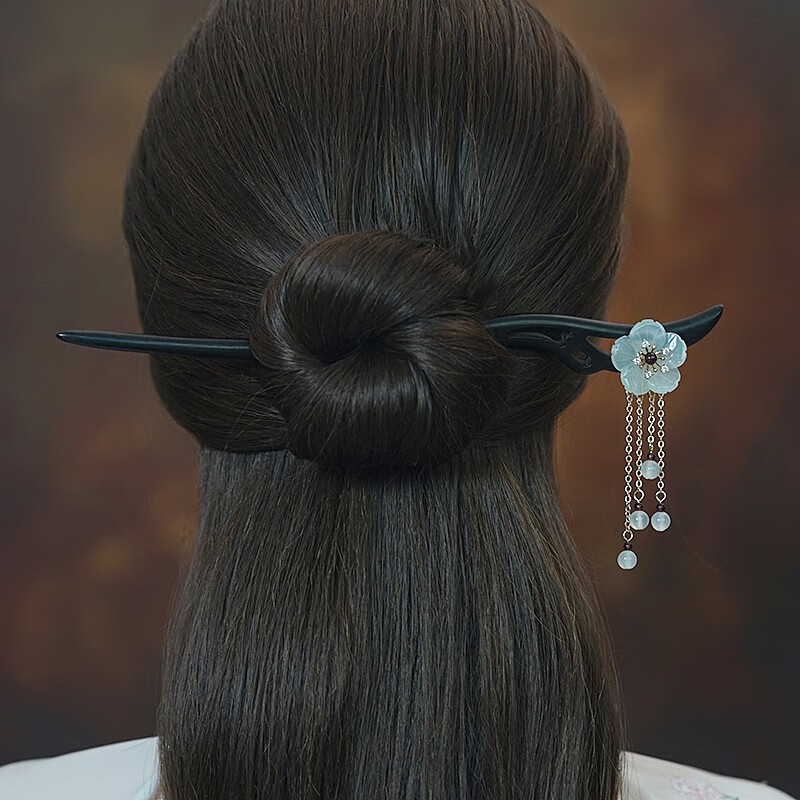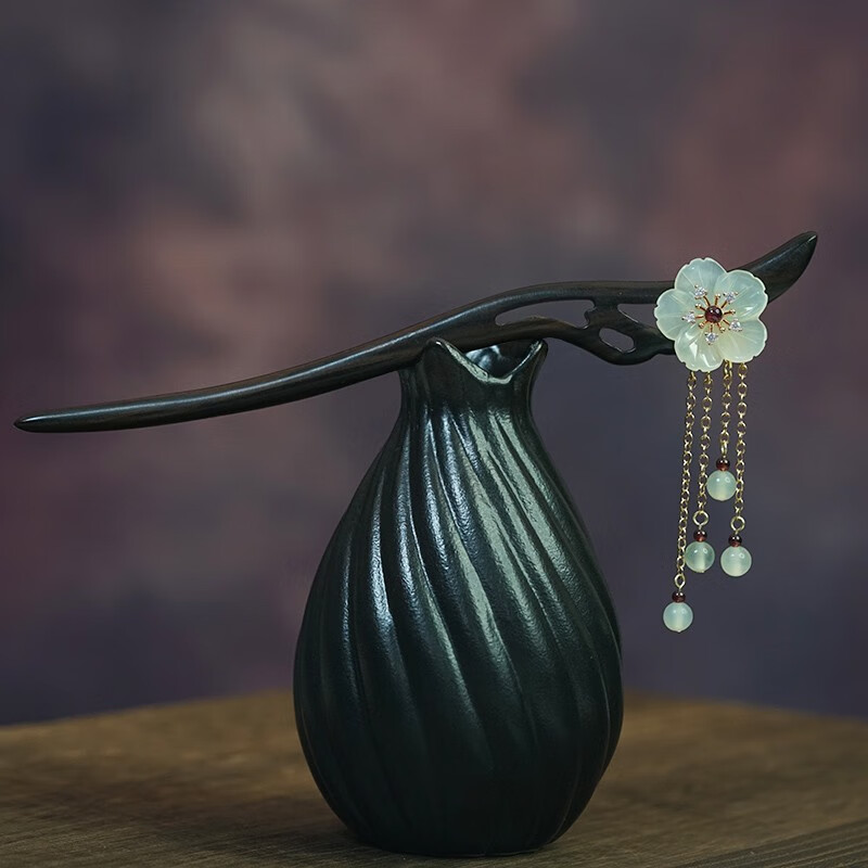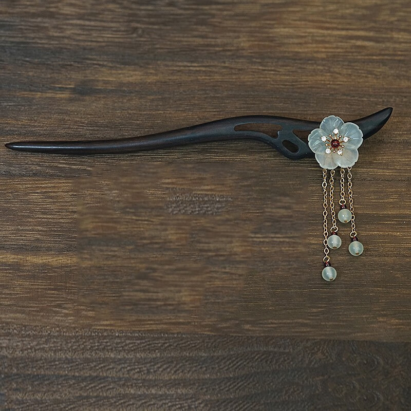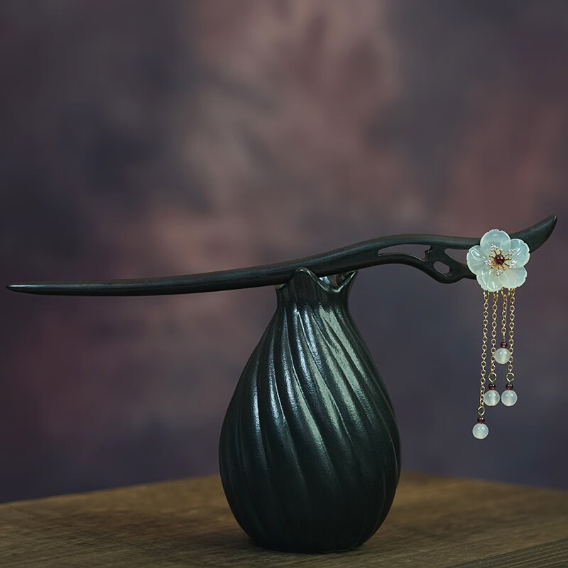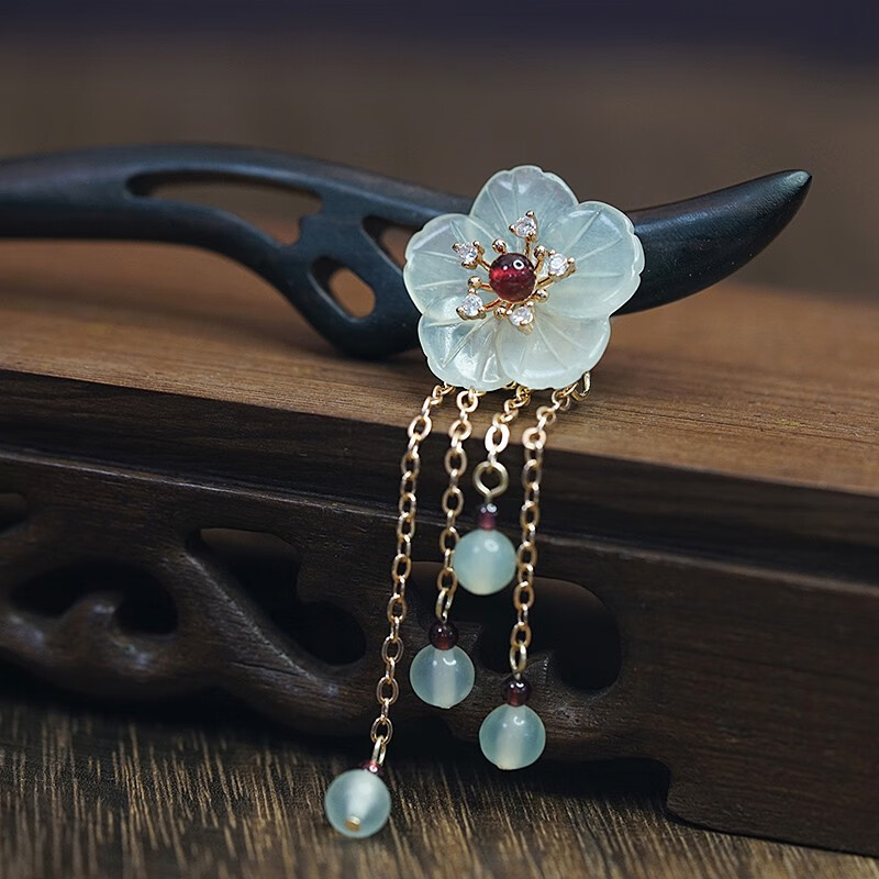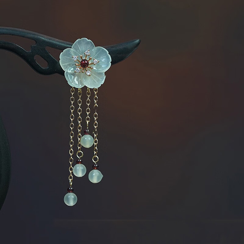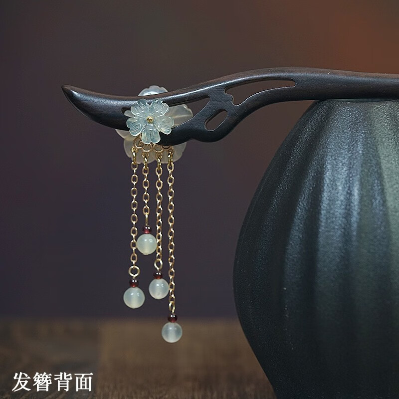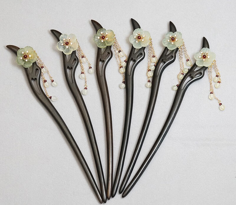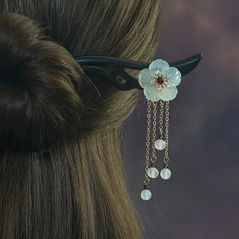 Kamalun (KAMALUN) 2025 new hairpin for women, ancient style Xiu jade hairpin black sandalwood hairpin hairpin tassel Hanfu headdress Valentine's Day gift Xiuyu five-petal flower 18 cm + gift box