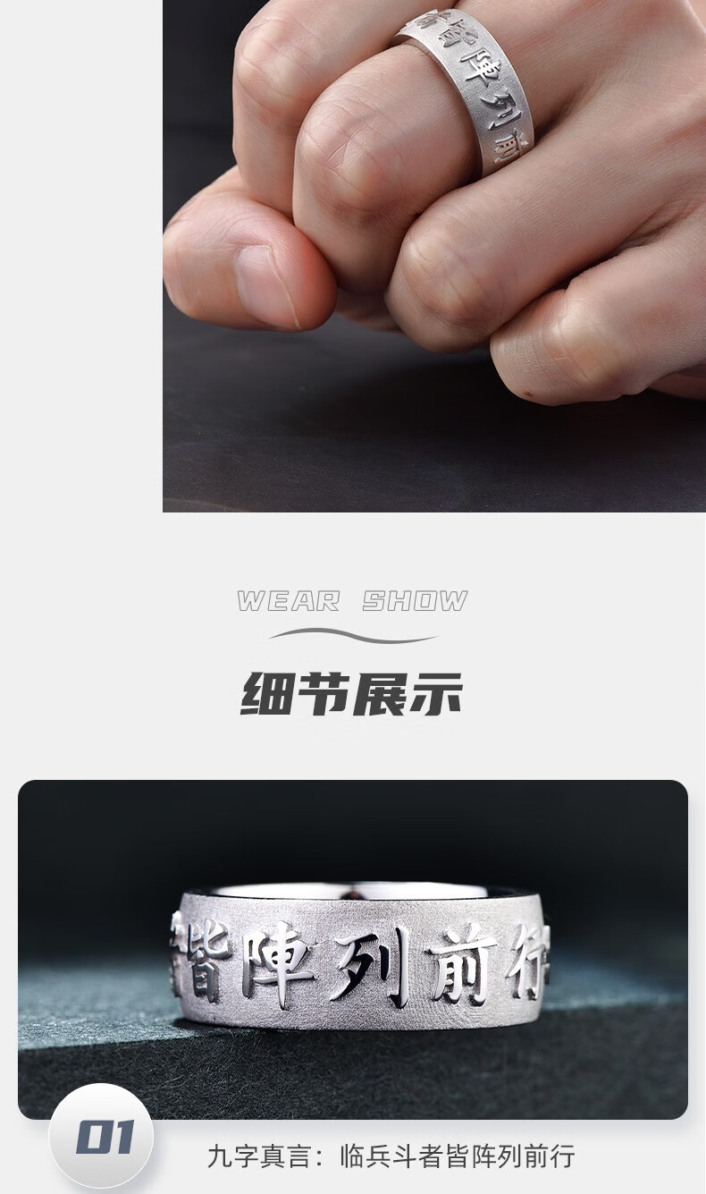 GsunG platinum ring men's PT950 nine-character mantra ring, atmospheric platinum ring, men's wide-faced personalized finger ring, custom-made gold special shot, single shot is invalid and will not be shipped.